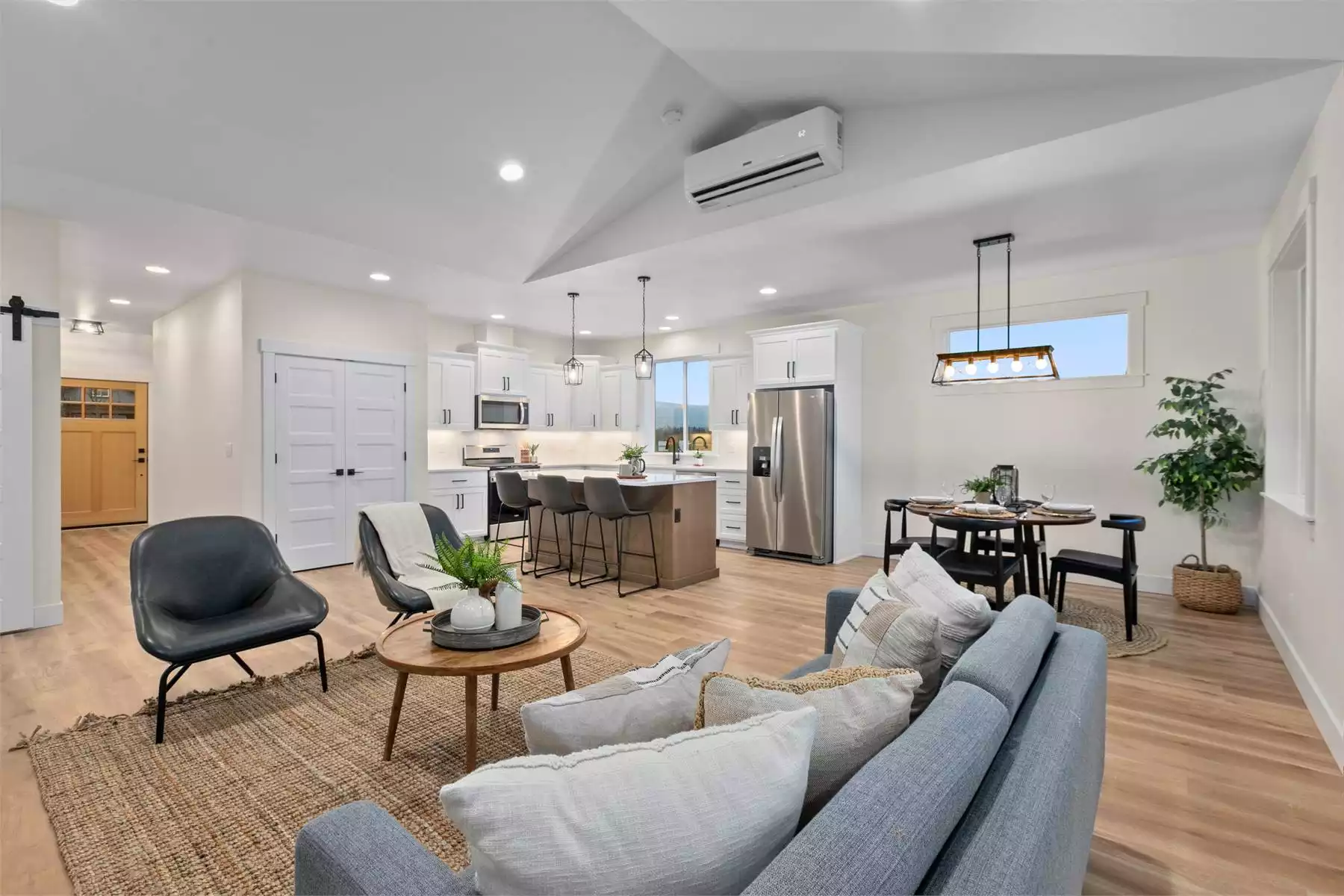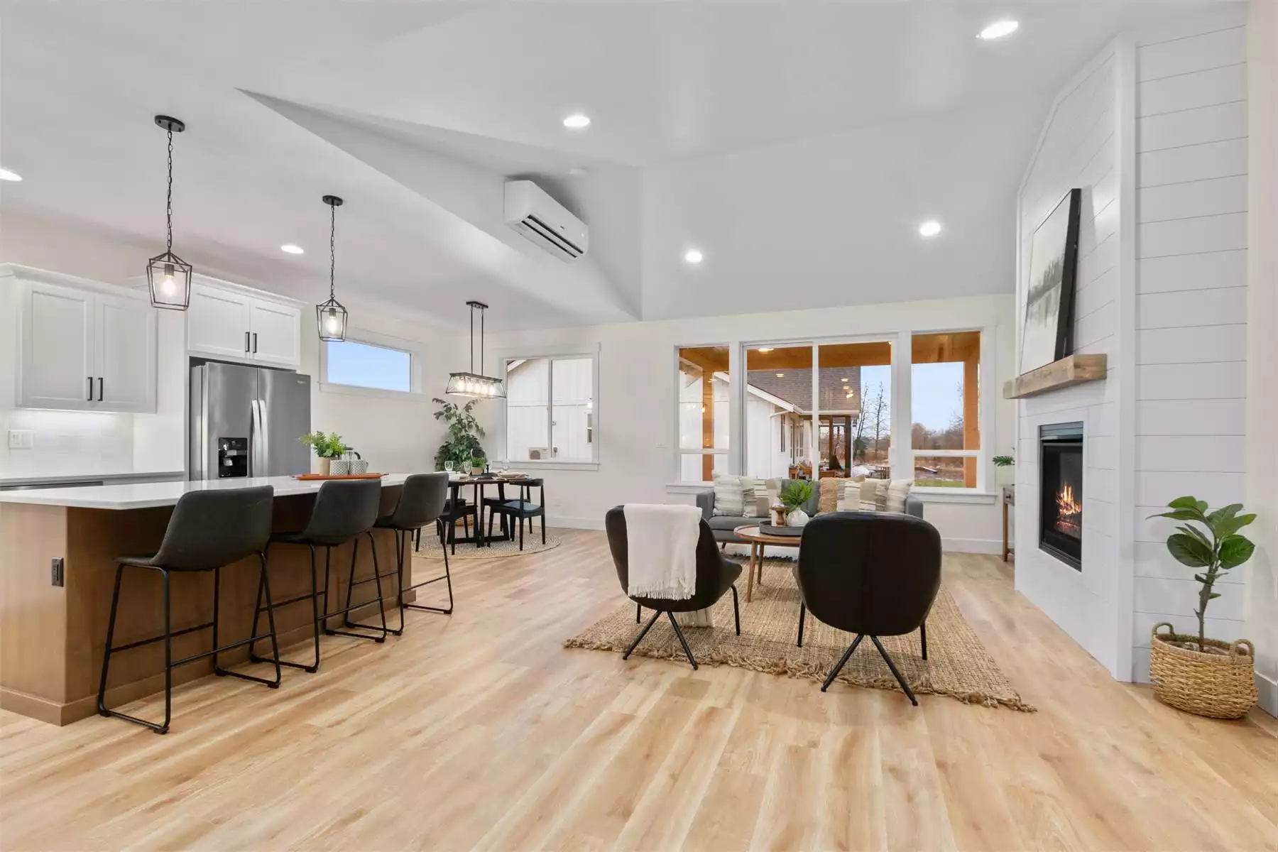 If you're looking for an affordable cottage that will fit into a neighborhood with ease, check out House Plan 8014! This one-story home features 1,497 square feet packaged into a neat, nearly perfectly rectangular footprint that simplifies construction. Gables and a dormer centered over the front entry add plenty of dimension to the facade. Inside, you'll find two bedrooms and a hall bath right off the foyer. The open-concept areas spread out further inside, with a spacious island kitchen, informal dining, and vaulted living space all visually connected. Patio doors open to the covered patio in back. The master suite is privately tucked away in a hall behind the great room's fireplace, and it boasts a vaulted bedroom ceiling and a four-piece bath. Finally, the laundry room bridges the gap between the interior and the two-car garage. House Plan 8014 is great for first-time owners as well as downsizers with this thoughtful, modest design!