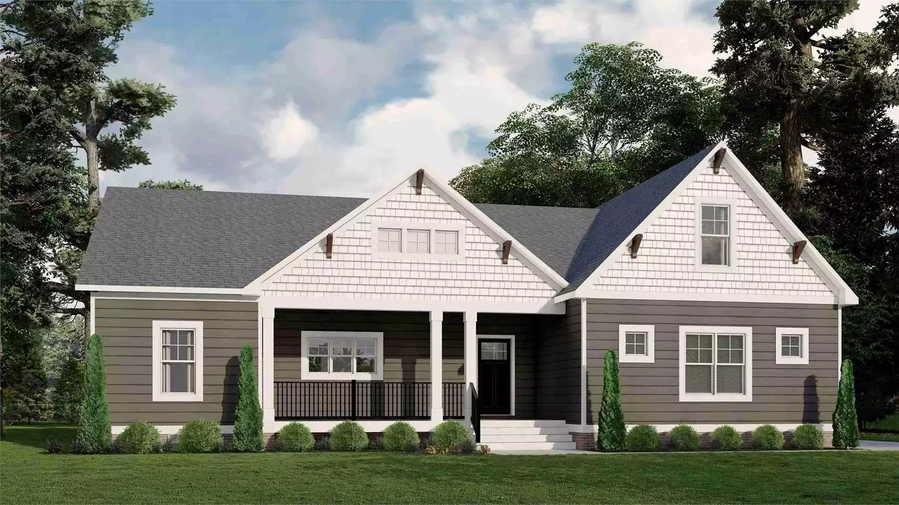 Take a look at House Plan 10201 if you're looking for a modestly sized country ranch with impact! Behind that gabled exterior, you'll find 1,664 square feet with three bedrooms, two bathrooms, and open-concept living. The layout includes an entry hallway that leads into the great room, with a vaulted ceiling spanning the whole dining and living area. The U-shaped island kitchen overlooks these spaces from against the front wall. The primary suite is placed behind the garage and has a tray ceiling in the bedroom and a five-piece bath with a walk-in closet. Across the house, the secondary bedrooms share a hall bath. If you need more than this, you can finish the bonus room over the garage.