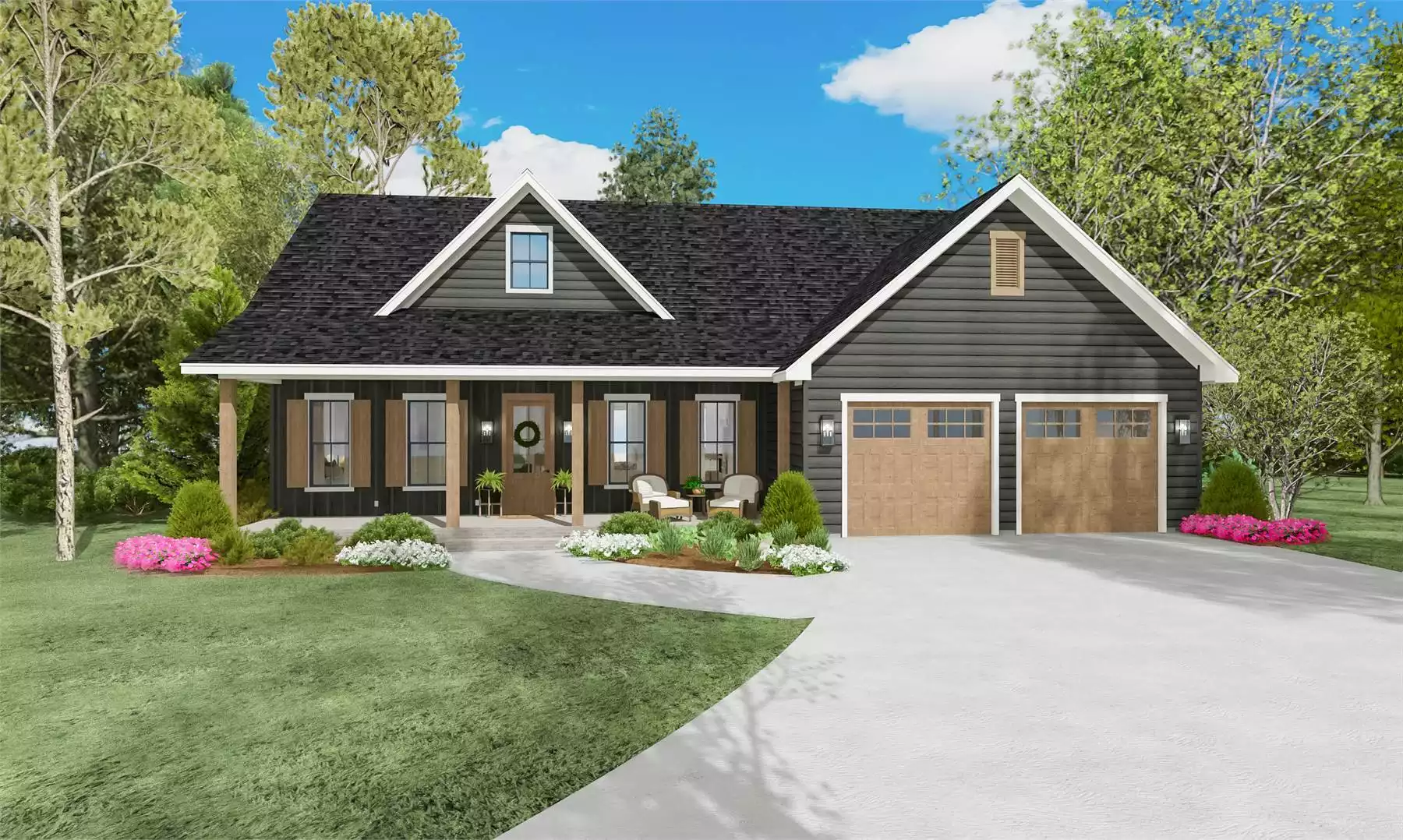 Explore the allure of Longcreek, an enchanting one-story, 1,834 square foot country home that beckons you with its picturesque front-covered porch. Upon entering, the space unfolds into a harmonious open floor plan, seamlessly integrating the living and dining areas, creating a roomy and light-filled atmosphere. The well-appointed L-shaped kitchen showcases modern appliances and generous counter space, effortlessly balancing functionality and style. The master suite serves as a secluded retreat with its ensuite bath and expansive walk-in closet, strategically separated from the two additional bedrooms, offering both flexibility and privacy for guests or a growing family. Step onto the covered back porch, a charming spot for outdoor gatherings. The two-car garage is intelligently designed, providing convenient access to a mudroom and pantry area, facilitating easy unloading of groceries, and ensuring a thoughtful flow throughout the home.