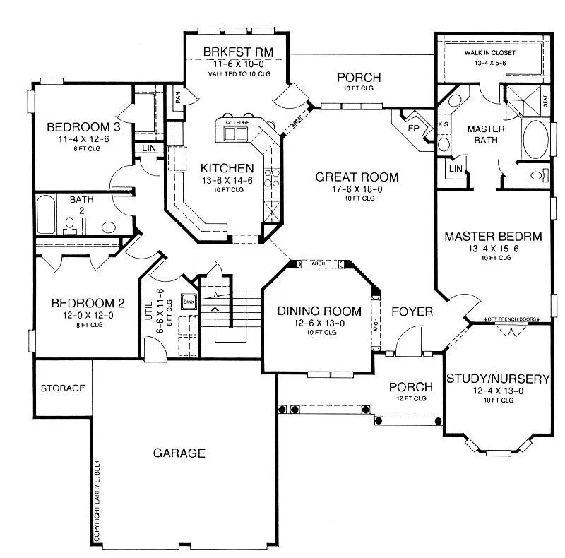 This 2,350 square foot home offers 4 bedrooms and 2 bathrooms in a comfortable single story layout designed for everyday living. A welcoming foyer opens into a spacious great room where a fireplace creates a warm focal point for family gatherings. The open floor plan connects the great room with the dining room and kitchen, creating a natural flow throughout the main living areas. The kitchen features a peninsula eating bar and a cozy breakfast nook that provides a relaxed space for casual meals. The main floor primary suite offers privacy and comfort with a walk-in closet and a well-appointed bathroom featuring double vanity sinks and a separate tub and shower. A nearby nursery room provides convenient space for a young family or can easily serve as a flexible bonus room. Additional bedrooms are thoughtfully arranged with a split layout for added privacy. Covered front and rear porches along with a rear deck extend the living space outdoors and create inviting places to relax.