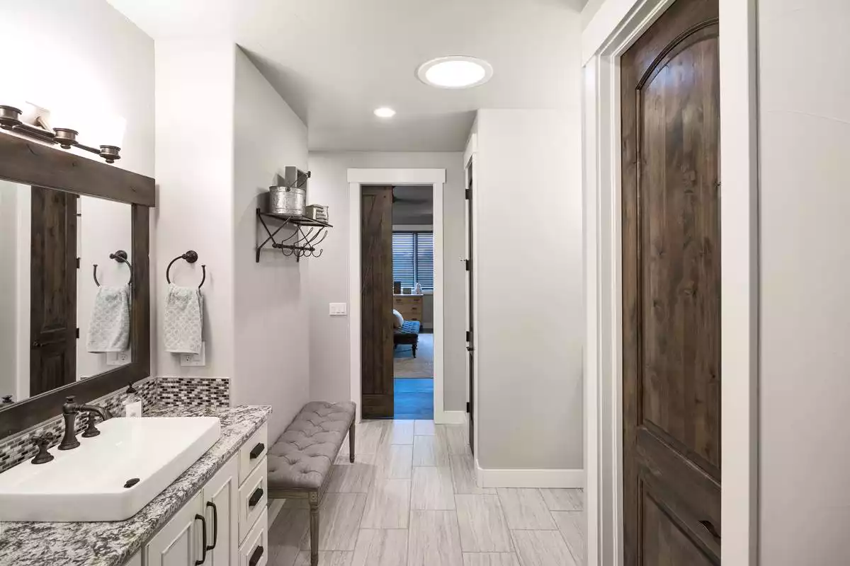 This inviting home offers 2,422 square feet of heated living space with two comfortable bedrooms arranged in a thoughtful split-bedroom layout. The open floor plan blends the kitchen, great room, dining area, and family room into an easy-flowing space ideal for daily living and casual entertaining. A spacious kitchen island, L-shaped layout, and walk-in pantry provide plenty of room for cooking and organization. The primary suite sits on the main floor and includes a walk-in closet, double vanity, and a separate tub and shower for added comfort. Flexible rooms such as the home office, exercise room, and mud room offer practical convenience for busy households. Outdoor living is enhanced by a covered front porch, covered rear porch, and a deck that bring fresh air into everyday routines. With warm gathering areas and private retreats throughout, this home is designed to support comfortable living in every season.
