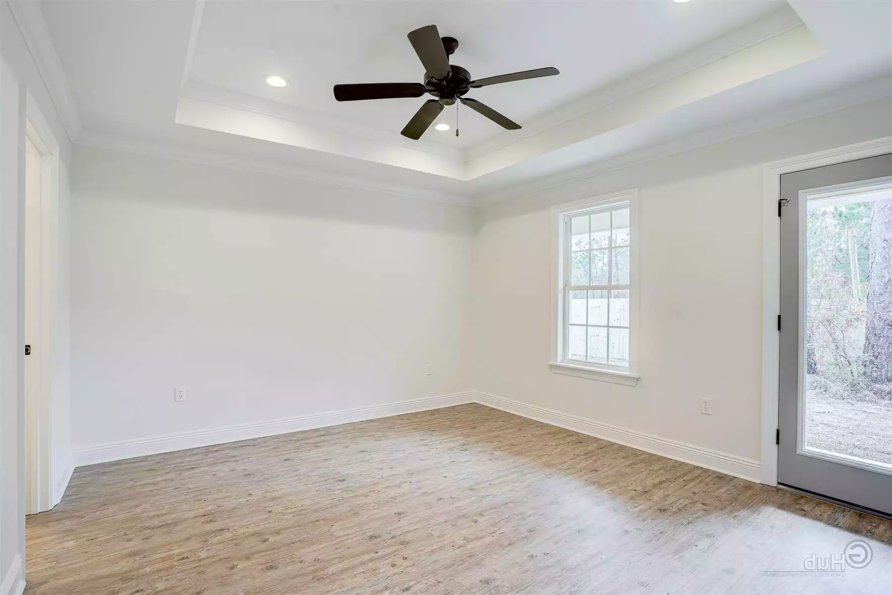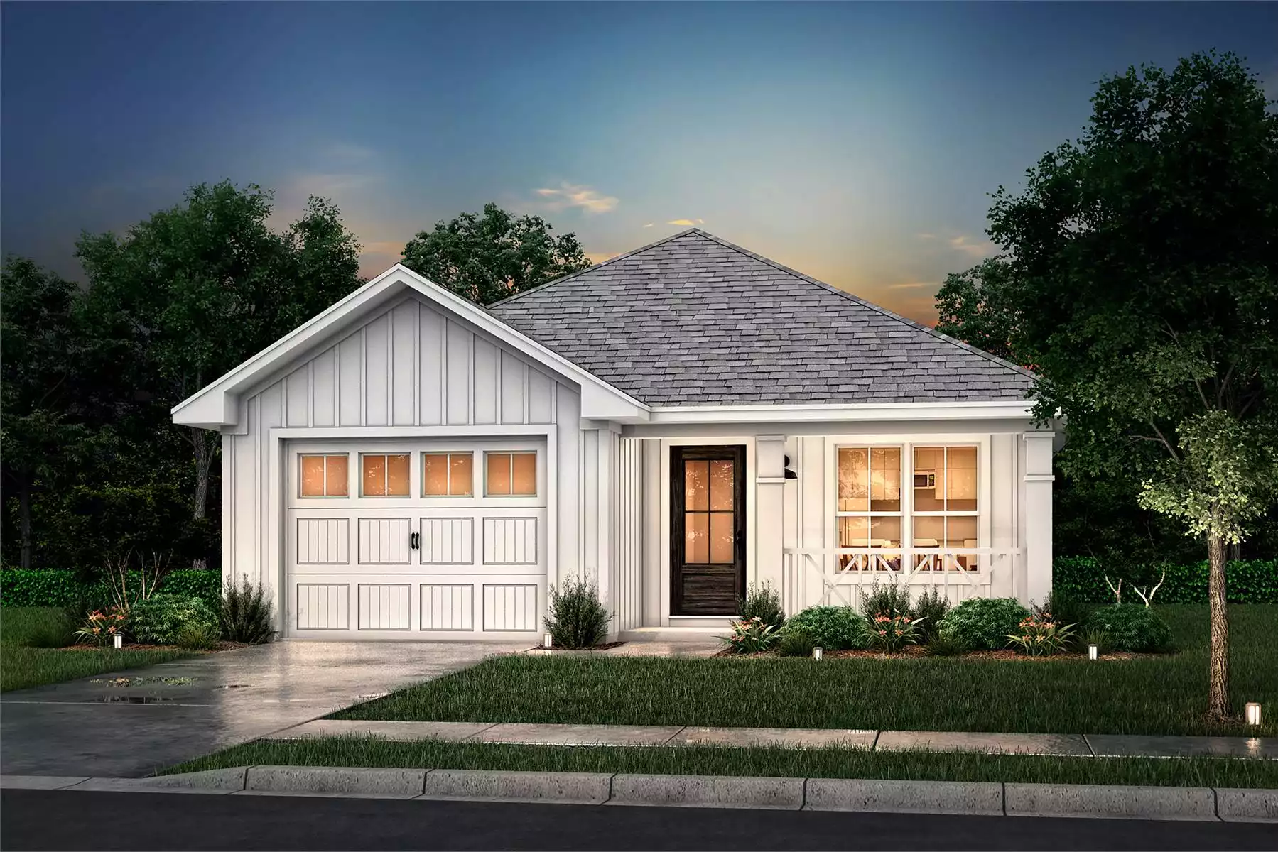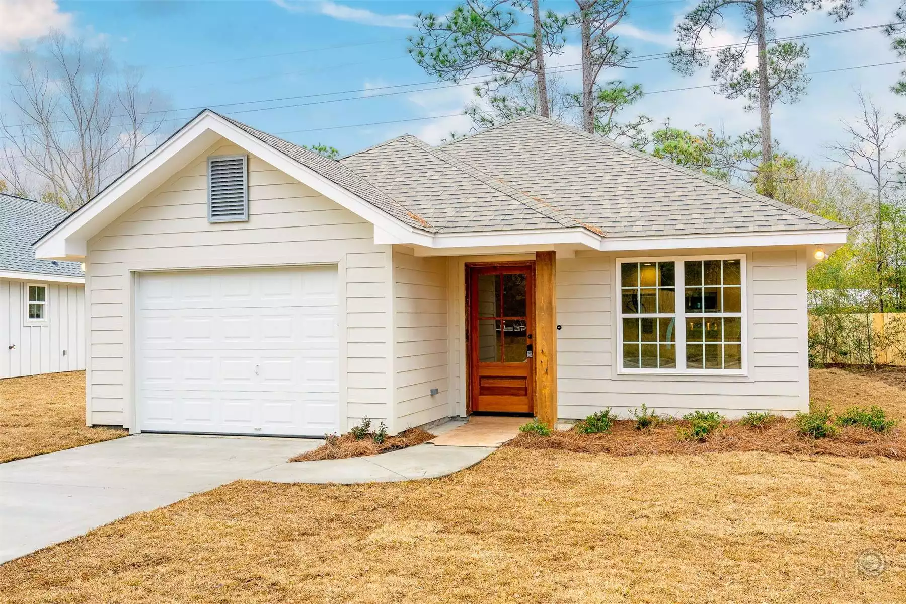 Welcome to Tamarak Springs, a beautifully designed 1,250-square-foot cottage perfect for narrow lots. This cozy yet functional home features three bedrooms and two full bathrooms, offering just the right amount of space for a small family or downsizers. The open-concept living area seamlessly blends the kitchen, dining, and living spaces, making it great for entertaining. A spacious kitchen island and walk-in pantry add convenience and storage, while the private primary suite boasts a generous walk-in closet and dual vanities. Thoughtful details like ample storage throughout and a single-car garage maximize efficiency without sacrificing comfort. Whether you’re looking for a peaceful retreat or a stylish starter home, Tamarak Springs delivers modern amenities with timeless charm.