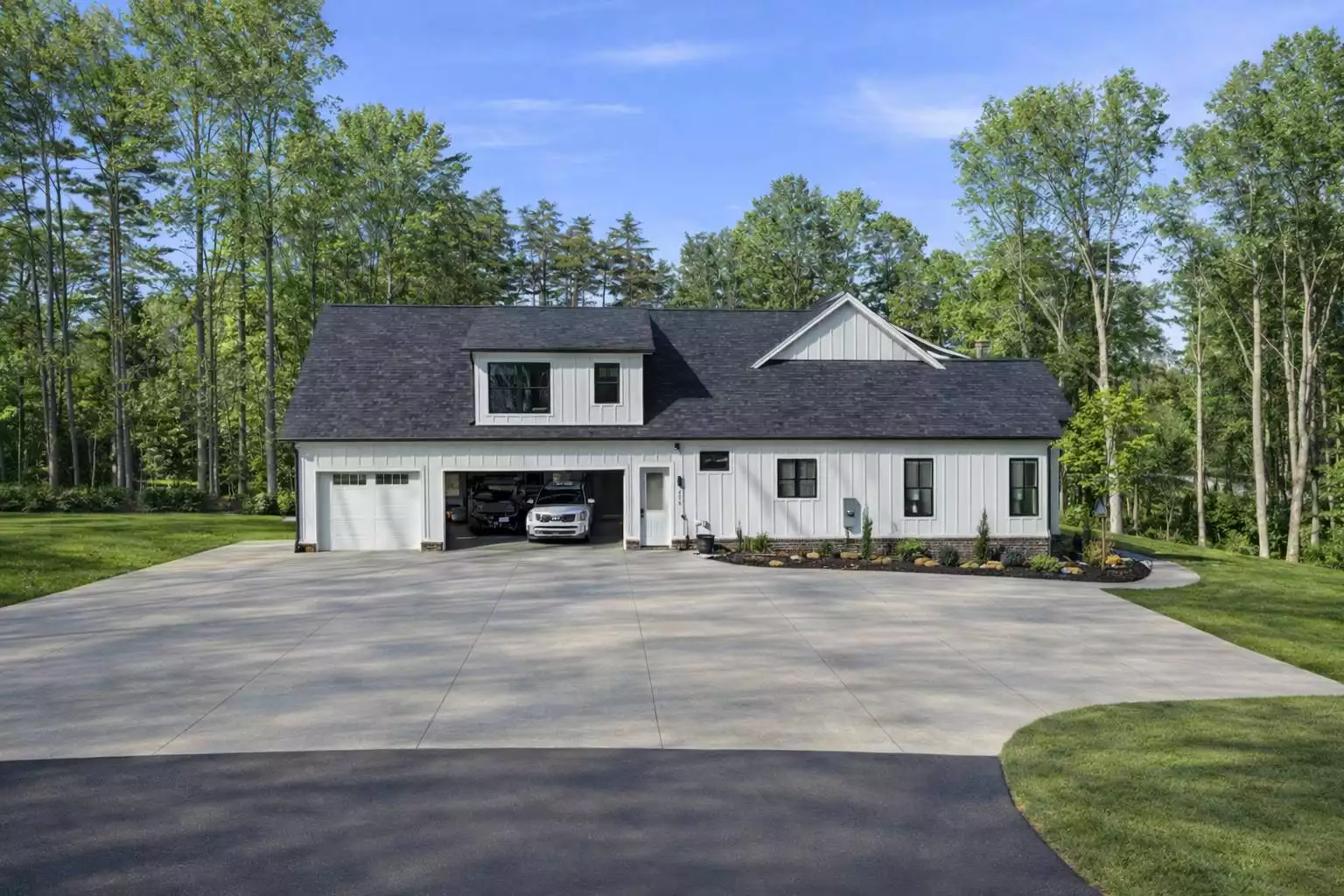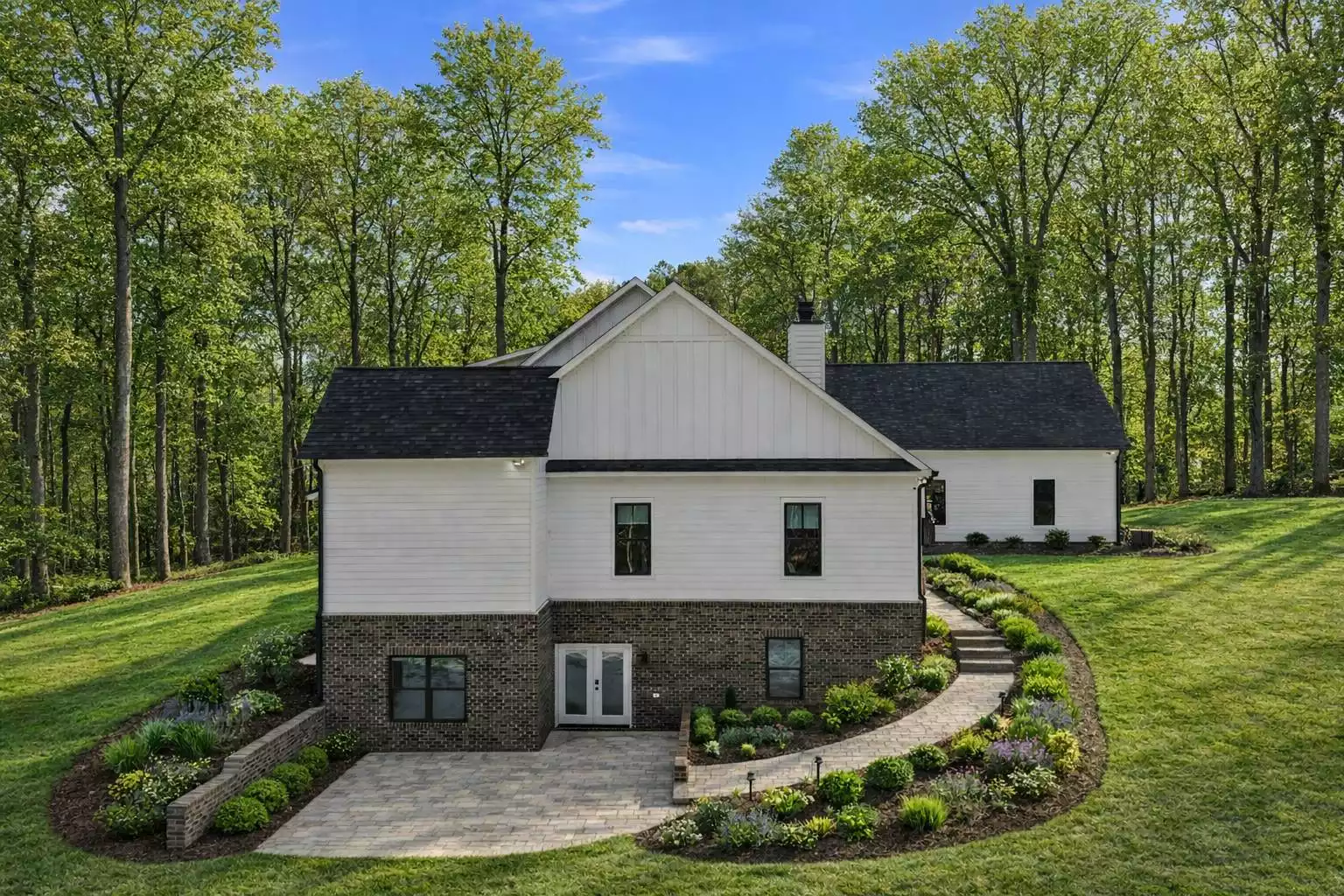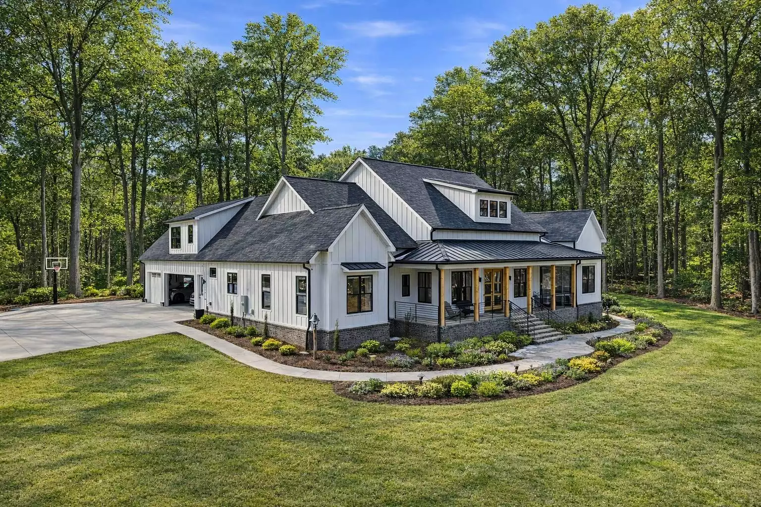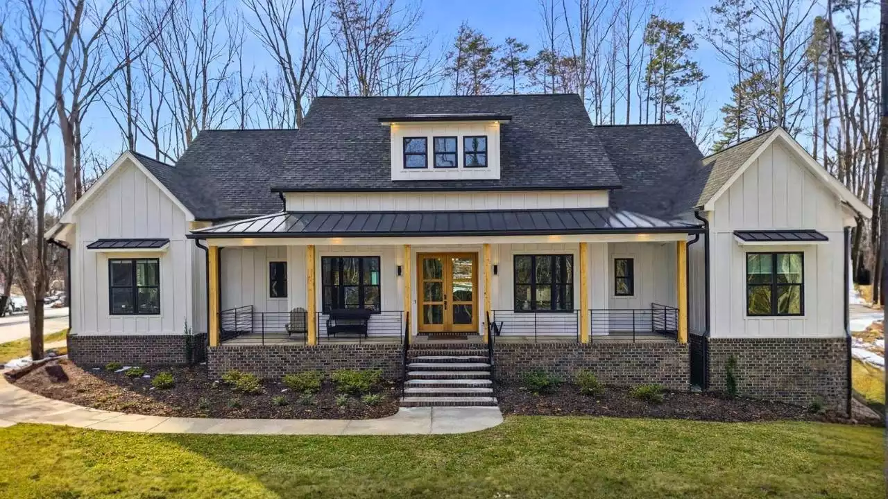 Stunning Southern Farmhouse with Covered Front Porch Front Side View Left View Showing Side-Entry Garage Rear View with Covered Outdoor Living Right Side View with Walkout Basement Right Side View with Walkout Basement Front View with Modified Center Dormer Kitchen Overlooking Vaulted Great Room Open-Concept Kitchen, Living, and Dining Areas Kitchen Kitchen Kitchen and Dining Area Kitchen Island and Sleek Cooktop Area Low-Profile Electric Cooktop from KitchenAid Kitchen Cabinetry and Island Kitchen Space with Sink, Dishwasher, and Ovens Kitchen Sink with Back Porch Views Combination Wall Oven from KitchenAid Kitchen Dining Room Dining Room Great Room Foyer Vaulted Great Room Cozy Dimplex Fireplace in the Great Room Great Room with Cathedral Ceiling Great Room Hall Between Kitchen, Garage, and Primary Suite Walk-in Pantry Primary Bedroom with Vaulted Ceiling Primary Bedroom Primary Bedroom Luxe Five-Piece Primary Bath Double Vanity in Primary Bathroom Garden Tub and Stall Shower in Primary Bathroom Garden Tub and Private Toilet Closet Garden Tub and Stall Shower Custom Tile Stall Shower Vanity with Delta Faucet Primary Walk-in Closet Laundry Room Mudroom Built-ins Powder Room Powder Room Office with Modified Entry (Door in Hall with Bedrooms) Office Bedroom 2 Bedroom 2 Jack-and-Jill Bath Jack-and-Jill Bath Jack-and-Jill Bath Bedroom 3 Bedroom 3 Bedroom 4 Bedroom 4 Hall Bath Hall Bath Outdoor Living Space Outdoor Living Space Outdoor Living Space Bonus Room Bonus Room Bonus Room Bonus Room Bath Bonus Room Bath Bonus Room Bath Garage Classic Board and Batten Farmhouse with Covered Porch Front View Side View Beautiful Farmhouse with Wraparound Front Porch Front View Front Side View Side View Left View Showing Side-Entry Garage Side View Right Side View with Walkout Basement Rear View with Covered Outdoor Living Designer's Front View Schematic Rendering Designer's Left Side View Schematic Rendering Designer's Rear View Schematic Rendering 1st Floor Plan Basement Foundation Bonus Plan