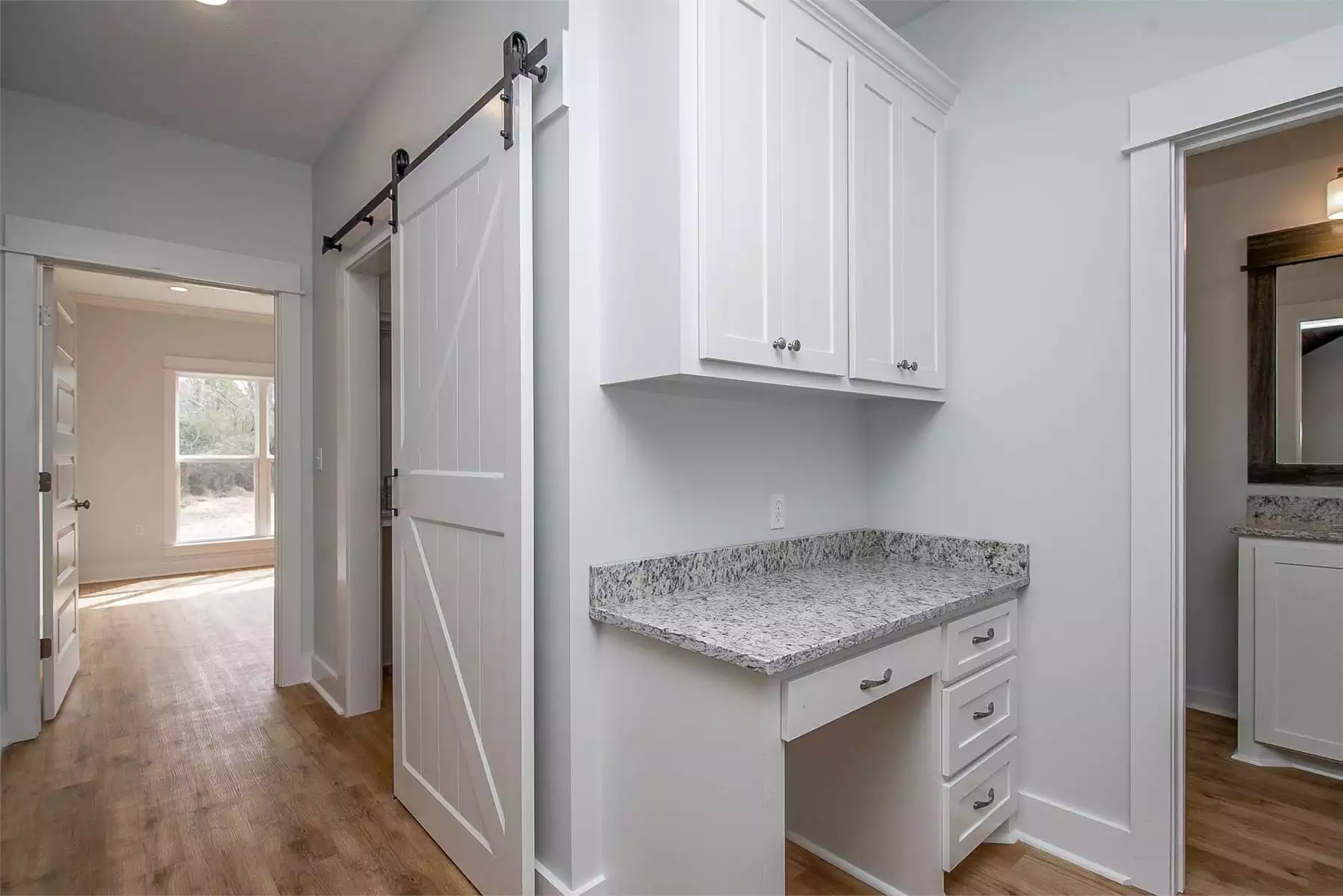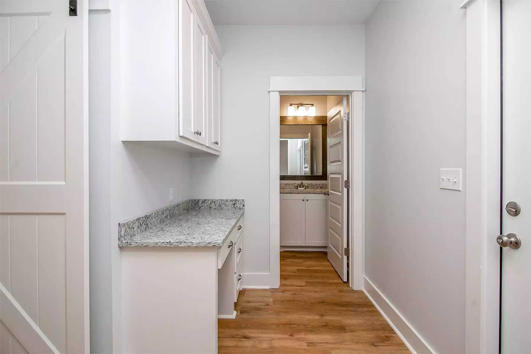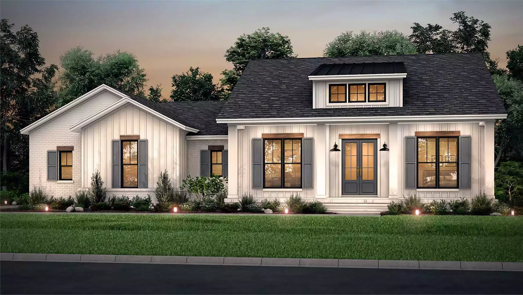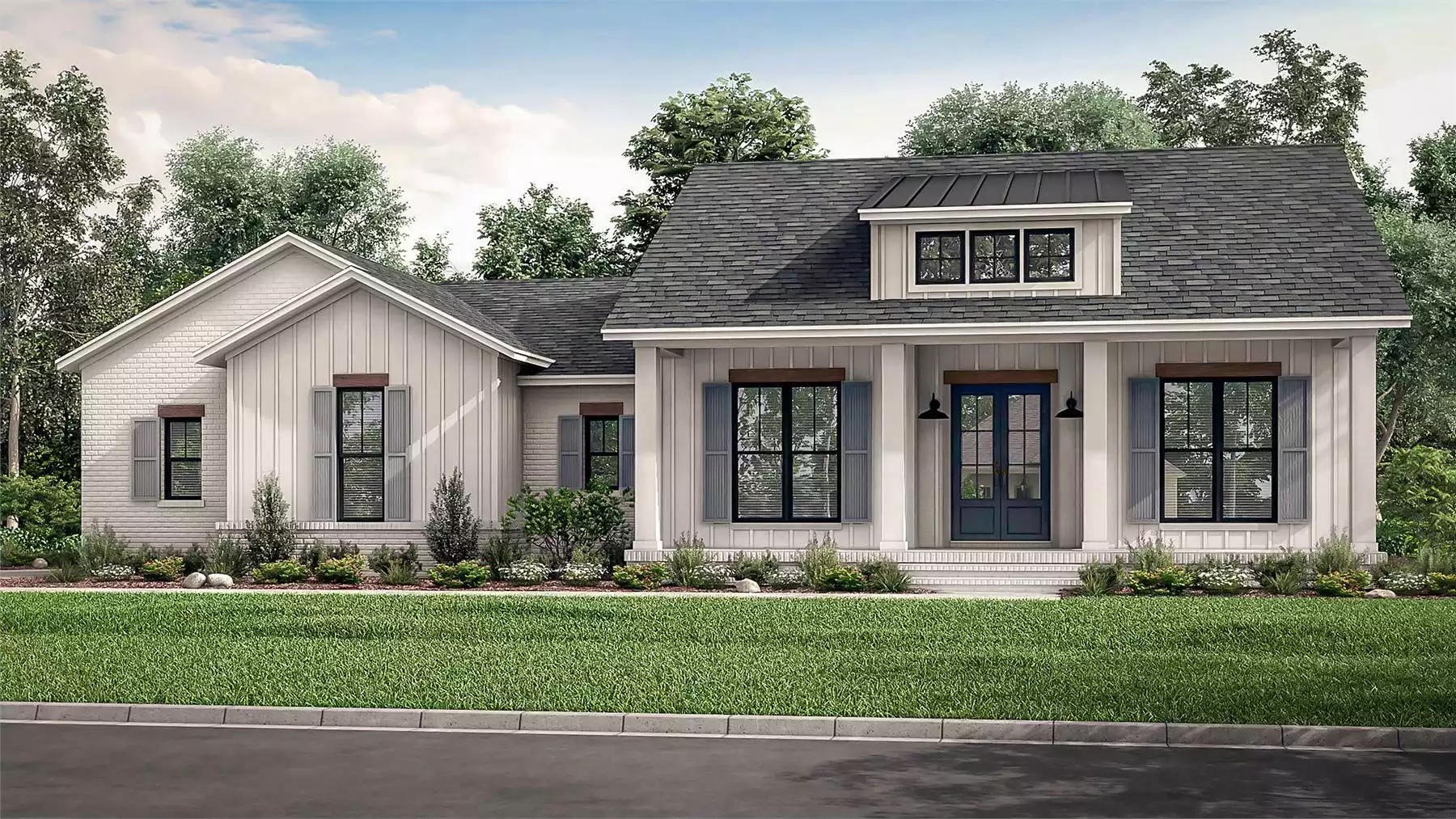 This charming 2,044 sq. ft. ranch home features 3 bedrooms, 2.5 baths, and striking curb appeal with a mix of brick and board and batten exterior finishes. The open floor plan brings the great room, dining, and kitchen together, highlighted by vaulted ceilings that create a light-filled and welcoming space. A spacious walk-in pantry makes meal prep and storage simple, while large porches offer outdoor living for entertaining or relaxing. Each bedroom includes its own walk-in closet, giving everyone private storage and convenience. The primary suite is designed for comfort with dual vanities, a custom shower, and an oversized closet that connects directly to the laundry room. Practical details blend beautifully with stylish design to create a home that works for everyday family life. With its balance of openness, storage, and comfort, this ranch home is a wonderful place to call your own.