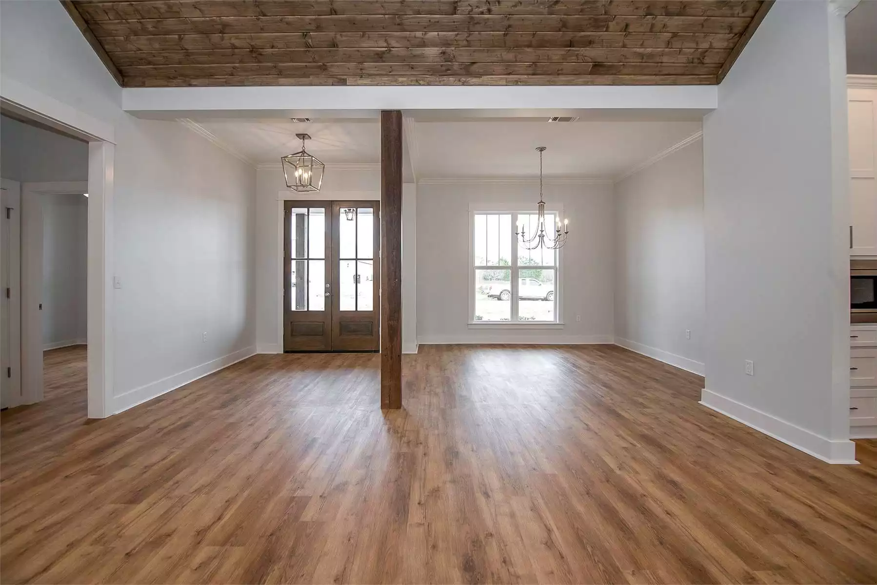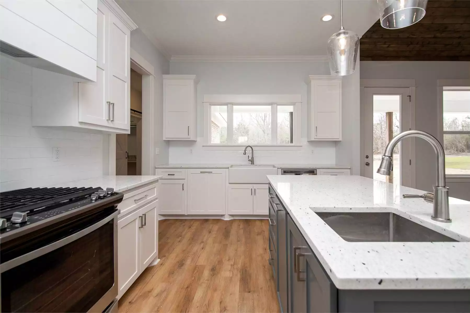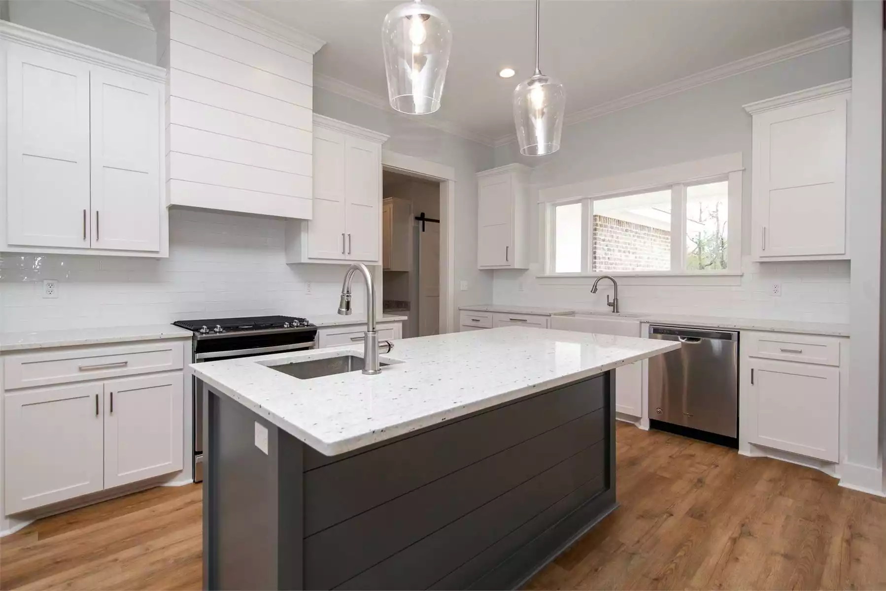 This charming 2,044 sq. ft. ranch home features 3 bedrooms, 2.5 baths, and striking curb appeal with a mix of brick and board and batten exterior finishes. The open floor plan brings the great room, dining, and kitchen together, highlighted by vaulted ceilings that create a light-filled and welcoming space. A spacious walk-in pantry makes meal prep and storage simple, while large porches offer outdoor living for entertaining or relaxing. Each bedroom includes its own walk-in closet, giving everyone private storage and convenience. The primary suite is designed for comfort with dual vanities, a custom shower, and an oversized closet that connects directly to the laundry room. Practical details blend beautifully with stylish design to create a home that works for everyday family life. With its balance of openness, storage, and comfort, this ranch home is a wonderful place to call your own.