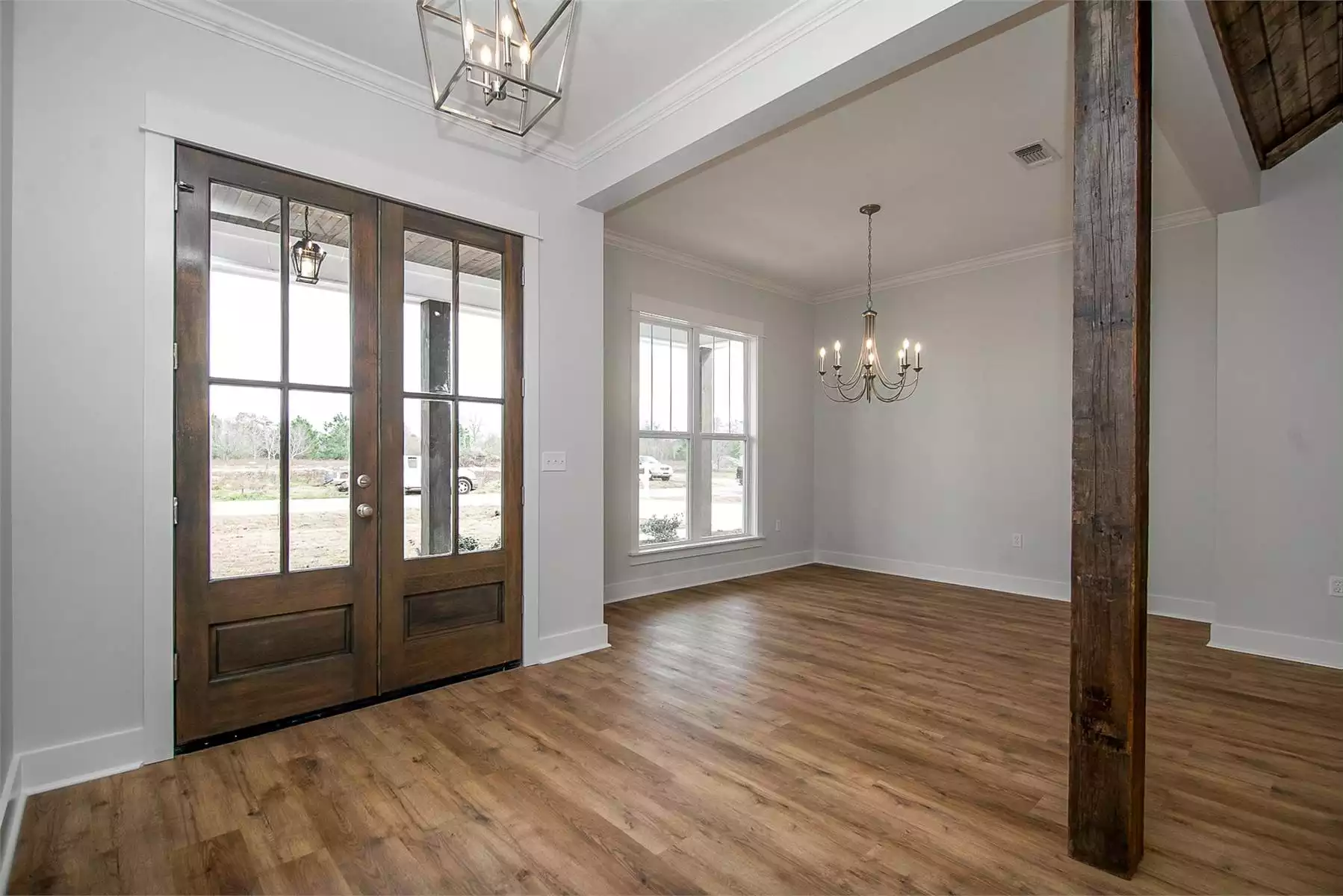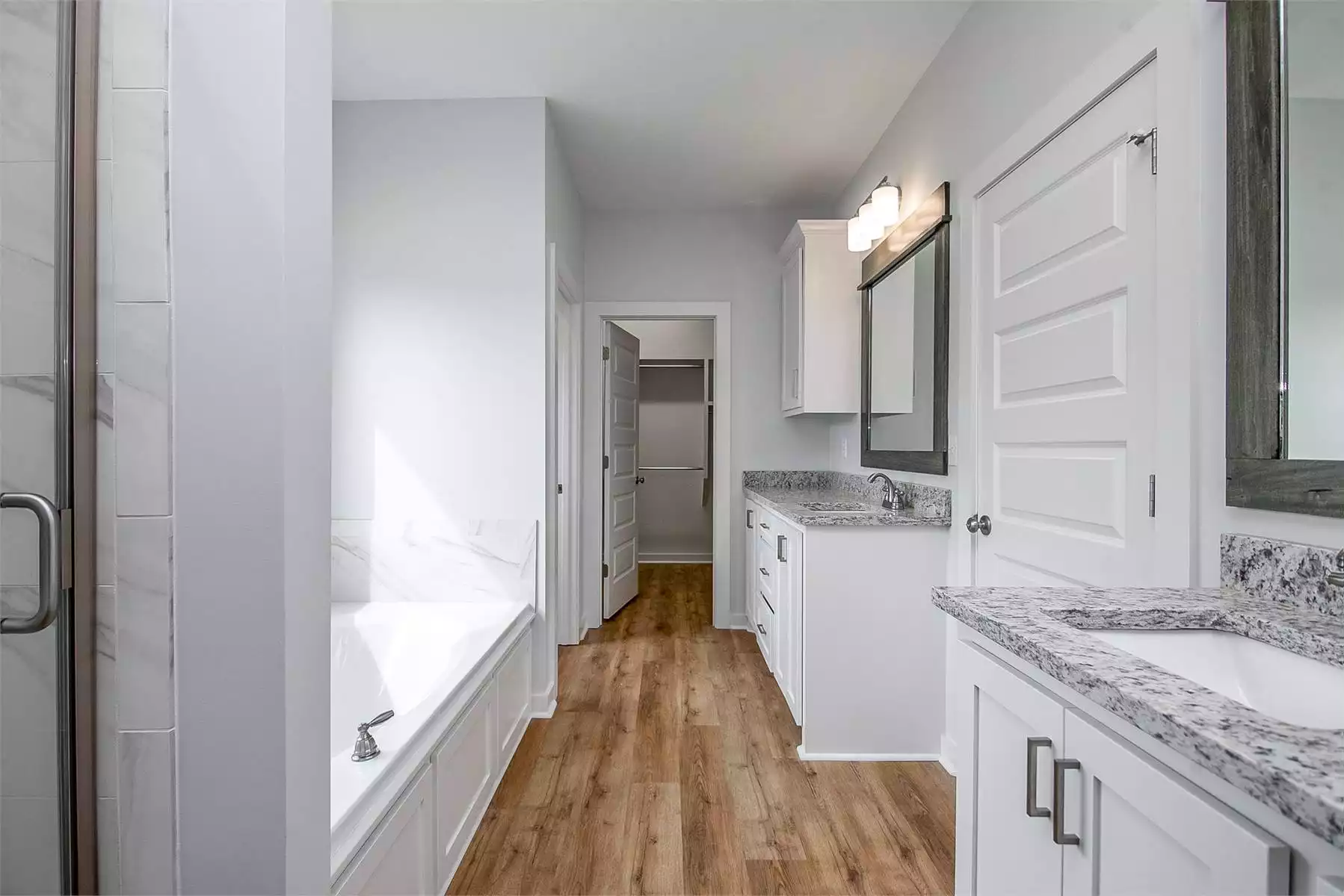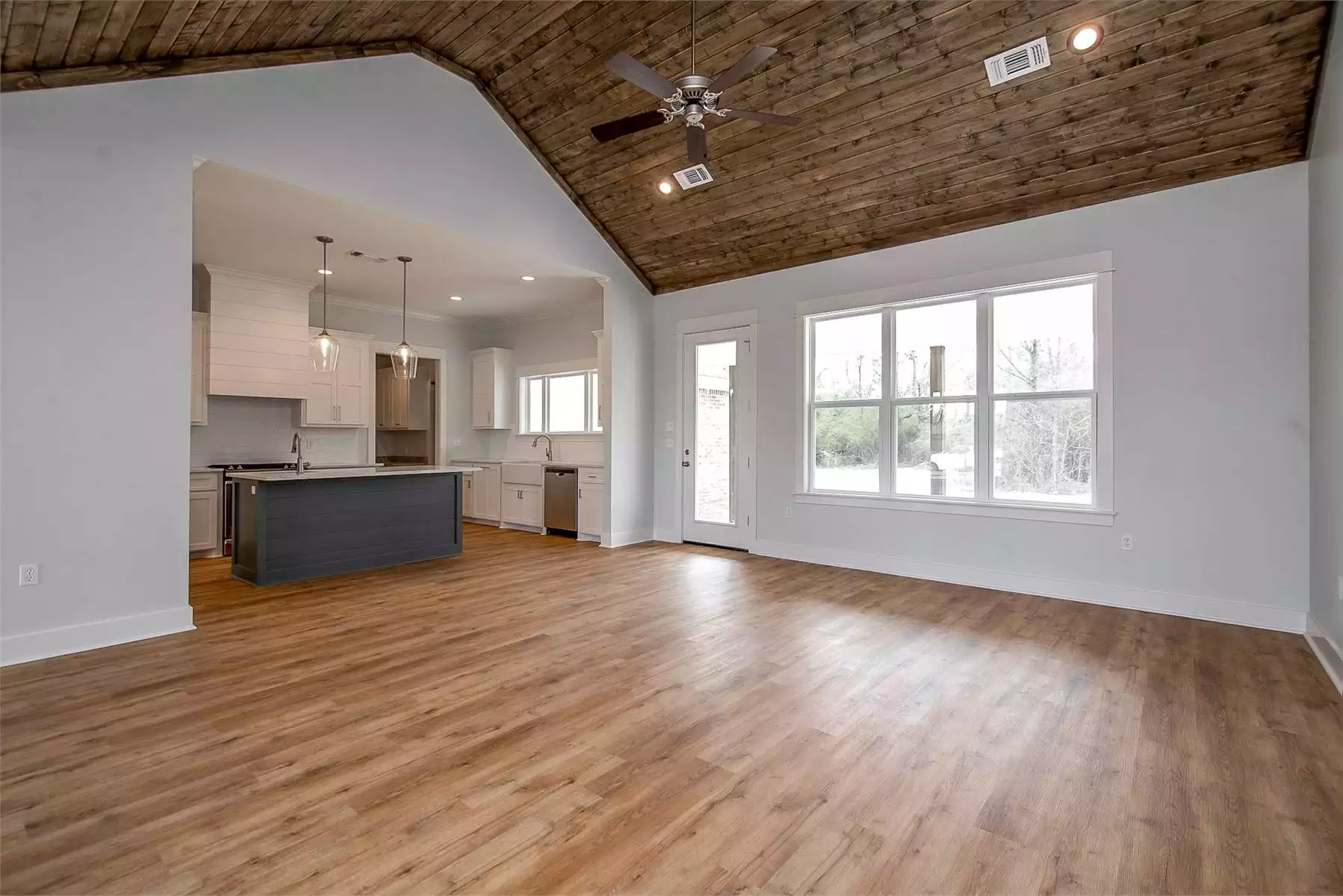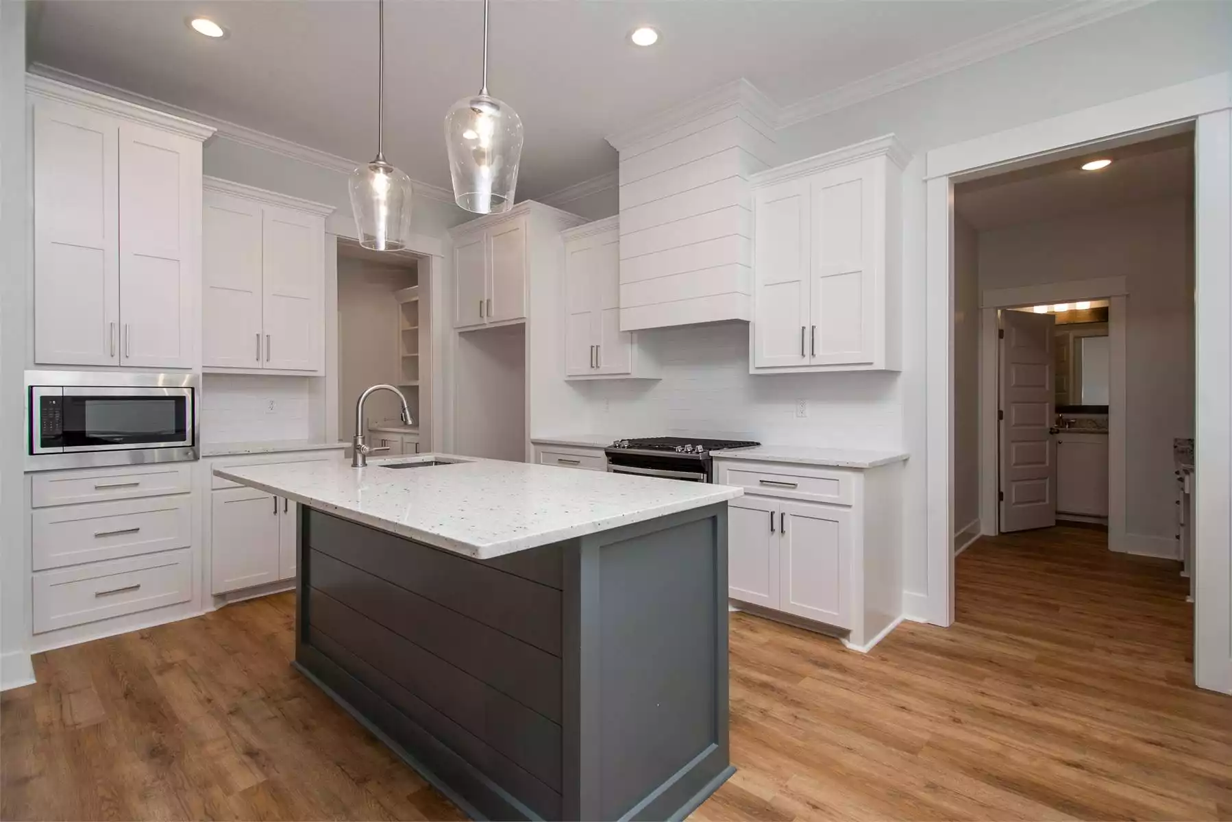 This charming 2,044 sq. ft. ranch home features 3 bedrooms, 2.5 baths, and striking curb appeal with a mix of brick and board and batten exterior finishes. The open floor plan brings the great room, dining, and kitchen together, highlighted by vaulted ceilings that create a light-filled and welcoming space. A spacious walk-in pantry makes meal prep and storage simple, while large porches offer outdoor living for entertaining or relaxing. Each bedroom includes its own walk-in closet, giving everyone private storage and convenience. The primary suite is designed for comfort with dual vanities, a custom shower, and an oversized closet that connects directly to the laundry room. Practical details blend beautifully with stylish design to create a home that works for everyday family life. With its balance of openness, storage, and comfort, this ranch home is a wonderful place to call your own.