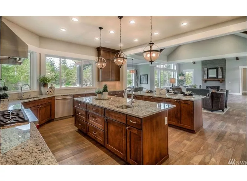 A home with plenty of space for your family and vehicles, House Plan 7467 boasts 3,270 square feet and an angled four-car garage on one level that's sure to stand out on the street! When you first approach, you'll notice that one of the garage bays is oversized, so it's ready for an RV or small boat. Head toward the front entry and beautiful Craftsman details will welcome you home, with decorative millwork over the covered porch. The interior features an exceptionally spacious layout with common areas in the middle and four bedrooms split across them. The vaulted foyer opens to the vaulted great room that has massive windows for rear views. This space shares a two-sided fireplace with the hearth room, which borders the formal dining room, informal nook, and grand double island U-shaped kitchen on its other sides. The luxurious primary suite is placed behind the kitchen while a smaller suite and a pair of Jack-and-Jill bedrooms are located off the great room. Make sure to look at the floor plan to appreciate what else this home has to offer, from the huge laundry/mudroom to the outdoor living space!