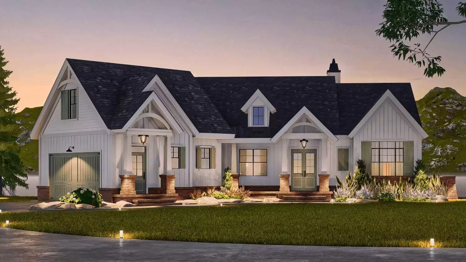 If you're in the market for a family-sized cottage with crafty style and a great layout, take a look at House Plan 8075. This one-story home offers 2,619 square feet with three bedrooms and two-and-a-half bathrooms. On the exterior, the angled two-car garage helps the gabled facade with decorative millwork stand out for all the right reasons. Inside, a semi-formal floor plan places the foyer and dining room in front while the kitchen is open to the family room in back. A butler's pantry connects the kitchen to the dining room, and you'll also find ample storage space in the walk-in pantry in back. The vaulted family room offers cozy charm with a fireplace and built-ins. The master suite is privately located behind the garage and boasts a tray ceiling in the bedroom, a five-piece bath, and two walk-in closets. The other two bedrooms are in a Jack-and-Jill layout on the opposite side of the house. If you need more than this, House Plan 8075 also offers a bonus room over the garage that could be an office, playroom, or whatever else you need!