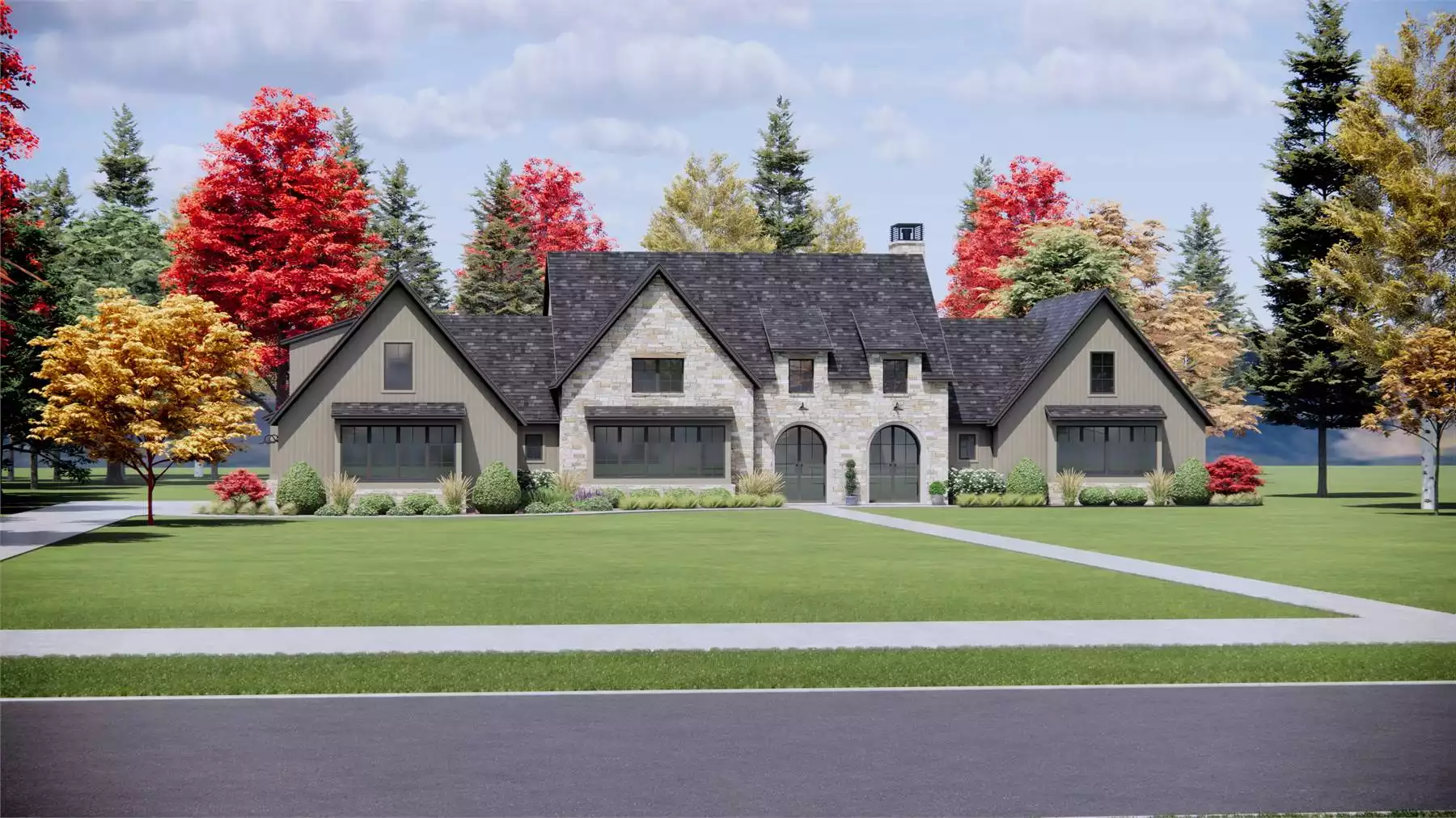 A sprawling one-story design with traditional architectural appeal, House Plan 4978 offers 3,856 square feet wrapped up in a Tudor-inspired exterior. It's perfect if you're looking for a home to make your own estate! The open-concept living areas make up the center of the floor plan, with a vaulted ceiling spanning the U-shaped island kitchen and dining area and another vault spanning the great room. The primary bedroom suite is privately located in the hallway off the family foyer that connects to the three-car garage while the other three bedrooms--all suites with their own baths--are on the opposite side of the house. If you need more than this, House Plan 4978 also offers an office off the foyer and a bonus room over the garage that you can make your own!