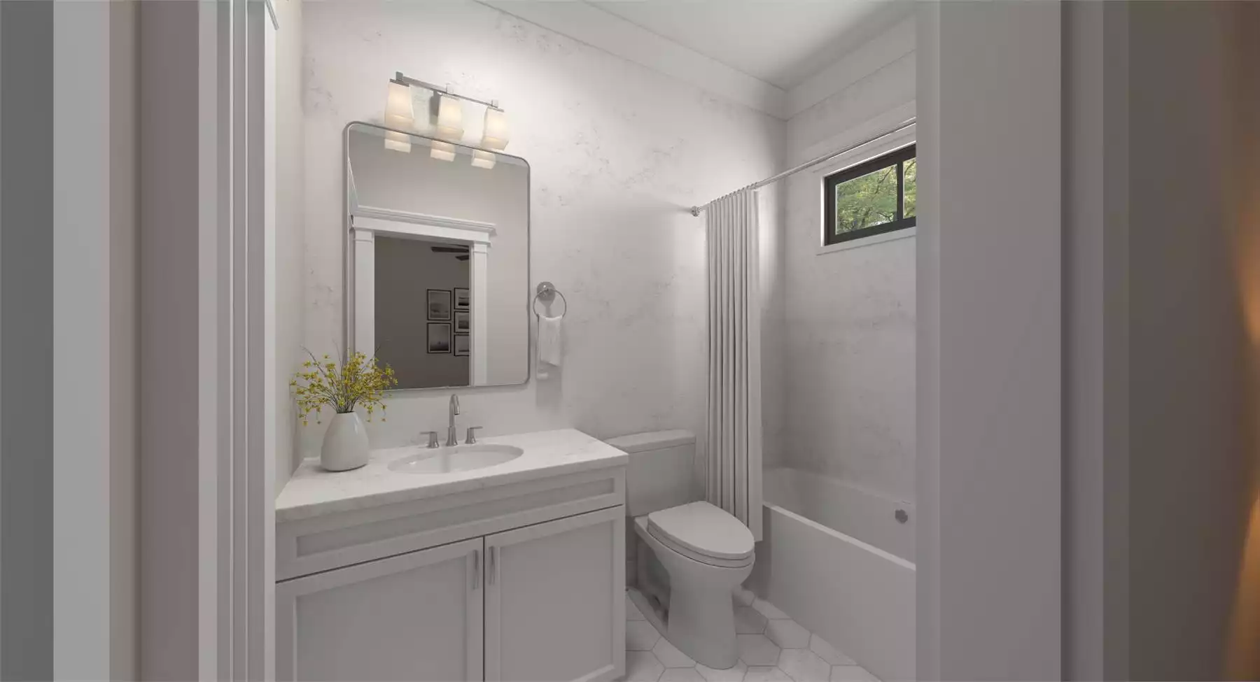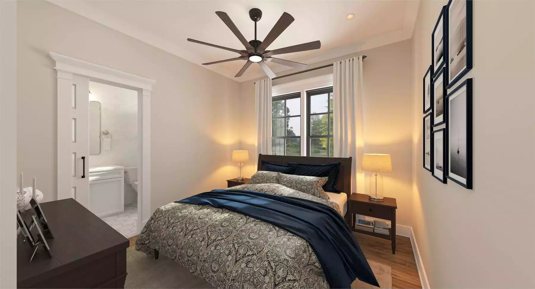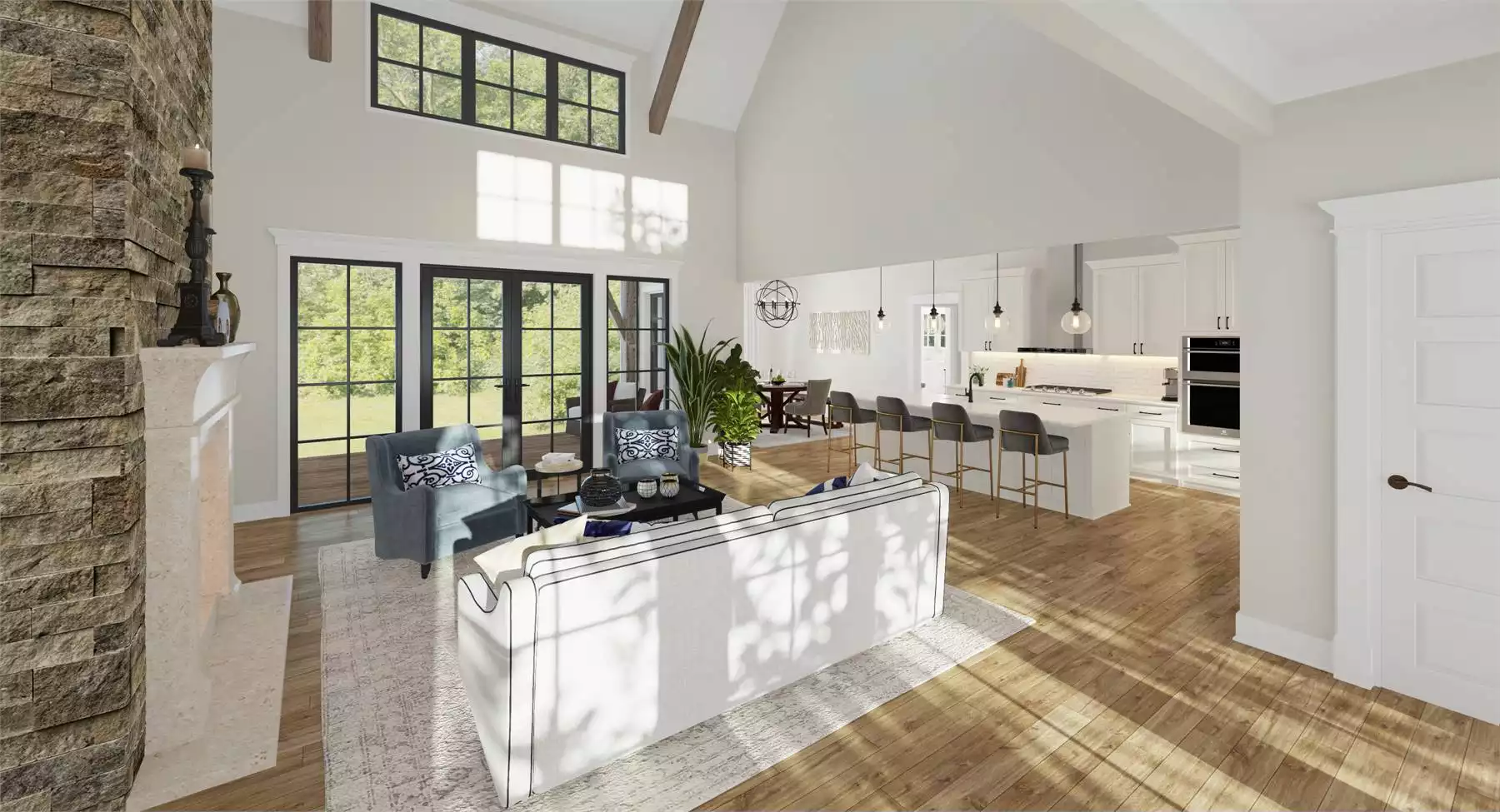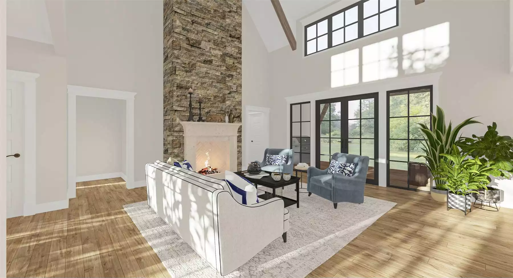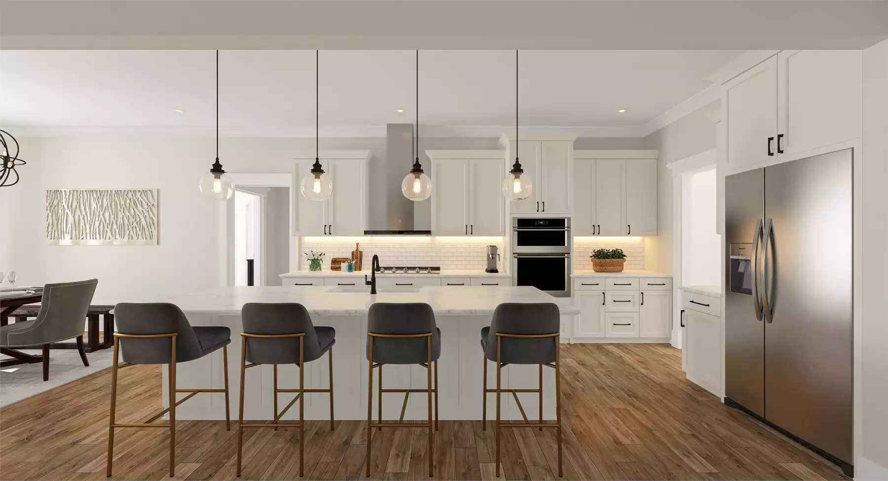 Lamborn is a one story modern farmhouse designed to bring comfort, style, and everyday convenience together in a thoughtful layout. The family room showcases beautiful vaulted ceilings that enhance the open feel and create a warm gathering space. The chef inspired L shaped kitchen includes a large island ideal for casual meals and entertaining, and it connects smoothly to the main living areas. A dedicated office offers a quiet spot for work or study, while the split bedroom layout supports privacy for every member of the household. The primary suite serves as a relaxing retreat with a double vanity, a soaker tub, a separate shower, and a walk in closet. A versatile games room adds flexible space for recreation, hobbies, or family time, and the three car garage provides generous storage and parking.
