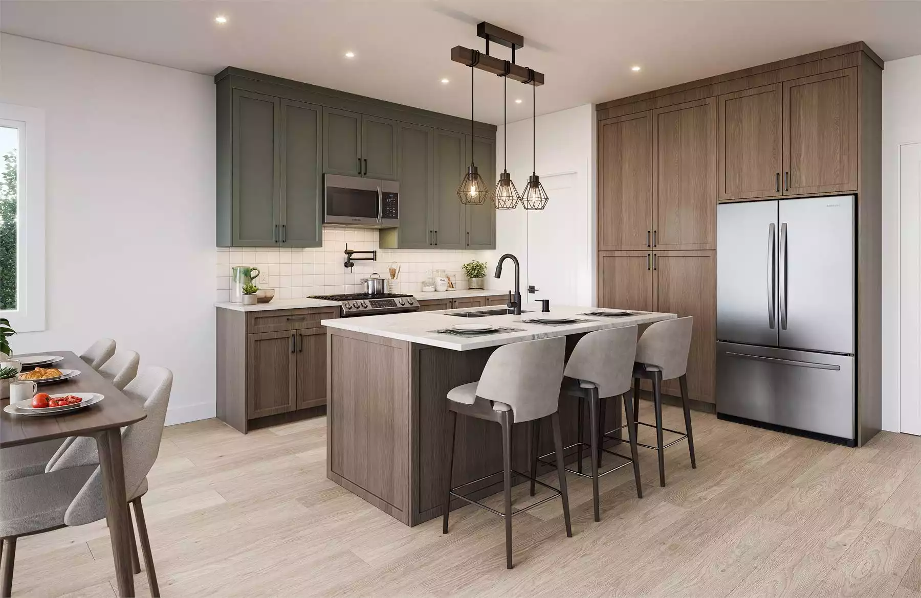 This charming farmhouse plan offers a cozy and functional layout with 2 bedrooms and 2 bathrooms. The main level features a spacious great room, a well-appointed kitchen with a walk-through pantry, and a dedicated dining area. The primary suite boasts a walk-in closet and a private ensuite bath, while the second bedroom is conveniently located near a full bath. Outdoor living spaces include a covered front porch and a sundeck at the rear, perfect for relaxing and entertaining. The design also includes an unfinished basement with the potential for a future bedroom and additional living areas, adding versatility to this home. An attached double garage provides ample storage and parking space.