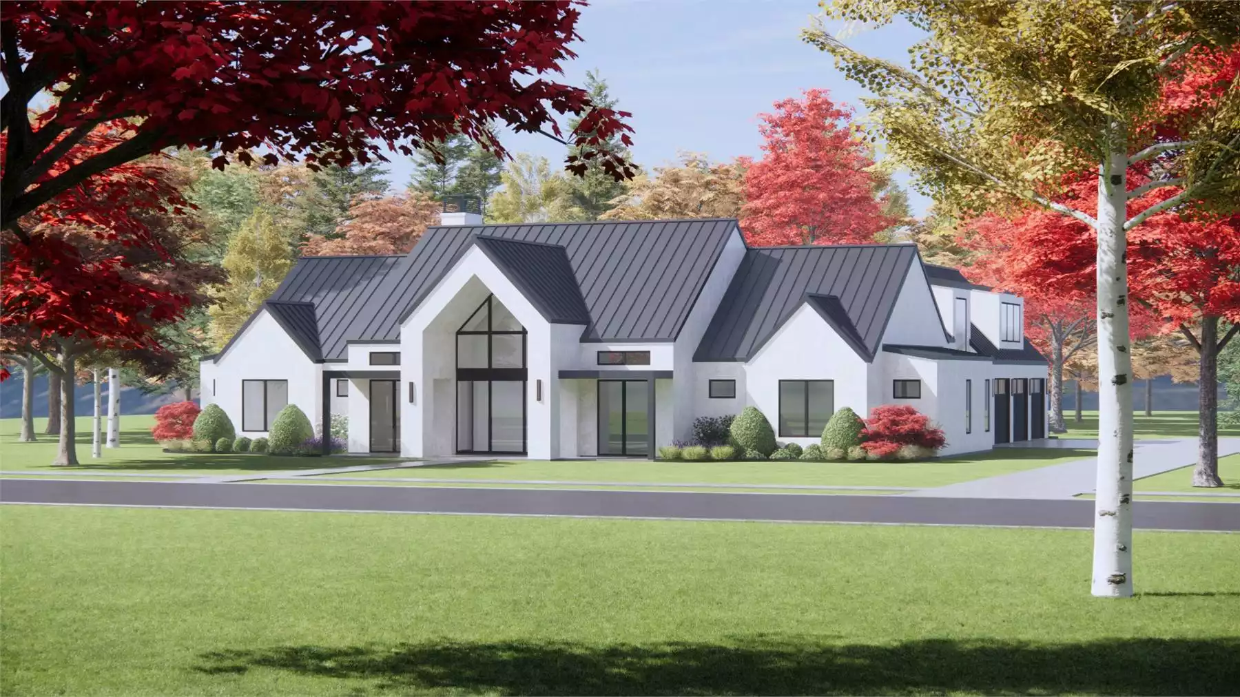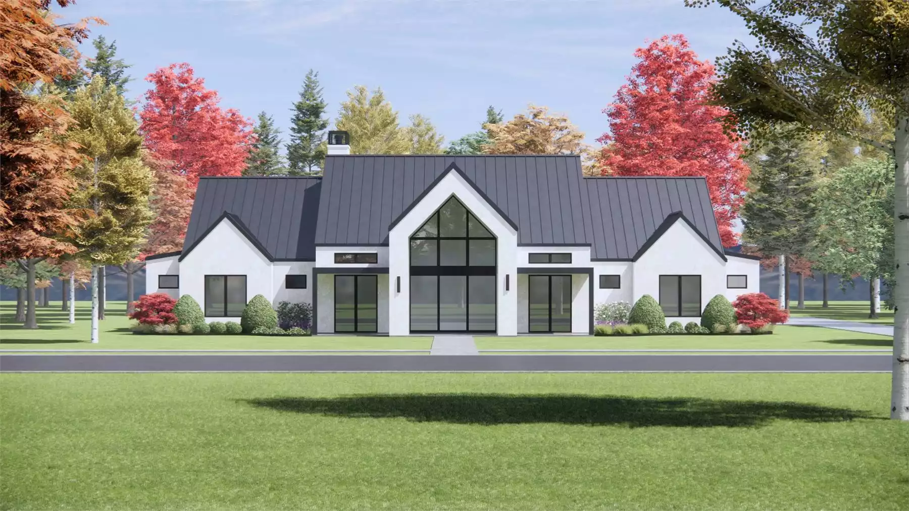 Looking for a farmhouse-inspired home with bold contemporary style? Check out House Plan 7790! This dramatic design wows with sharp clean gables and large windows made to bring in tons of light and views. Inside, you'll find 3,641 square feet. The layout places the office and formal dining across the vaulted foyer while the vaulted great room and island kitchen fill out the back. The bedrooms are split across the common areas for privacy. The primary bedroom suite with its luxurious five-piece bath is on the same side of the house as a smaller vaulted suite ideal for guests while two other suites are across the floor plan. Make sure not to miss the large porch in back that offers even more room to spread out, or the bonus room over the three-car garage that you can turn into whatever else you may need!