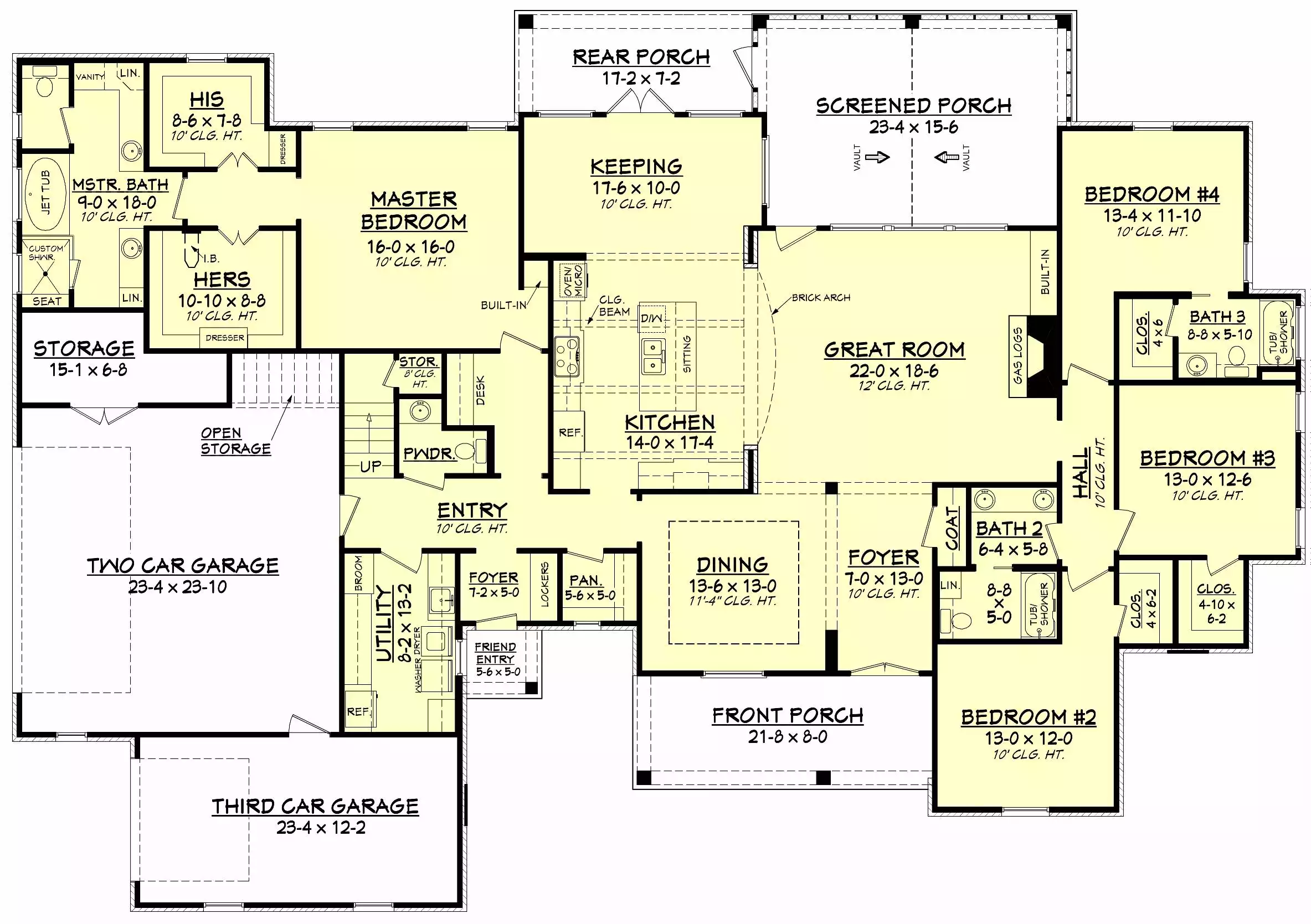 This home offers 3,195 square feet with 4 bedrooms arranged in a split layout that feels comfortable and easy to navigate. The open floor plan brings together the great room, dining area, and kitchen for connected everyday living. A spacious kitchen with an island, L-shaped layout, peninsula, and walk-in pantry provides generous room for cooking and hosting. The primary bedroom sits on the main floor with double vanities, his and hers closets, and a relaxing bath with a separate tub and shower. Additional bedrooms, a rec room, and unfinished space offer flexibility for storage or future expansion. The mud room and first-floor laundry add helpful convenience for busy routines. A screened porch and covered front and rear porches extend the living space outdoors in a calm, inviting way. This warm plan blends roomy comfort and thoughtful details for easy daily life.