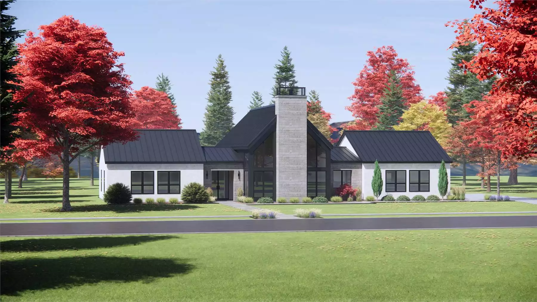 Need a stunning modern ranch for a view lot? See what House Plan 9199 has to offer! This spacious ranch offers 2,892 square feet and a breathtaking vaulted great room with floor-to-ceiling windows in front and back to take in your surroundings. When you first step inside, the foyer is open to this great room on one side while three bedrooms--one suite and two that share a hall bath--are down the hall on the other. The island kitchen overlooks the common living space and features a walk-in pantry. Head down the back hall and you'll find the family foyer coming in from the two-car garage, the laundry room, and the primary suite. With a vaulted bedroom, a five-piece bathroom including a Euro-style bathing area, and a walk-in closet that connects to the laundry room, it offers a luxe experience. Make sure to appreciate this home from all angles!