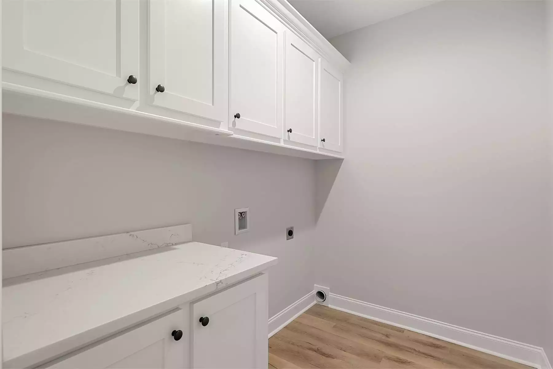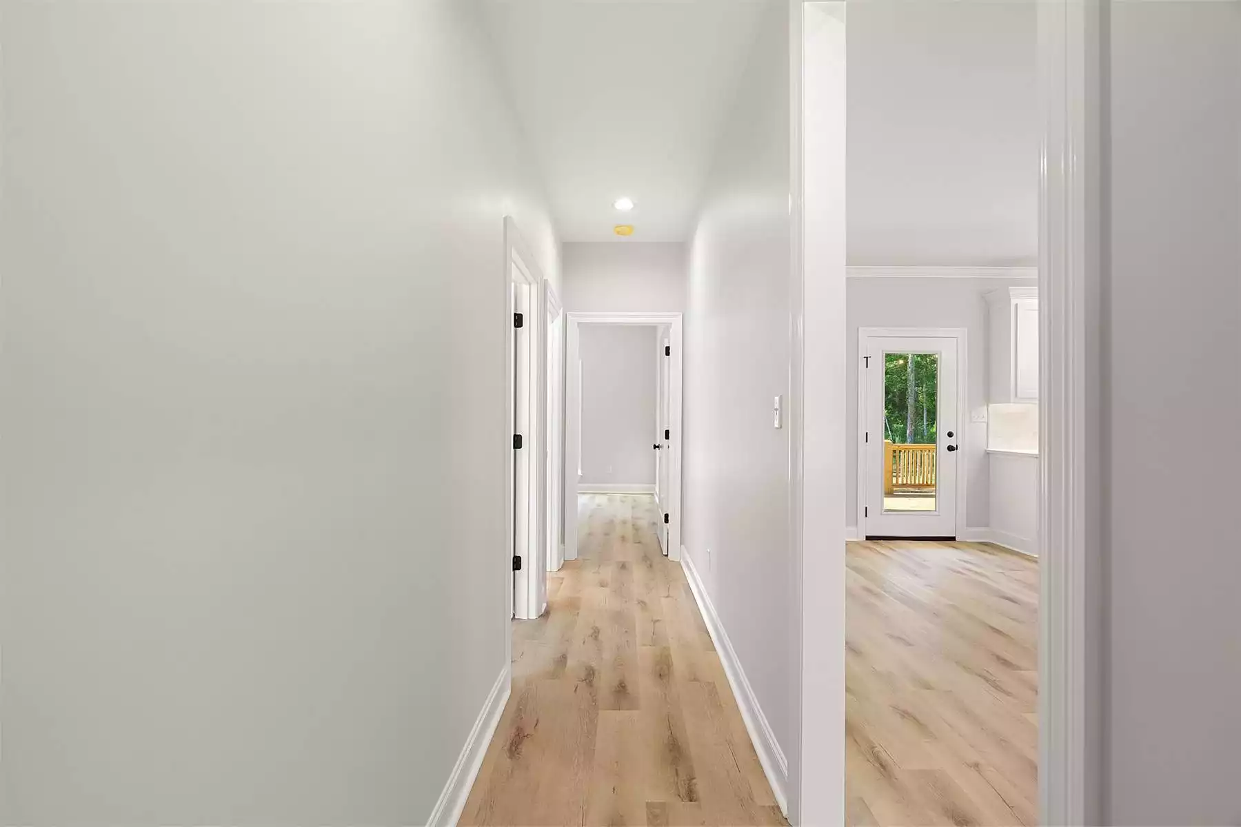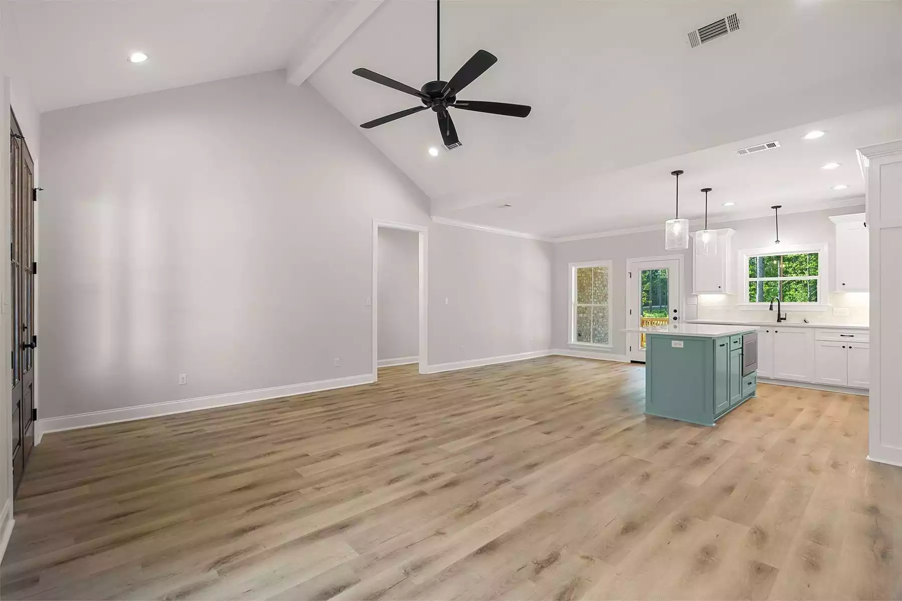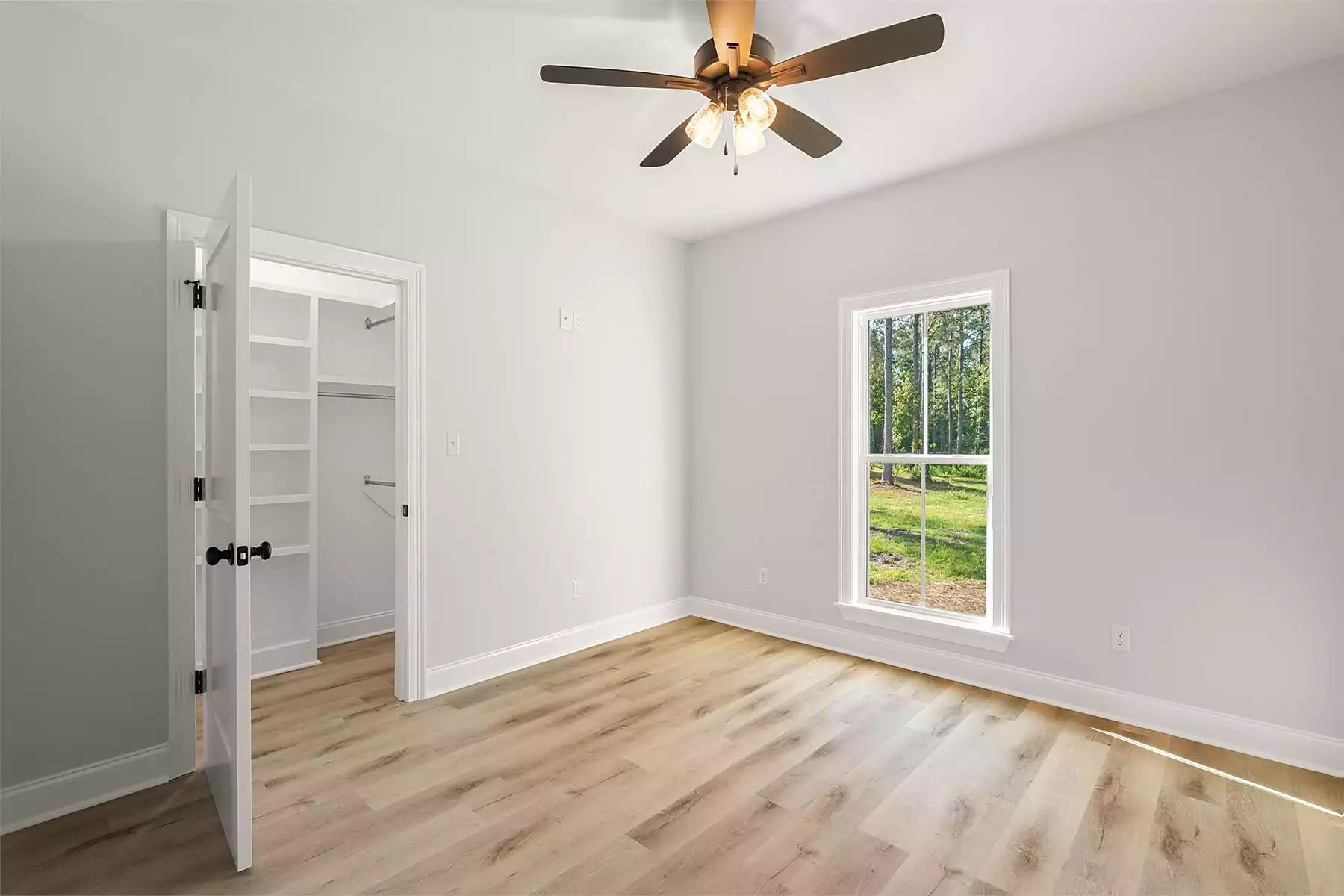 This charming 1,880 square feet plan welcomes you with a covered front porch and a warm, open layout designed for comfortable family living. The vaulted great room creates an airy sense of space, flowing easily into the dining area and L-shaped kitchen with a large island and butler's pantry. A main floor primary suite offers privacy and convenience, complete with a double vanity, walk-in closet, and separate tub and shower. Three additional bedrooms are arranged thoughtfully in a split-bedroom layout, giving everyone their own corner of the home. The mud room and first-floor laundry add everyday practicality, while the rear porch extends living outdoors. Storage spaces throughout the plan help keep things organized and clutter-free. With its inviting layout and warm farmhouse character, this home is designed for easygoing days and memorable family moments.