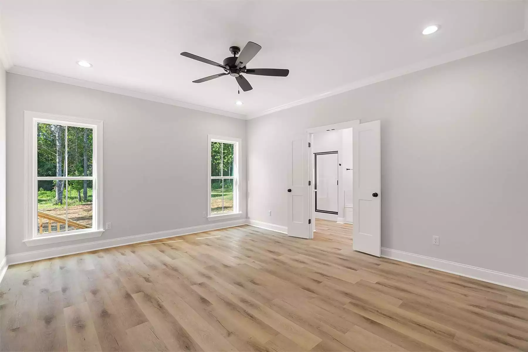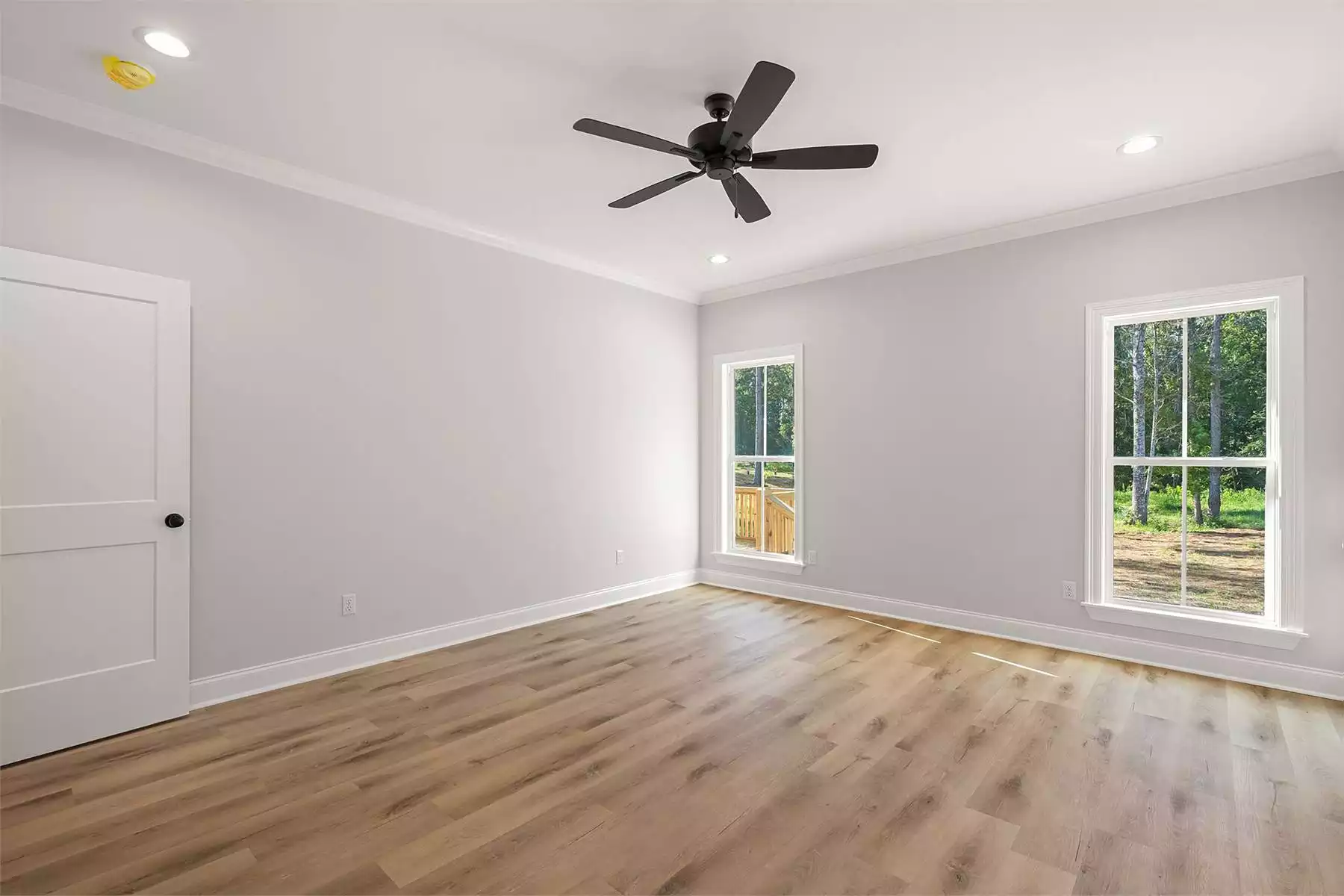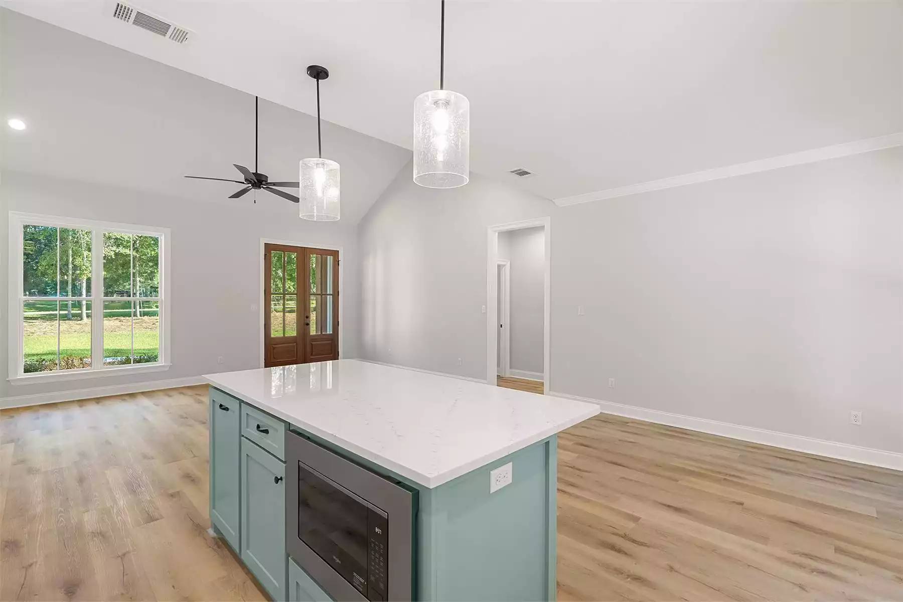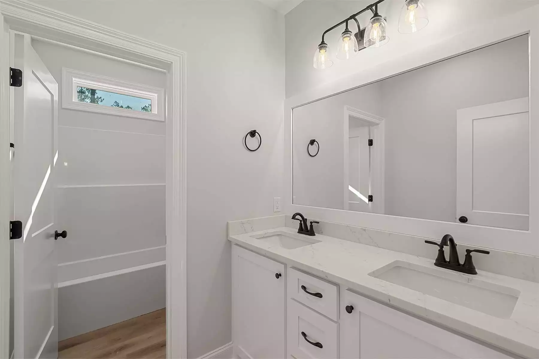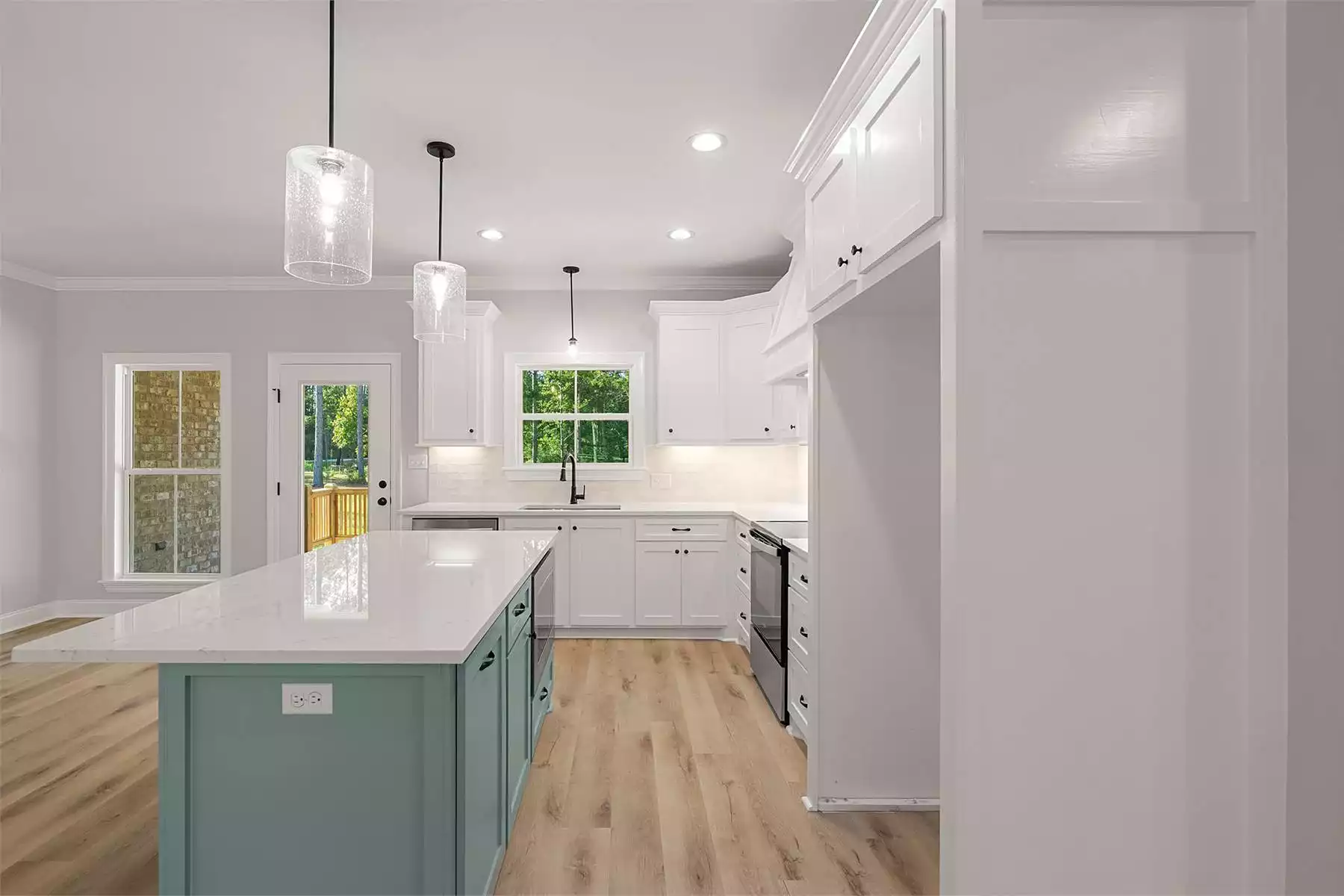 This charming 1,880 square feet plan welcomes you with a covered front porch and a warm, open layout designed for comfortable family living. The vaulted great room creates an airy sense of space, flowing easily into the dining area and L-shaped kitchen with a large island and butler's pantry. A main floor primary suite offers privacy and convenience, complete with a double vanity, walk-in closet, and separate tub and shower. Three additional bedrooms are arranged thoughtfully in a split-bedroom layout, giving everyone their own corner of the home. The mud room and first-floor laundry add everyday practicality, while the rear porch extends living outdoors. Storage spaces throughout the plan help keep things organized and clutter-free. With its inviting layout and warm farmhouse character, this home is designed for easygoing days and memorable family moments.