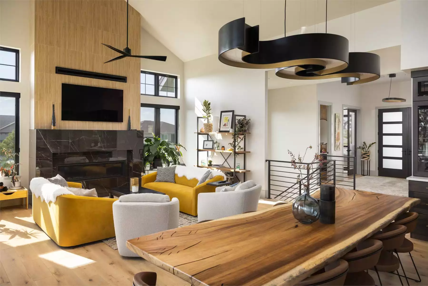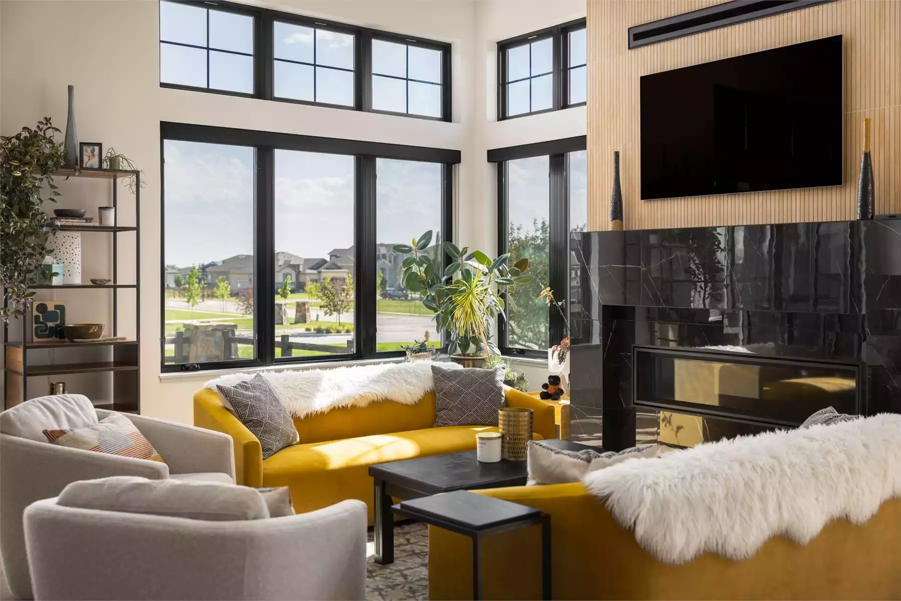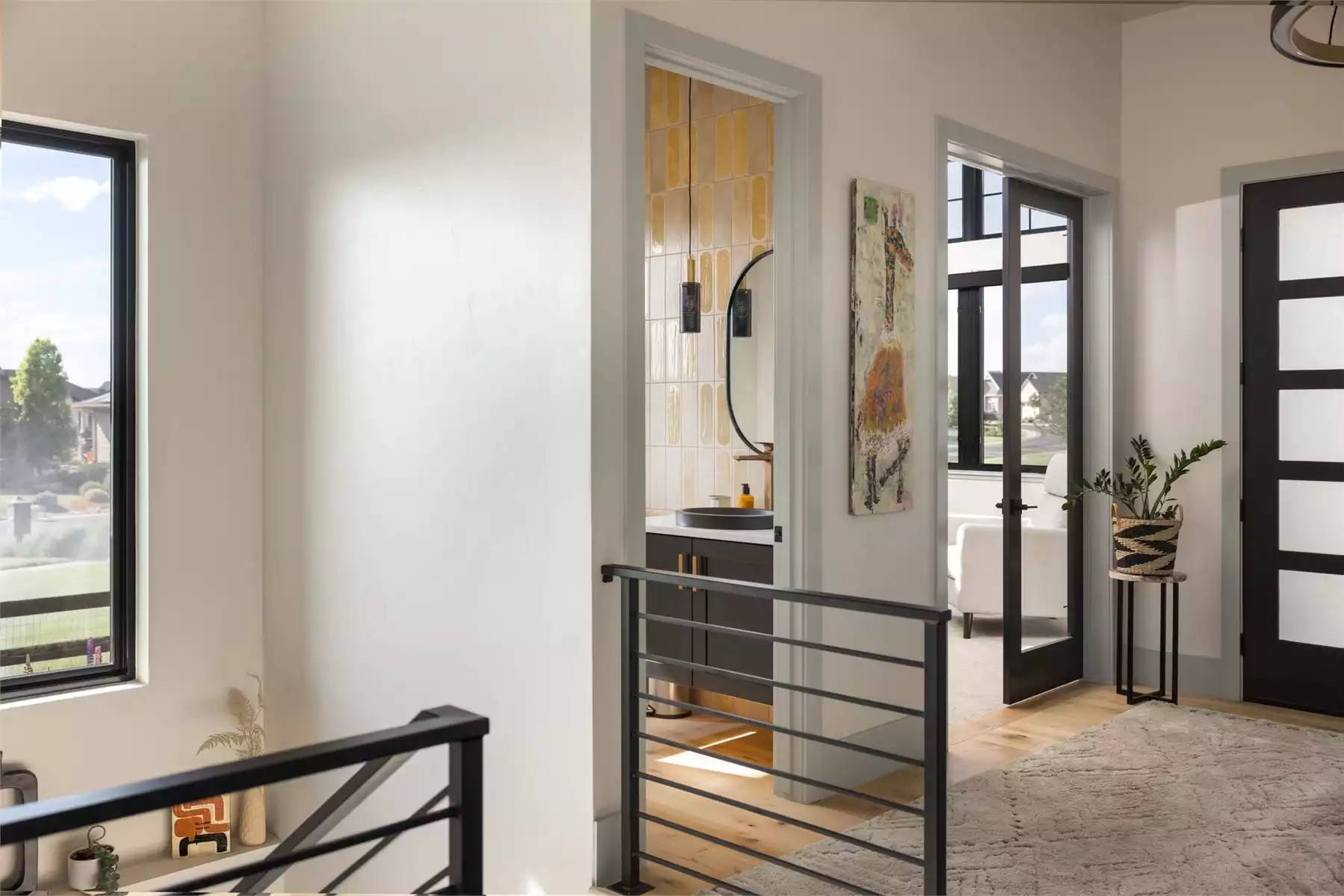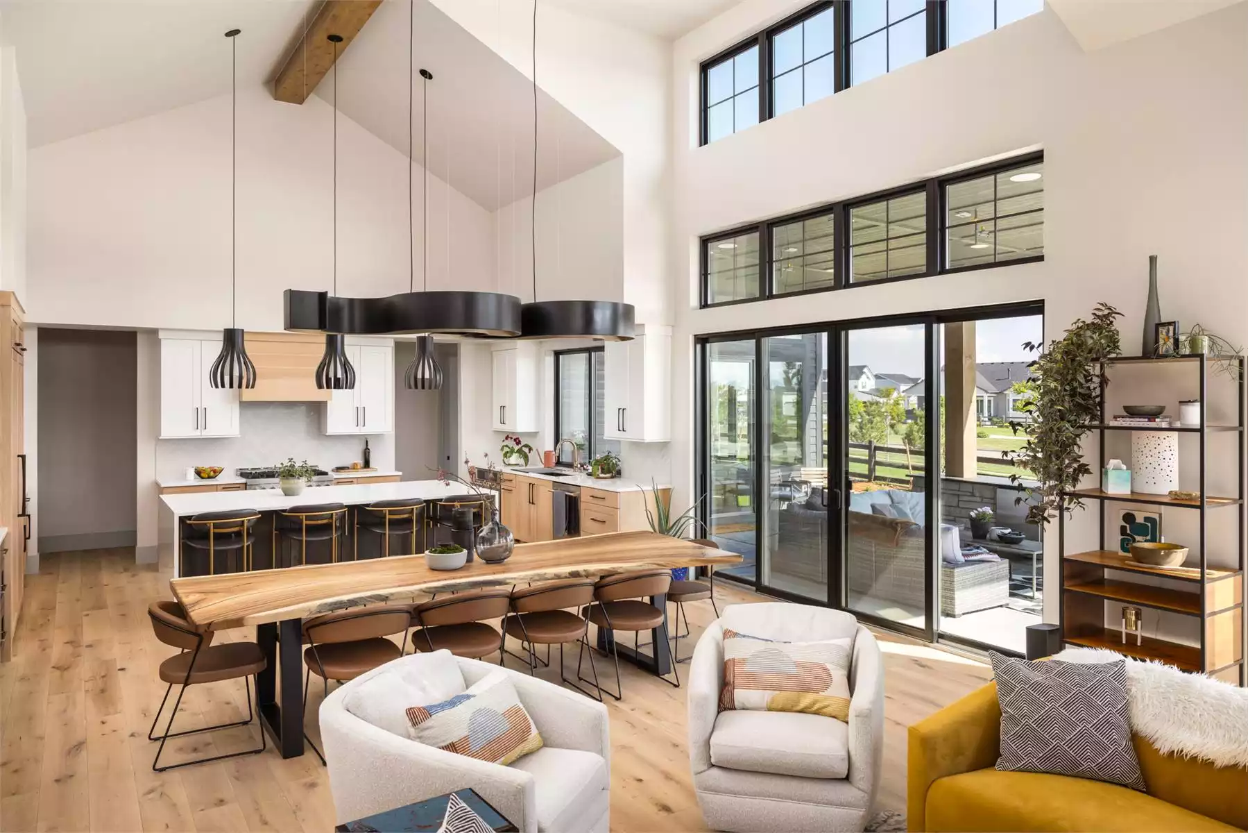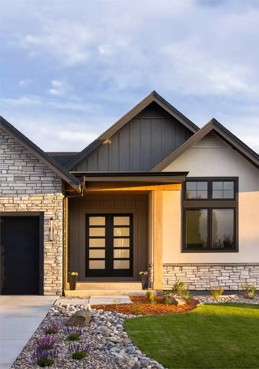 The Coldcrest is a chic mountain-style home with a smart, single-story layout and a front-facing three-car garage. Spanning 2,163 square feet, it offers 2 bedrooms and 2.5 bathrooms, with the option to double the living space by adding a finished lower level—complete with 2 additional bedrooms, a full bath, and a spacious rec room. Inside, the split-bedroom design enhances privacy, with the first bedroom located at the front of the home and the luxurious primary suite tucked away on the left side. The primary bedroom boasts spa-like features, including a large bathroom with a separate soaker tub, walk-in shower, dual vanities, and a generous walk-in closet. At the heart of the home is an open-concept living area, featuring a chef’s dream kitchen with a U-shaped design, expansive counter space, and an oversized central island—perfect for entertaining—all with easy access to the large rear outdoor living space and scenic views.T