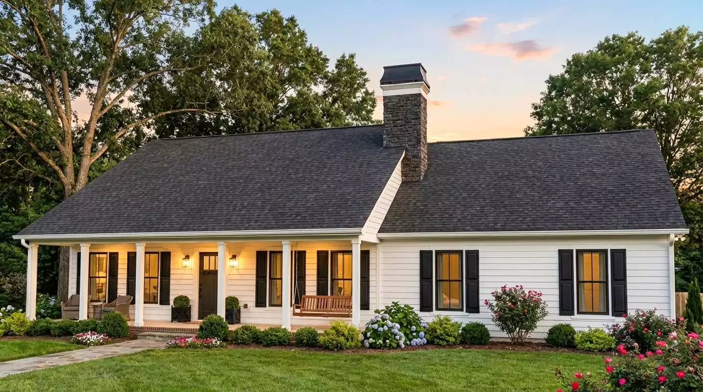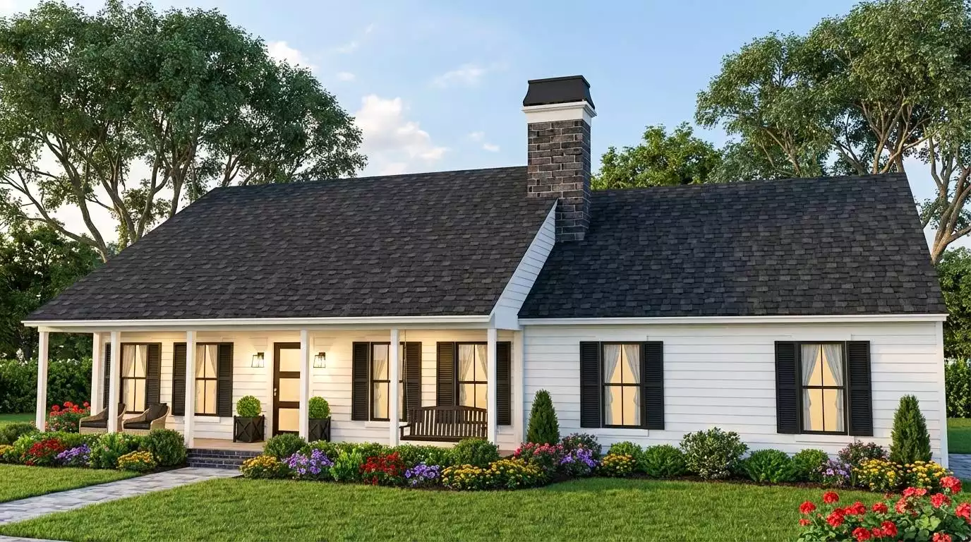 The Southern Trace has just been added to our America’s Choice House Plan Collection! This home design was updated with our customer’s most-requested modifications to make it even more livable and more affordable to build! This one-level, ranch style home features an open floor plan with split bedrooms, a living room, fireplace, dining room, and spacious kitchen that flow together to provide a large family gathering space. The kitchen offers plenty of counter space, cabinetry, and a snack bar. Two bedrooms with 9’ ceilings and one bath are located on the left side of the home along with ample-sized closets. The large, private master suite is on the right side of the home with an ensuite bath featuring a garden tub, separate vanities, shower, enclosed water closet, and large walk-in-closet. The laundry room is ideally located near the master suite hallway, directly off the garage for easy accessibility to the mudroom with cubbies and storage. Access to a covered rear porch from the kitchen and dining area is perfect for outdoor entertainment.