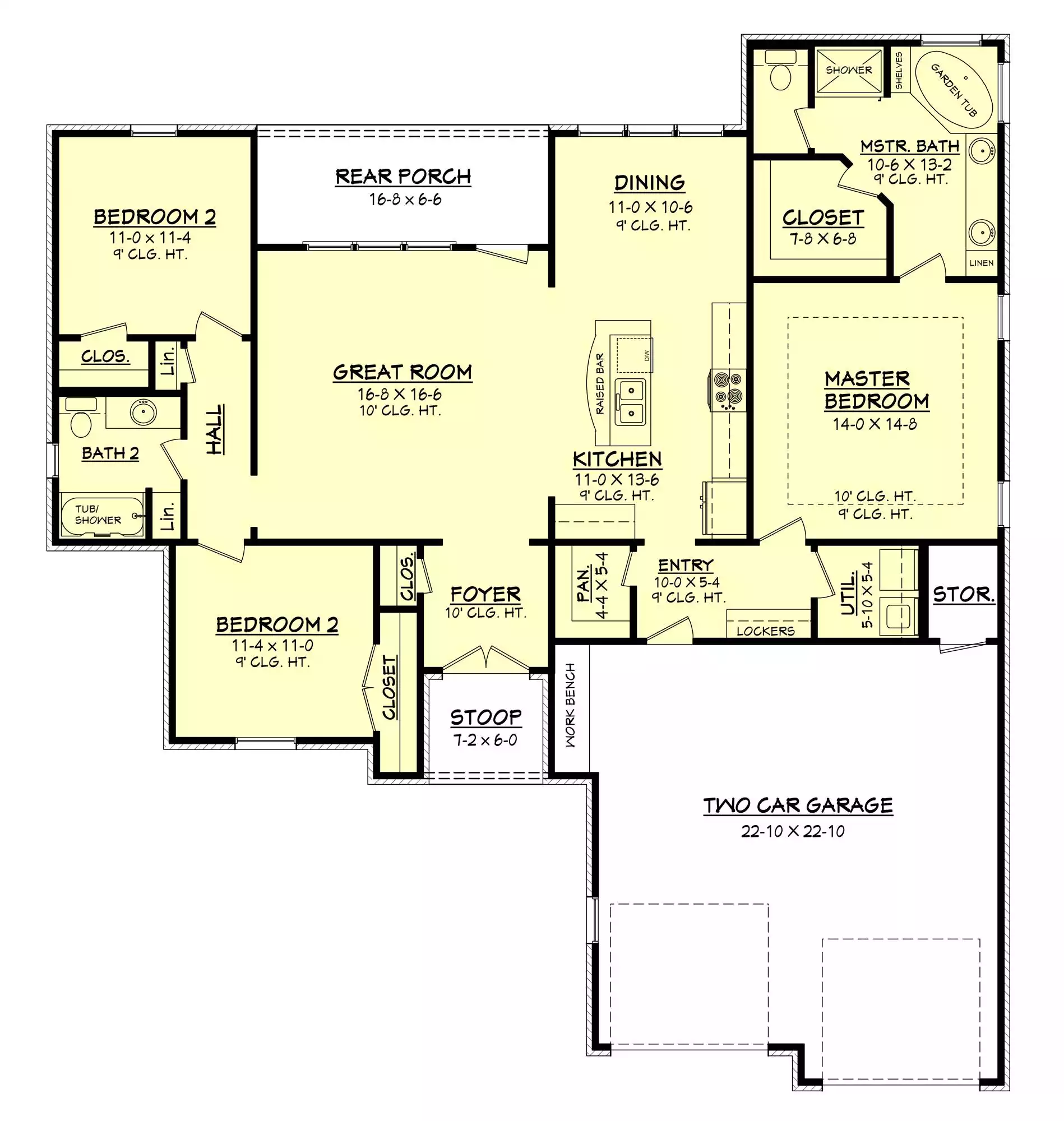 This welcoming home features 1,600 square feet of heated living space with 3 bedrooms arranged in a comfortable split-bedroom layout. The open floor plan centers around a bright great room that flows naturally into the dining area, making it easy to host gatherings or enjoy quiet evenings at home. The kitchen includes a central island, peninsula eating bar, and walk-in pantry, offering plenty of workspace and storage. The primary suite is located on the main floor and includes a walk-in closet, double vanity, and a separate tub and shower for everyday comfort. A mud room and first-floor laundry add convenience just off the attached front-entry garage. Covered front and rear porches provide inviting outdoor spaces to relax throughout the day. With practical storage and an easy flow, this plan feels both functional and welcoming.