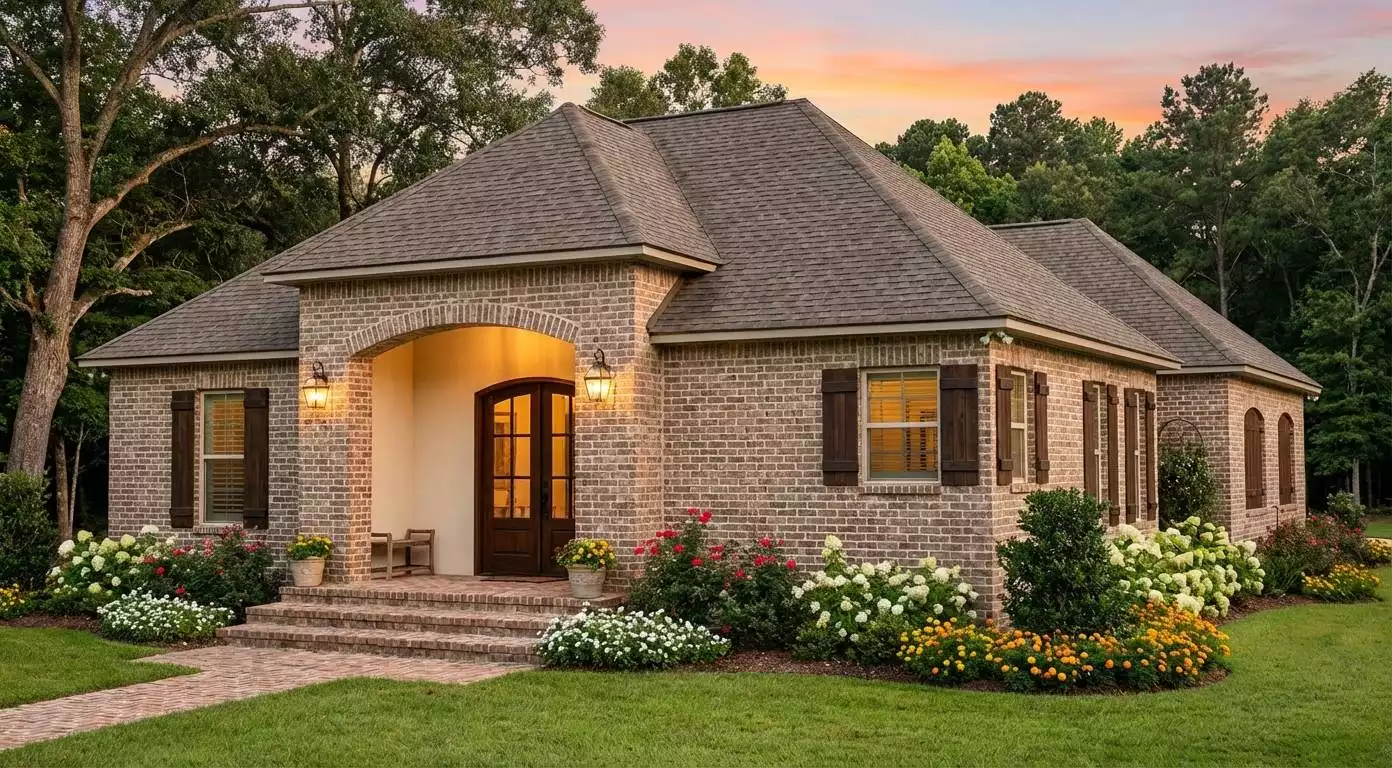 This 1686 square feet, 1 story country home plan offers 3 bedrooms and 2 baths in a thoughtfully designed open floor plan that balances comfort and function. The great room and family room connect seamlessly, anchored by a cozy fireplace that creates a warm gathering space. The kitchen features a peninsula with eating bar, breakfast nook, and walk-in pantry, keeping meals and entertaining easy and efficient. The split bedroom layout enhances privacy, with the primary bedroom located on the main floor and offering his and hers primary closets, a walk-in closet, double vanity sink, and a separate tub and shower. Two secondary bedrooms share a well placed hall bath, ideal for family or guests. First floor laundry and added storage space support smooth daily routines. A charming courtyard along with covered front and rear porches extends living outdoors, while the attached rear entry garage with side access completes this inviting and practical design.