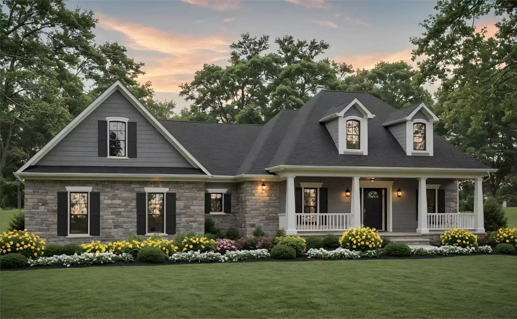 Abbington Springs blends timeless traditional styling with a highly functional split-bedroom floor plan. The great room features a vaulted ceiling and flows into the kitchen, breakfast nook, and dining room, creating an inviting space for everyday living and entertaining. The primary suite sits on its own wing and includes a generous walk-in closet and a bath with both a soaking tub and separate shower. Bedrooms 2 and 3 share a full hall bath on the opposite side of the home, providing privacy for family or guests. A dedicated laundry room, pantry, and extra storage help keep the home organized and efficient. Outdoor living is easy with both a 32' covered front porch and a covered rear porch off the great room. A side-entry 2-car garage completes this charming ranch design.