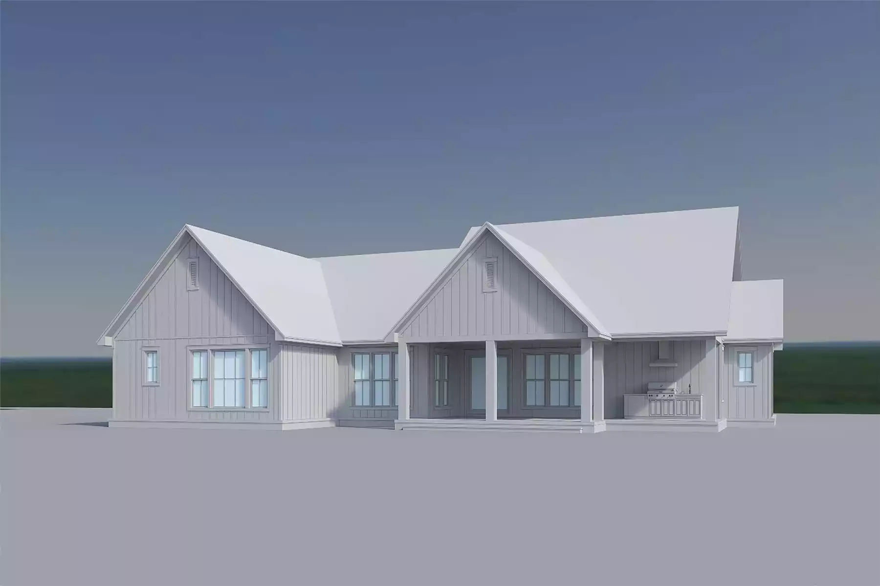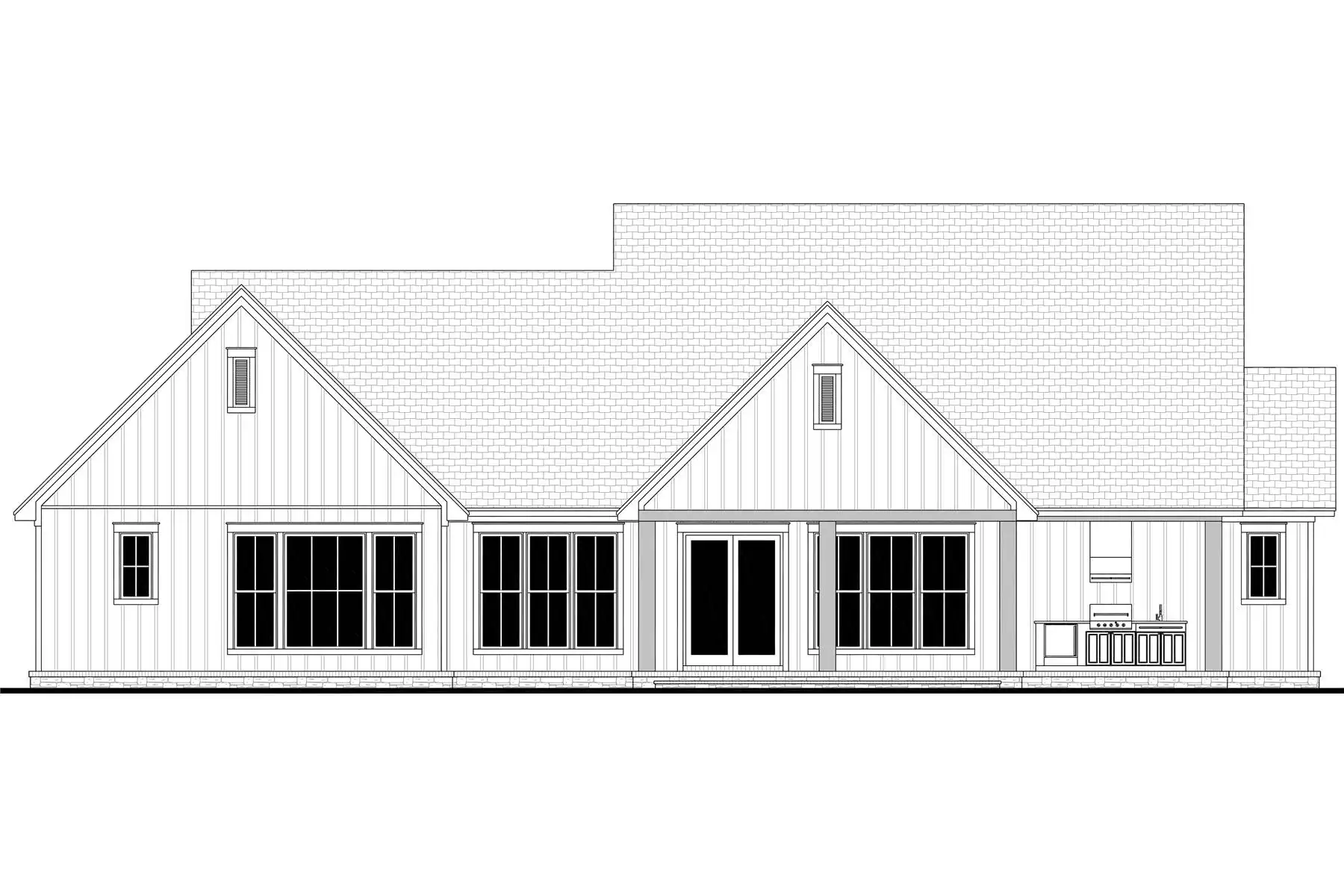This well-designed 2383 square feet home offers 3 bedrooms and 3.5 bathrooms in a spacious single-story layout. The open floor plan is enhanced by vaulted ceilings in the great room, creating a bright and inviting space centered around a fireplace. The kitchen features an island, L-shaped design, peninsula seating, and a butler’s pantry for added storage and function. A main floor primary suite provides a private retreat with a walk-in closet and a bathroom with a separate tub and shower. Split bedrooms offer added privacy for family or guests. A dedicated home office and mud room bring convenience to everyday living. Covered front and rear porches with an outdoor kitchen extend the living space outdoors.
