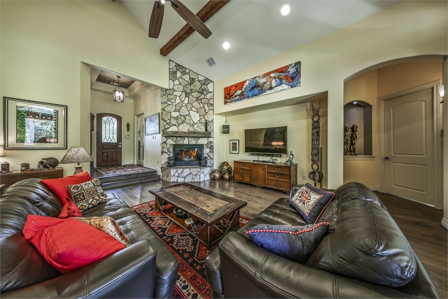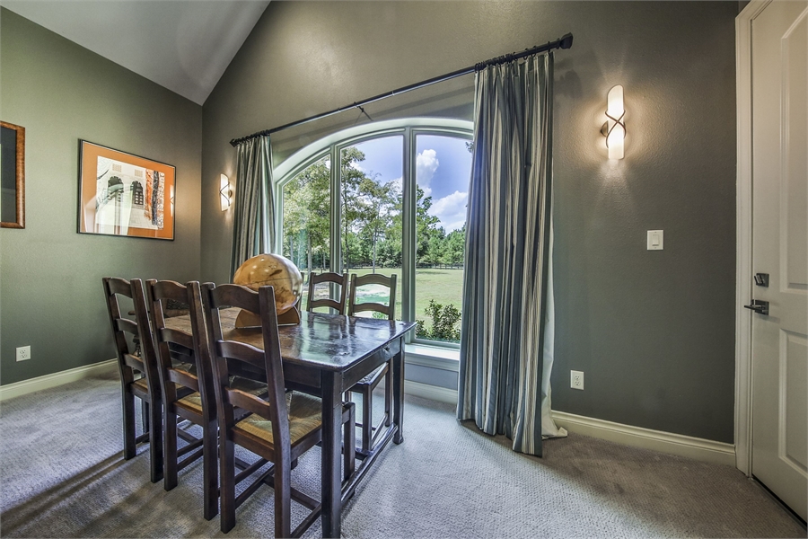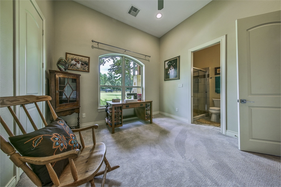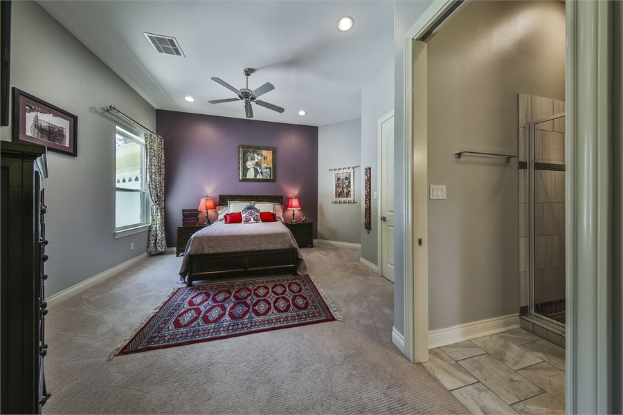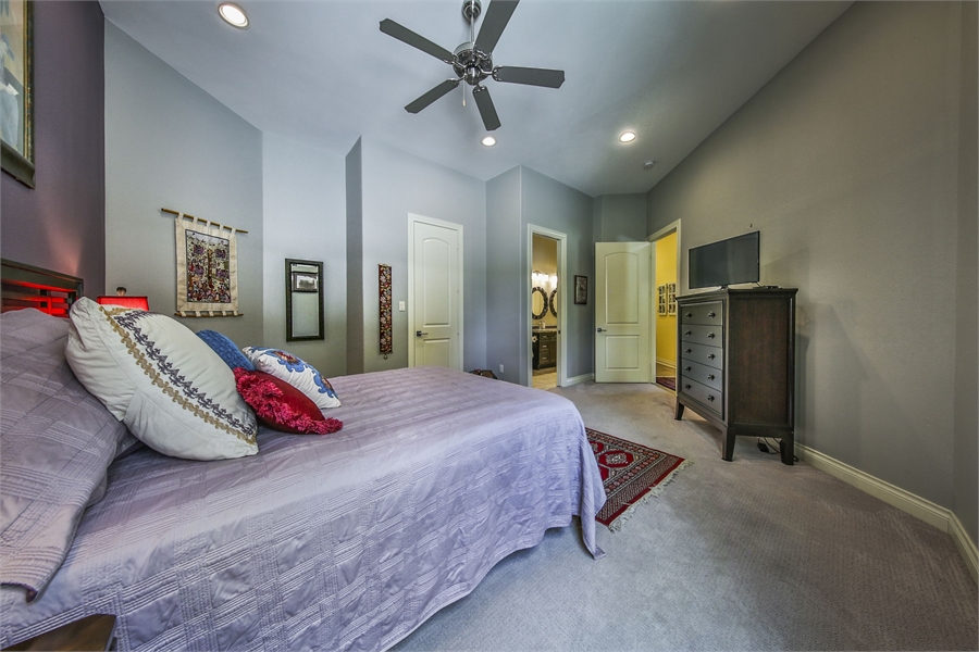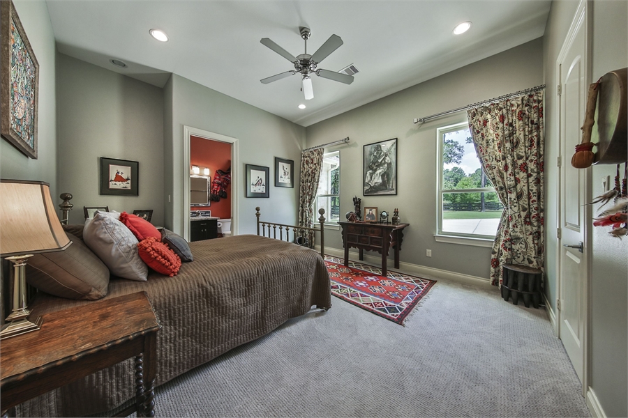 You can call this stunning, sprawling one-story plan your home sweet home. The luxurious foyer is flanked by a cozy study with coffered ceiling and built-ins, and a guest bedroom, complete with full bath and walk-in closet. Two family bedrooms with direct bath access and walk-in closets are in close proximity to the one- and two-car garages. A game room at the rear of the home lies just steps away from a cooking patio. Centrally located in the main living area are the family room, kitchen and keeping room, being separated only by the breakfast bar. Two corner fireplaces located in the family room and keeping room warm this entire area, while the many windows allow for well sunlit rooms and gorgeous views to the outdoor lounge and cooking area. The gourmet kitchen is full of amenities. Step into the elegant master suite, located on the left side of the home, featuring a luxurious bath with his and hers vanities, separate shower, corner garden tub and huge wardrobe area with built-ins. Private entrances from the master suite lead to the study and the outdoor lounge. A utility room completes this luxury floor plan. Not to be sold within 100 miles of 75032.