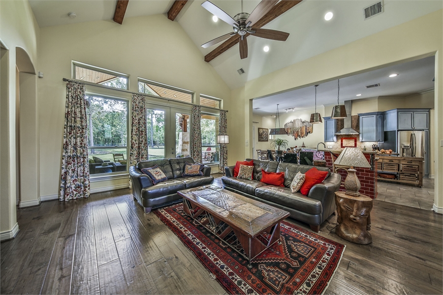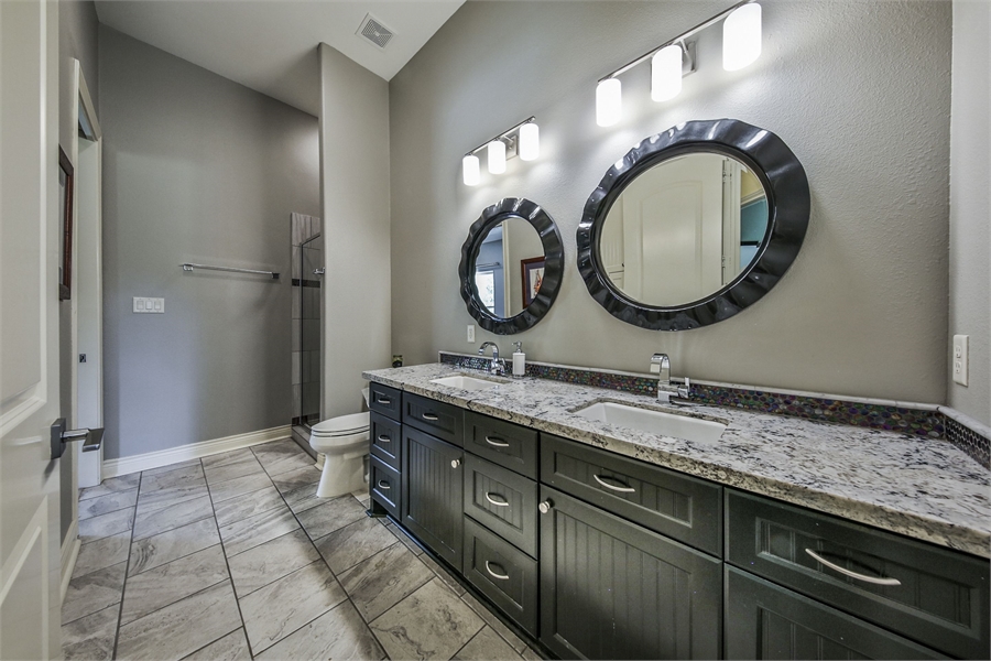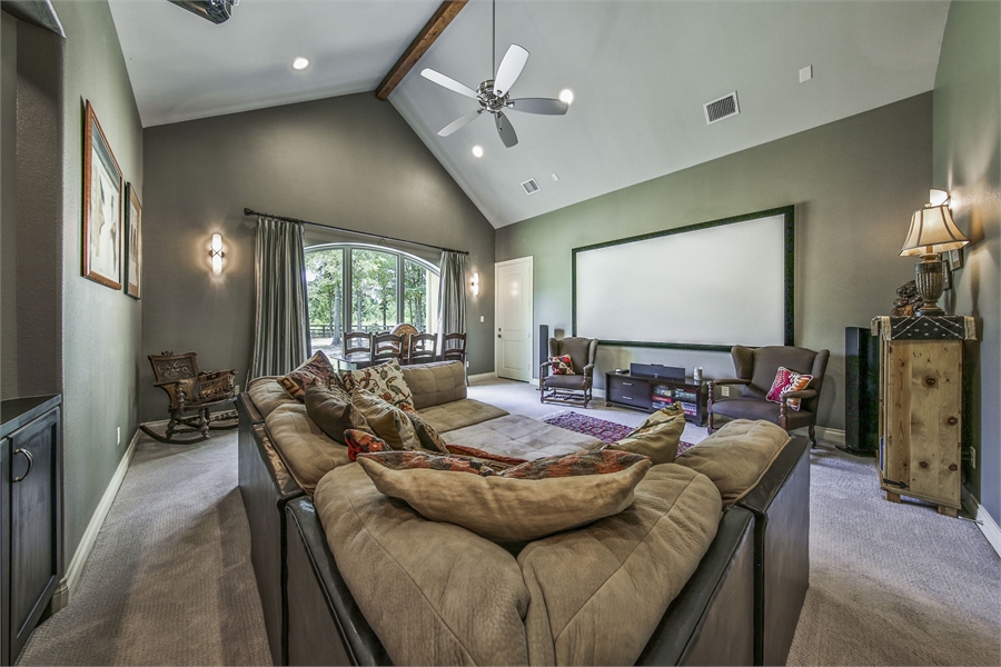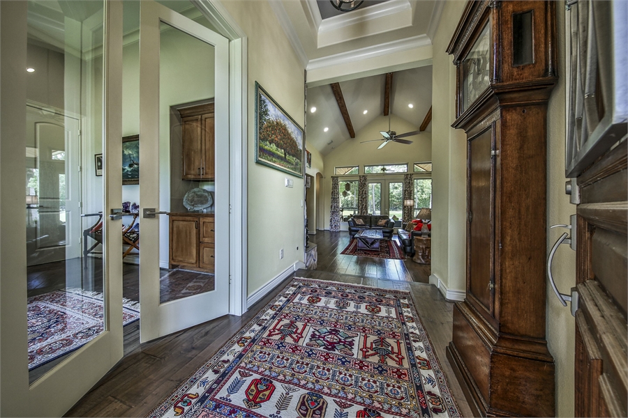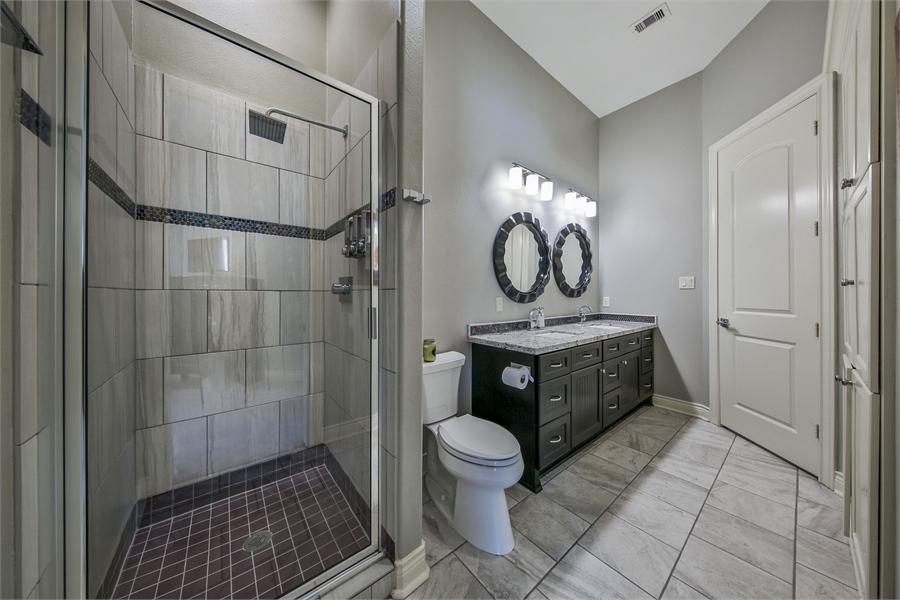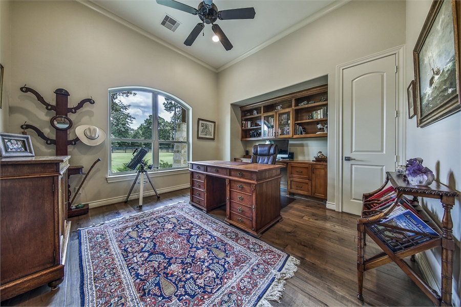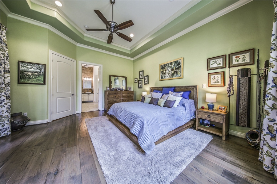 You can call this stunning, sprawling one-story plan your home sweet home. The luxurious foyer is flanked by a cozy study with coffered ceiling and built-ins, and a guest bedroom, complete with full bath and walk-in closet. Two family bedrooms with direct bath access and walk-in closets are in close proximity to the one- and two-car garages. A game room at the rear of the home lies just steps away from a cooking patio. Centrally located in the main living area are the family room, kitchen and keeping room, being separated only by the breakfast bar. Two corner fireplaces located in the family room and keeping room warm this entire area, while the many windows allow for well sunlit rooms and gorgeous views to the outdoor lounge and cooking area. The gourmet kitchen is full of amenities. Step into the elegant master suite, located on the left side of the home, featuring a luxurious bath with his and hers vanities, separate shower, corner garden tub and huge wardrobe area with built-ins. Private entrances from the master suite lead to the study and the outdoor lounge. A utility room completes this luxury floor plan. Not to be sold within 100 miles of 75032.