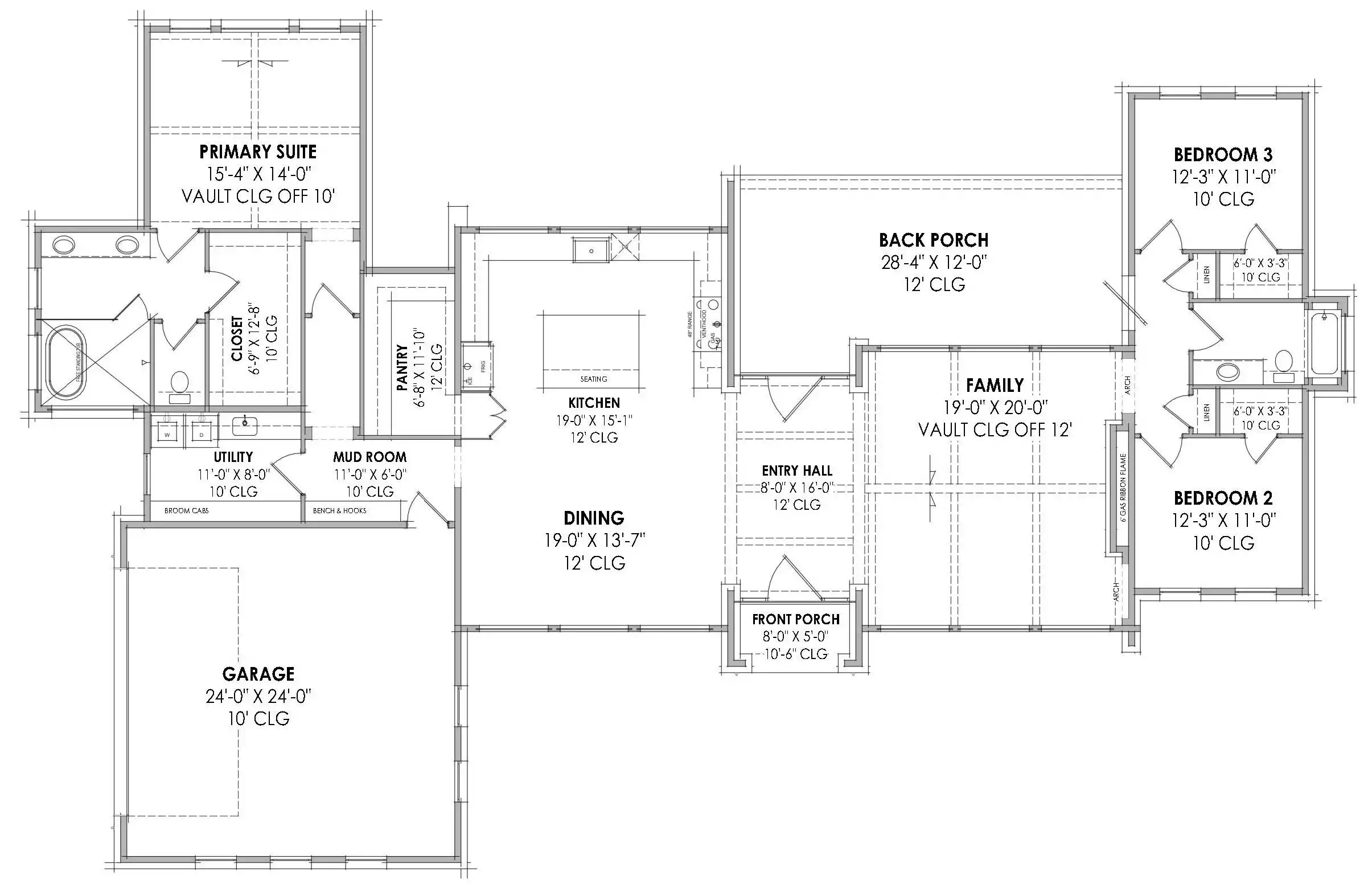 Each set of construction documents includes detailed, dimensioned floor plans, basic electric layouts, cross sections, roof details, cabinet layouts and elevations, as well as general IRC specifications. They contain virtually all of the information required to construct your home. The typical plan set does not include any plumbing, HVAC drawings, or engineering stamps due to the wide variety of specific needs, local codes, and climatic conditions. These details and specifications are easily obtained from your builder, contractors, and/or local engineers.