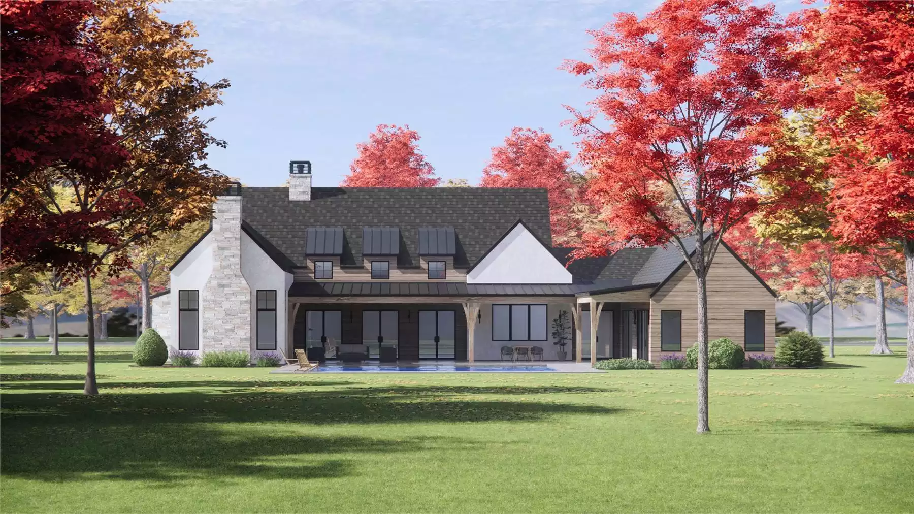 If you need an amazing luxury home on one story, give House Plan 10143 your consideration! Boasting 4,038 square feet in a sprawling layout, this design is made for making the most of acreage. There's a three-car garage with courtyard entry in front to set the tone. Inside, the front door enters into the great room, which has a cathedral vaulted ceiling, a fireplace, and dormer windows on both sides to light from above. The island kitchen and dining area are adjacent. Make sure not to miss the bench in the window, the walk-in pantry, or the bar room! Four bedrooms and additional spaces are split on opposite sides of the floor plan. The primary suite is a sight to behold with its vaulted bedroom with a fireplace, a five-piece bath, and a walk-in closet that connects directly to the utility room. In the front end of the same hallway, there's also a cozy office/media room with a fireplace. Across the house, you'll find one bedroom suite in the hallway between the garage and kitchen while two more suites, a vaulted game room, and the powder room are in the hall behind the kitchen. And if you'd like to spread out into the fresh air, just look at that huge back covered porch! A bonus room above the garage rounds out this fully loaded home.