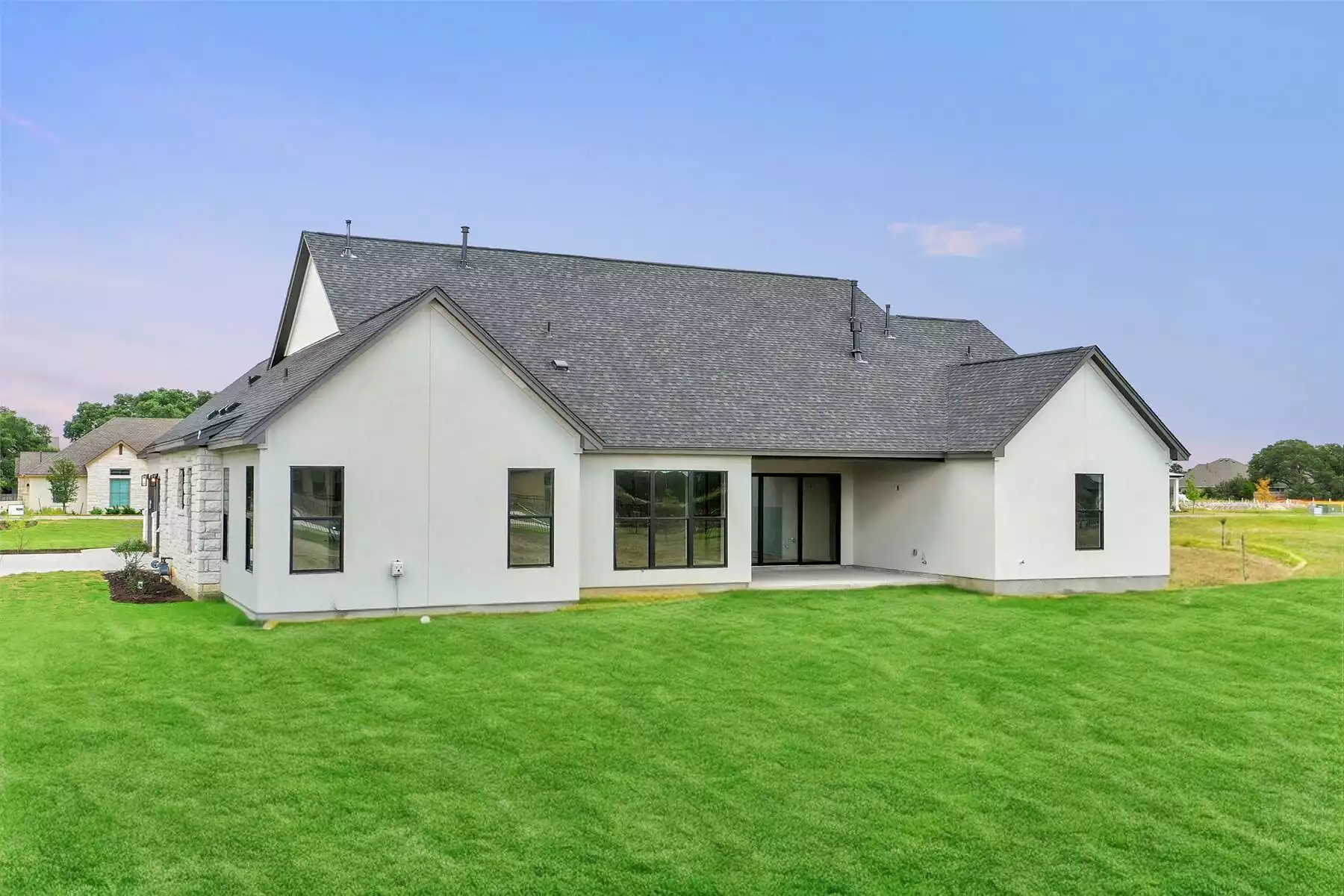 The Corrine is a stunning 3,055 sq. ft. transitional farmhouse designed with both charm and functionality in mind. With a spacious layout of 83' 6" in depth and 72' 10" in width, this home offers plenty of room for comfortable living. Its open-concept design highlights a central great room with 12-foot ceilings, seamlessly connected to the dining area, kitchen, and rear porch—perfect for hosting gatherings. Featuring four bedrooms and three and a half baths, this plan ensures privacy and convenience for families or guests. The primary suite includes a luxurious bath with a standalone tub and spacious walk-in closet, while the additional bedrooms are thoughtfully positioned for maximum comfort. Practical spaces like the office, large laundry room, and walk-in pantry make this home as functional as it is beautiful. The oversized three-car garage further enhances the plan, providing ample storage and convenience. A timeless blend of farmhouse style and modern livability, the Corrine is designed to feel like home.