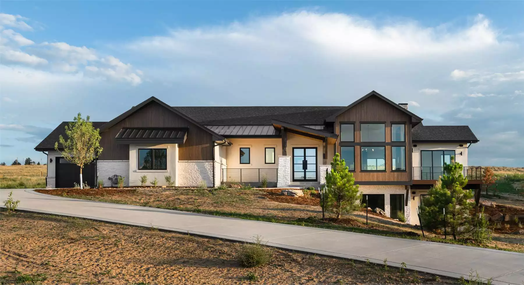 Are you looking for a home both rustic and contemporary with real wow-factor? House Plan 10779 should be on your list! This chic transitional mountain-style home offers 2,513 square feet with two bedrooms and two-and-a-half baths on one level, but if you're building on a slope, you can finish the basement to add more living and sleeping quarters! Step inside and the powder room is conveniently located off the foyer. On the other side, the living area with high ceilings, large windows, and a fireplace definitely makes an impression. The island kitchen and dining area are open to this space and also enjoy brightening windows. And make sure not to miss your very own corner office to the side! Both the living area and the office connect to a private deck area while a covered patio wraps around the kitchen and dining. On the other side of the floor plan, you'll find the bedrooms. The luxurious primary suite boasts a tray ceiling, a spacious five-piece bath, and a walk-in closet while the other bedroom has a three-piece ensuite and a walk-in closet. The mudroom that connects to the laundry room and garage is also in the hallway. The garage consists of two two-car sections that provide front- and side-entry. They're connected for easy access, and there's even workshop space to boot!