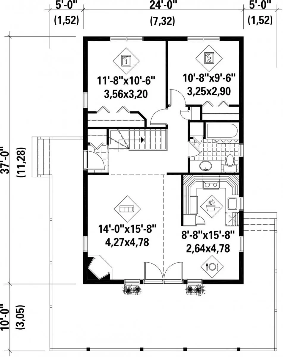 Suited for narrow lot