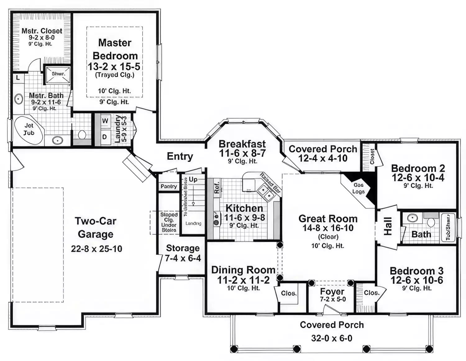 Mason’s Court is a charming 3-bedroom, 2-bath home that combines timeless curb appeal with a family-friendly design. The covered front porch leads into a welcoming foyer with direct views of the spacious great room, where a cozy fireplace and 10-foot ceilings create a warm, inviting atmosphere. The open kitchen is both stylish and functional, featuring a central island, walk-in pantry, and seamless flow into the breakfast nook and dining room—perfect for casual meals or entertaining. The private master suite is a true retreat, highlighted by a tray ceiling, spa-inspired bath with whirlpool tub, separate shower, and a generous walk-in closet. Two additional bedrooms with a shared full bath provide comfort for family or guests. Outdoor living is extended with a covered rear porch, while a two-car garage, dedicated laundry, and an upstairs bonus room with optional bath add convenience and flexibility.