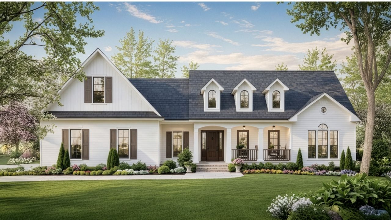 Fernville Isle is a charming farmhouse-style home that blends classic curb appeal with a bright, family-focused layout. A welcoming covered front porch framed by dormer windows introduces the warm and inviting interior. Inside, the spacious great room features a 12-foot ceiling and a cozy gas fireplace, opening seamlessly to the kitchen and breakfast area—perfect for both entertaining and everyday living. The gourmet kitchen includes a large island, walk-in pantry, and direct access to the rear covered porch for effortless outdoor dining. The private master suite provides a luxurious retreat with dual closets and a spa-inspired bath complete with dual vanities, a jetted tub, and a walk-in shower. Two additional bedrooms share a full bath on the opposite side of the home, ensuring comfort and privacy. A formal dining room, home office, and dedicated laundry room add convenience, while the upstairs bonus room offers flexibility for a guest suite, home gym, or playroom. With its thoughtful design, open flow, and timeless farmhouse charm, Fernville Isle offers the perfect balance of elegance and livability.
