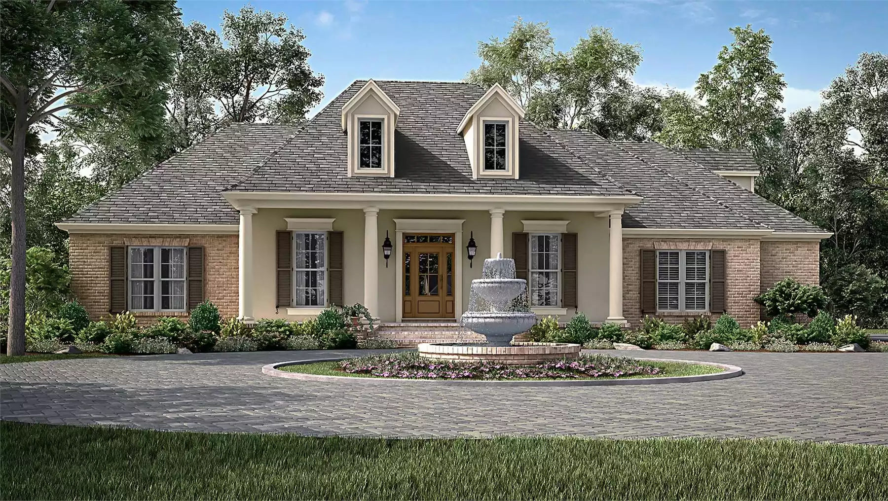 If you need a home with traditional Southern or Acadian style, House Plan 11420 could be the one for you. This charming 2,396-square-foot home offers 4 spacious split bedrooms and a welcoming traditional style designed for family living. The open floor plan brings together the great room and the kitchen, creating a warm space for entertaining and daily life, while the dining room off the foyer offers a formal feel. The primary suite is thoughtfully designed with a five-piece bath and separate his-and-her closets for added convenience and luxury. The other bedrooms share a hall bath on the opposite side of the house. A cozy mudroom with lockers makes coming home easy, and the nearby laundry keeps household chores simple. The bonus room above the garage adds flexible space for a playroom, media room, or home office. With a timeless brick and stucco exterior, this home blends style and functionality perfectly. Families will love the way this plan balances elegance with comfort in every detail.