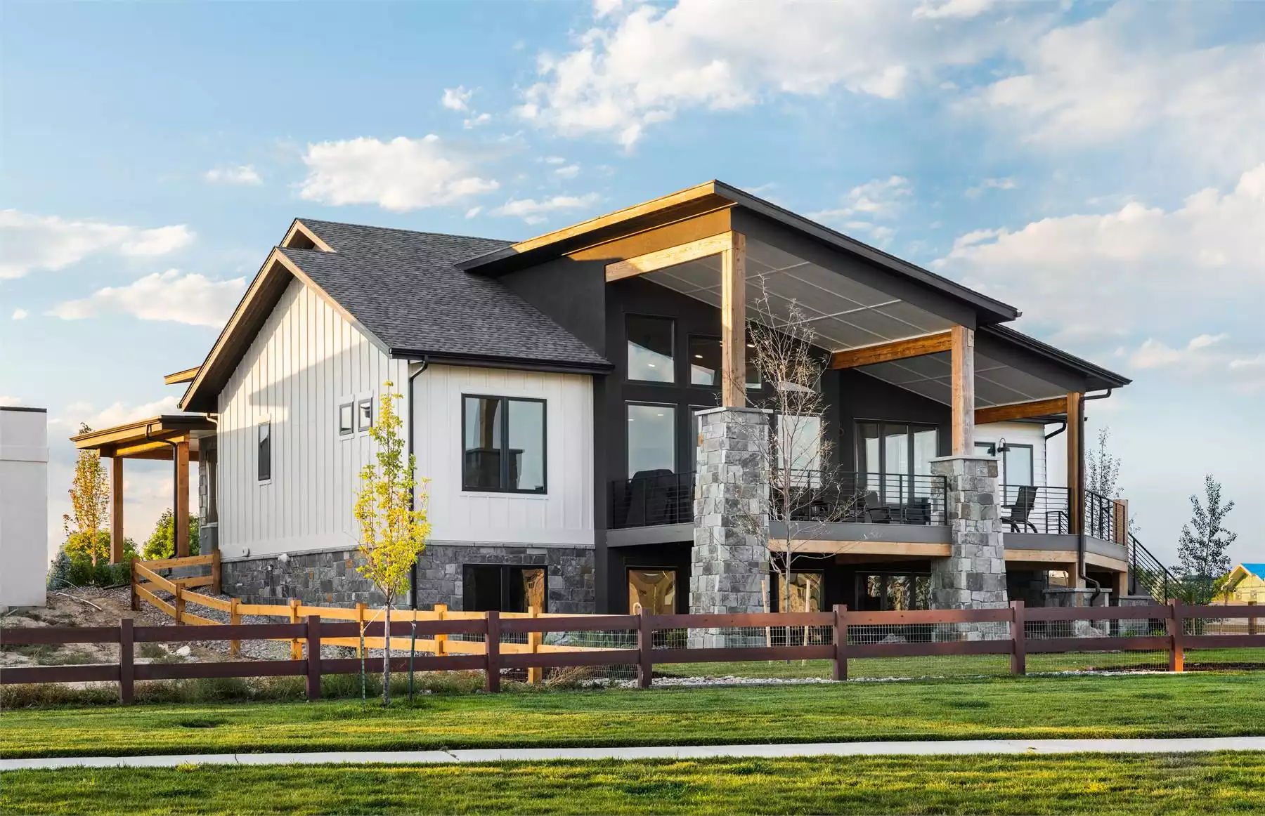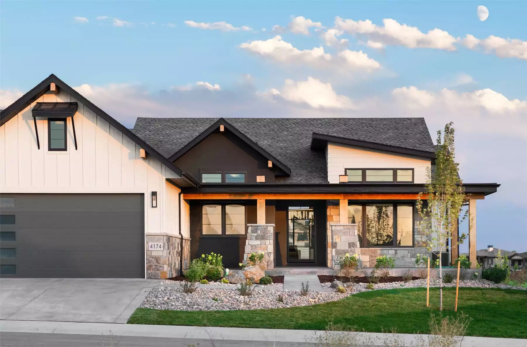 Bellaview offers a fresh take on mountain living with 2,567 square feet of contemporary style and functionality. The open-concept layout connects the vaulted great room, dining area, and kitchen, creating a spacious environment ideal for gathering and entertaining. A gourmet kitchen with large island and walk-in pantry makes everyday living a breeze. The private primary suite includes a generous bathroom and walk-in closet, while an additional bedroom and office (or additional bedroom) share a full bath on the opposite side. A 3-car garage offers generous space for vehicles, gear, or storage. Outdoor living is elevated with covered front and rear porches to take in mountain views. For added flexibility, an optional finished basement offers space for more bedrooms, a rec room, or a home gym. Bellaview blends sleek style with rustic inspiration in one unforgettable design.