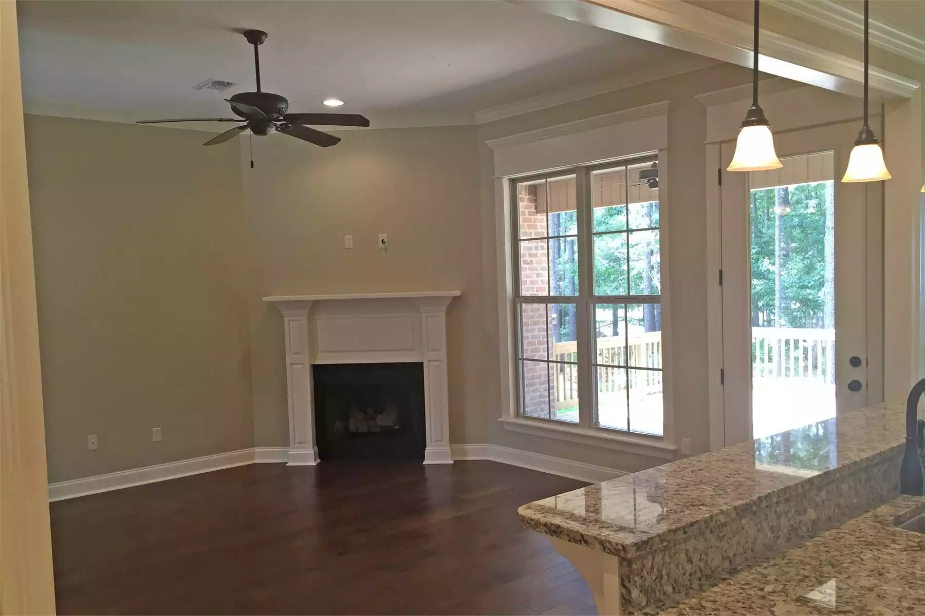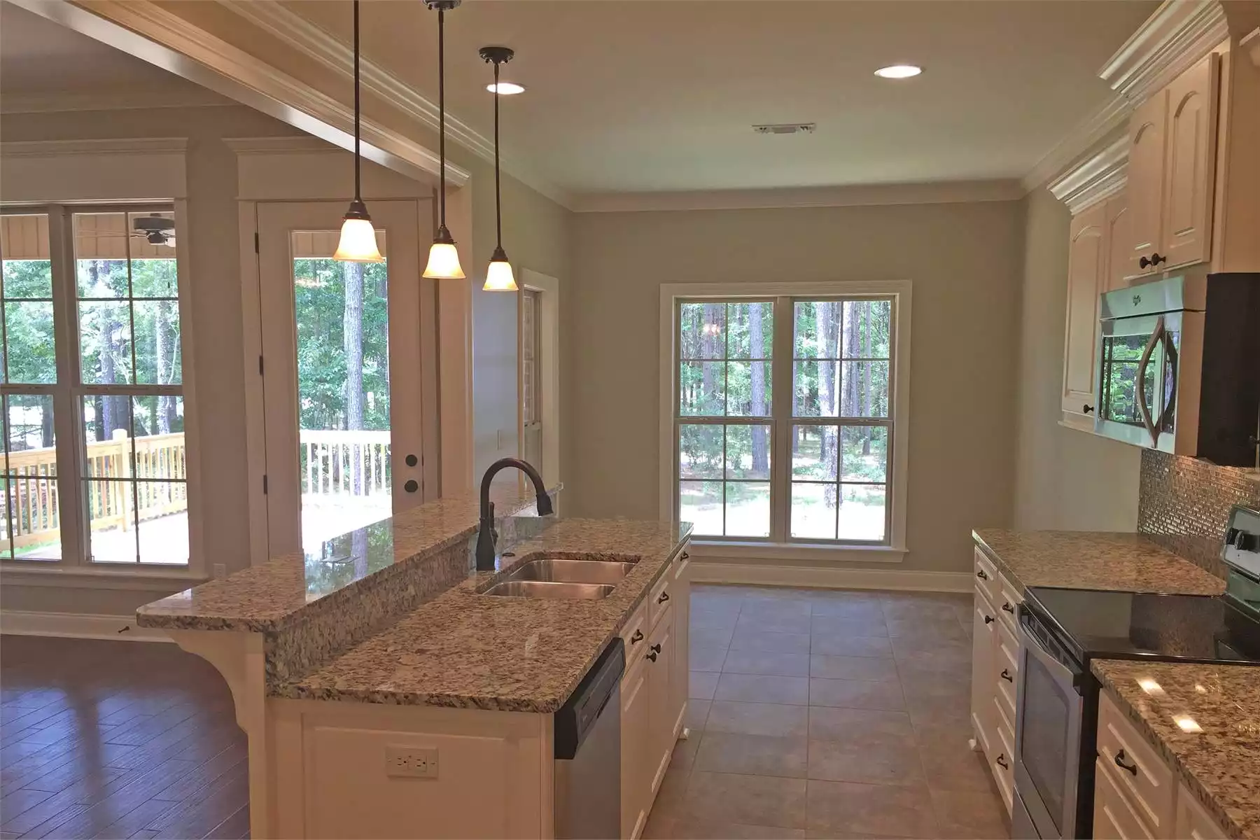 This thoughtfully designed home offers 1,826 square feet of heated living space with three bedrooms and two full baths. The layout includes an office, providing a quiet space for work or study. An open great room flows into the kitchen and dining area, making it ideal for entertaining and everyday living. The kitchen features a walk-in pantry and a functional island, while a nearby utility area adds convenience. The main bedroom suite includes a walk-in closet, dual vanities, and a spacious bath for relaxation. Secondary bedrooms are comfortably sized and share a well-appointed bath. With brick exterior, front porch charm, and practical interior features, this plan balances style and function.
