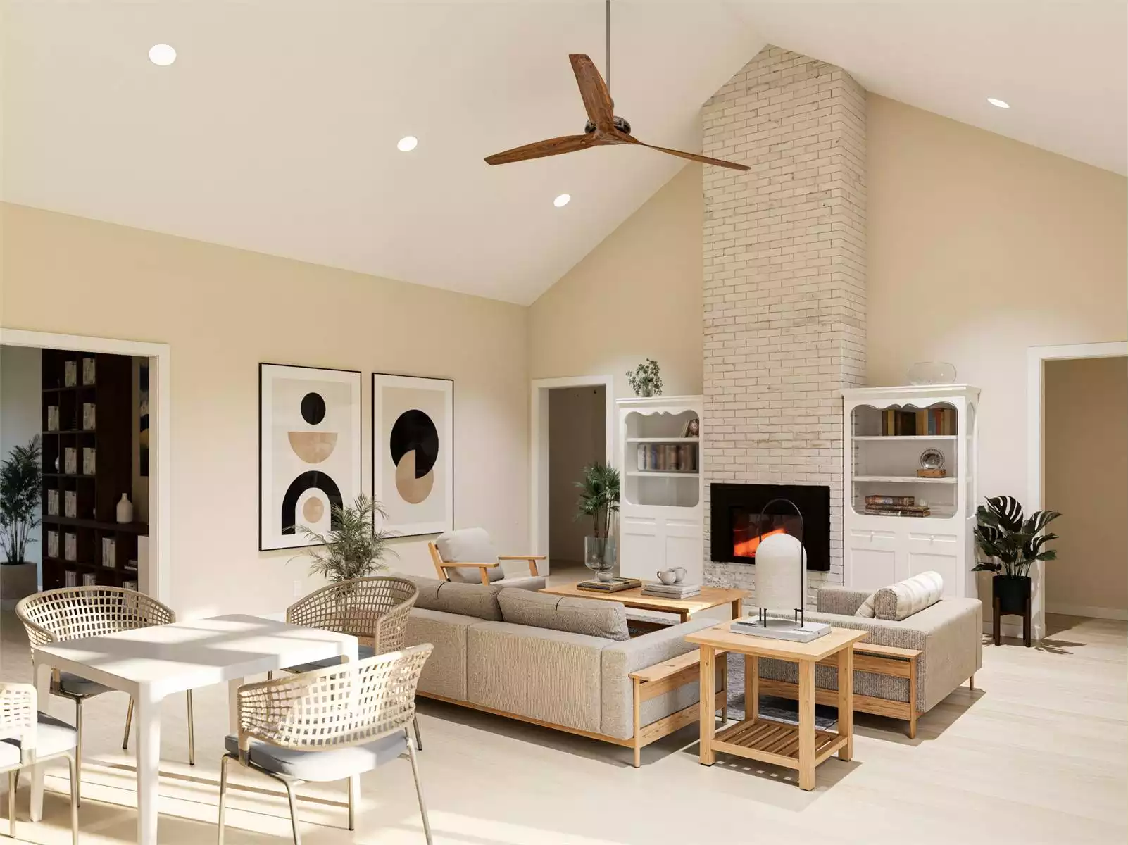 This 2385 square feet, 1 story home plan offers 3 bedrooms and 3.5 baths in a thoughtfully designed open floor plan that blends comfort and style. The vaulted great room serves as the heart of the home, highlighted by a fireplace and seamless flow into the dining area and kitchen. A U-shaped kitchen features a large island, peninsula with eating bar, and a convenient butlers pantry for added storage and prep space. The primary bedroom is located on the main floor and includes a walk-in closet, double vanity sink, and separate tub and shower for a relaxing retreat. Two additional bedrooms provide family-friendly accommodations with privacy and comfort. A mud room, home office, and first-floor laundry enhance daily functionality. Covered front and rear porches, along with an inviting outdoor living space, extend entertaining outdoors. The attached side-entry 2 car garage maintains curb appeal while offering practical access.