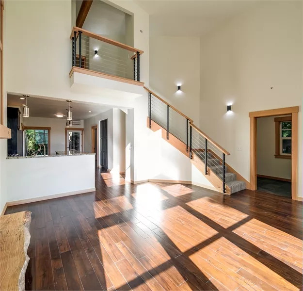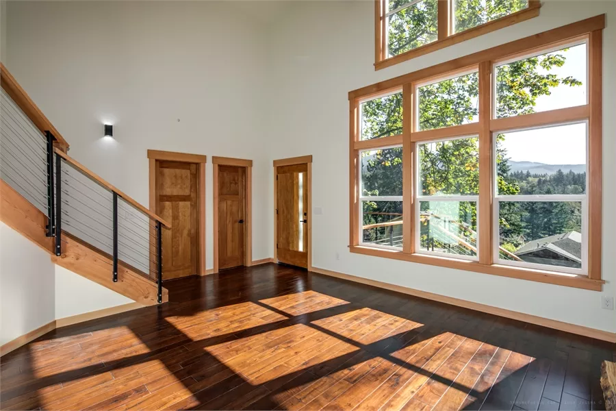 Sleek lines and sharp contrasts come together to create this marvelous contemporary style house plan masterpiece. The thoughtfully designed elements span this home both inside and out, resulting in a truly one-of-a-kind home. The 9’ vaulted ceilings throughout the common areas creates a larger than life feel about this home. With 2,310 square feet, this is the perfect space for entertaining or just relaxing and enjoying things such as the large cathedral windows in the great room. This 2-bedroom 2.5 bath abode is perfect for those whose style is as unique as the house they live in.