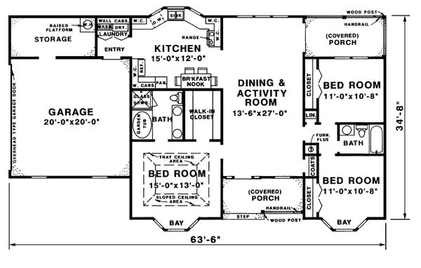 Entrance to the home is direct to the combined dining and activity room, which extends the full depth of the house. Acting as a central core, this area will lead you to any one of the other rooms of the home. Therefore, eliminating virtually all wasteful hall space and incorporating all of the heated area into livable space.