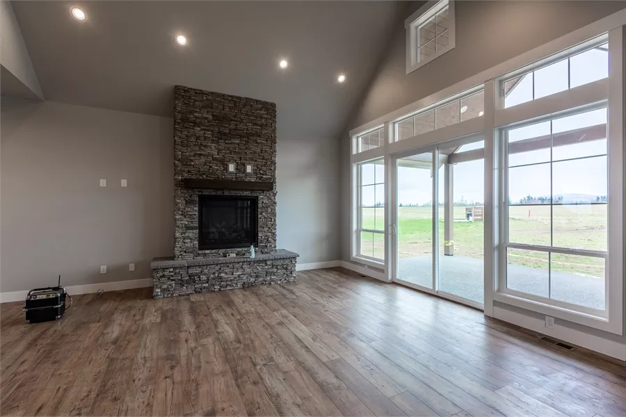 There's no shortage of curb appeal for this beautiful 3-bedroom Craftsman country home plan with bonus room above the garage!  From the front porch, you’ll enter the home and see the open floor plan, which highlights the dining room, great room and kitchen.  All of this space has a wall of windows and doors, which brings the outside in!  The large, open living area with 9’ ceilings, is also highlighted by a gorgeous fireplace.  The spacious kitchen has views to the nook and hearth areas and features an island, as well as a large walk-in pantry.  The master suite is complete with separate tub and shower, dual vanity, and large walk-in closet.  It also has its own private entrance onto the large covered patio that graces the entire length of the back of the home.  You’ll also find two additional bedrooms as part of this house plan, as well as a combined laundry/mud room, conveniently located next to the entry from the 3-car garage on the main floor.  As an extra feature, an upstairs bonus space is provided with more than enough room to be used as a multipurpose space as your family grows!