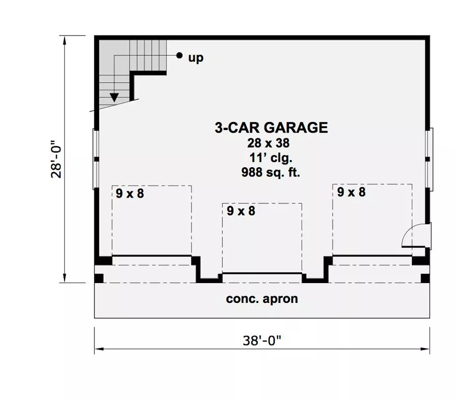 3-Car Cottage Garage House, Plan 1994 With Living Space