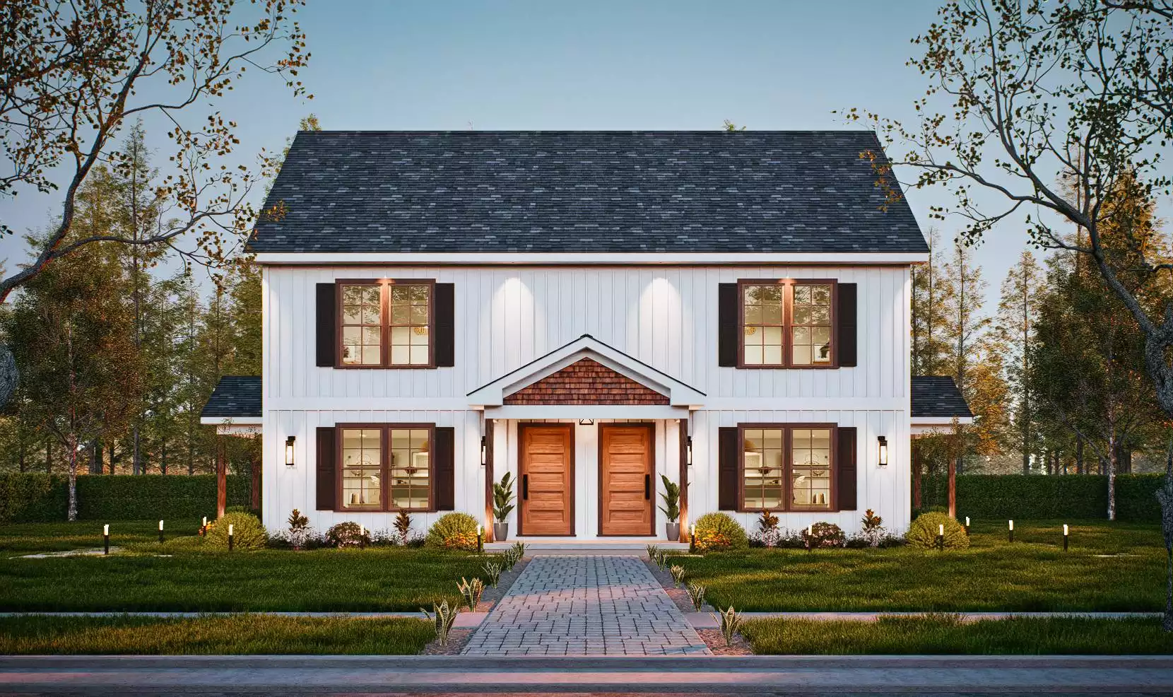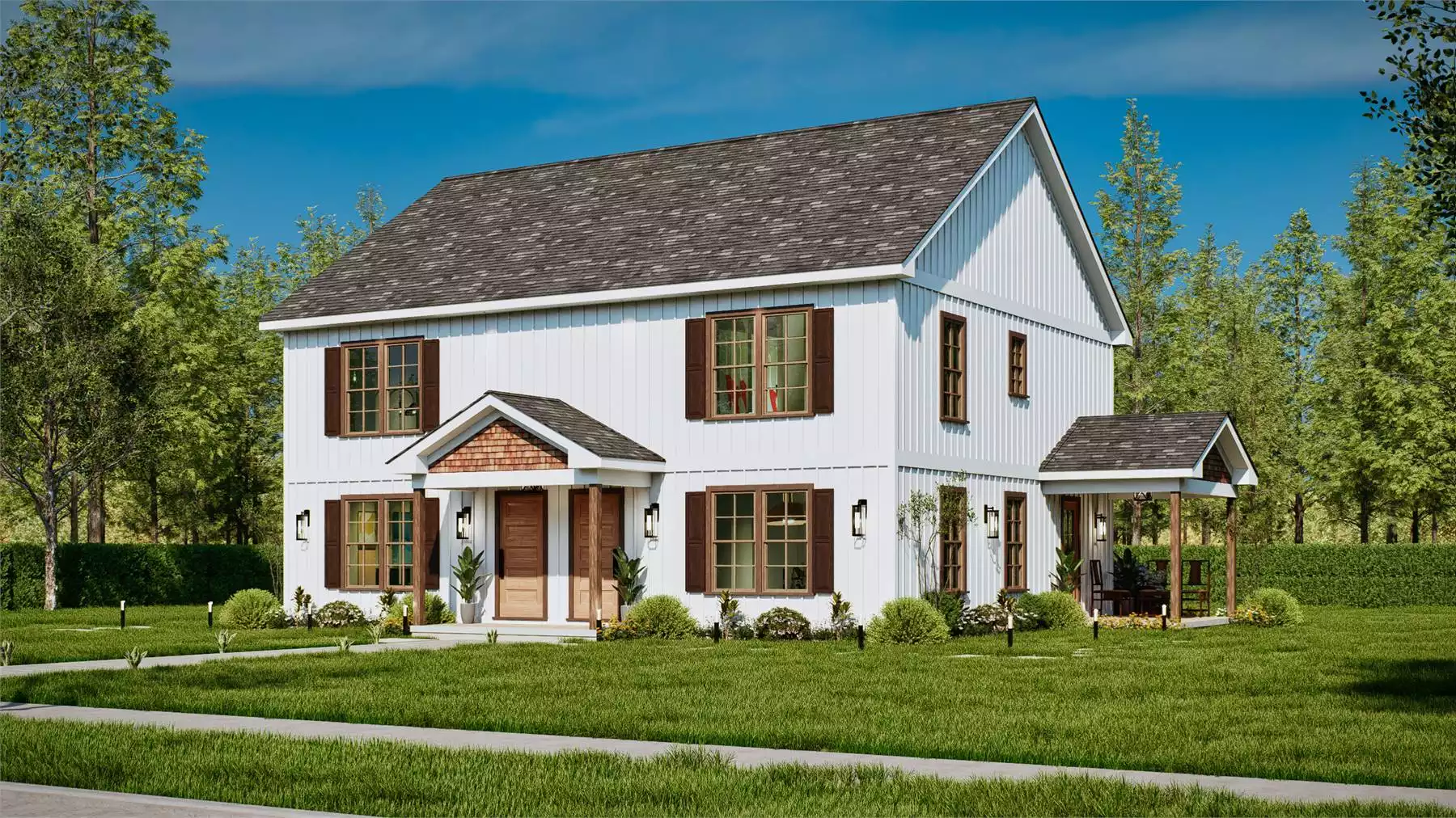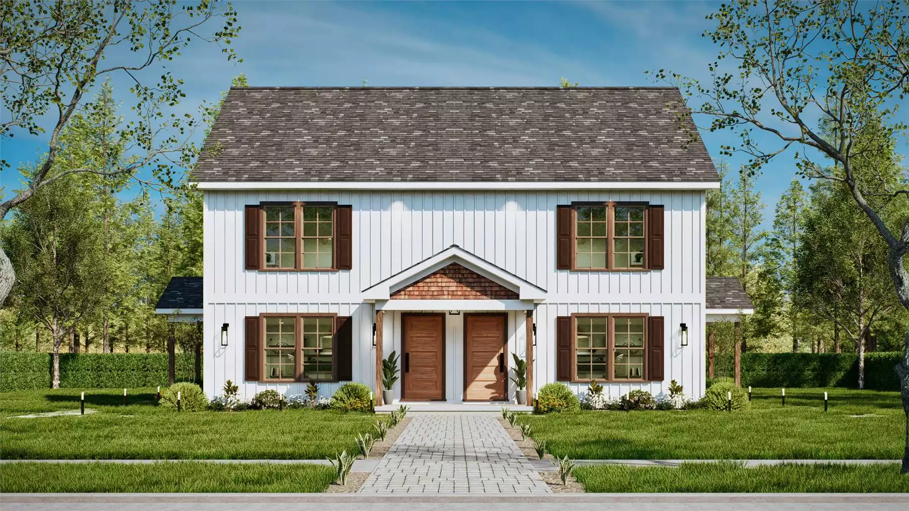 Whitestone is a charming farmhouse-style duplex designed for comfort and functionality. Each unit includes 3 bedrooms, each with its own full bathroom, offering ideal privacy for families or guests. The layout features one bedroom on the main floor and two upstairs, along with a bright, open living area and kitchen complete with an island and bar seating. Covered porches on both the front and side of each unit extend the living space outdoors. Blending simplicity with modern farmhouse style, Whitestone is a perfect fit for multi-family living or rental opportunities.