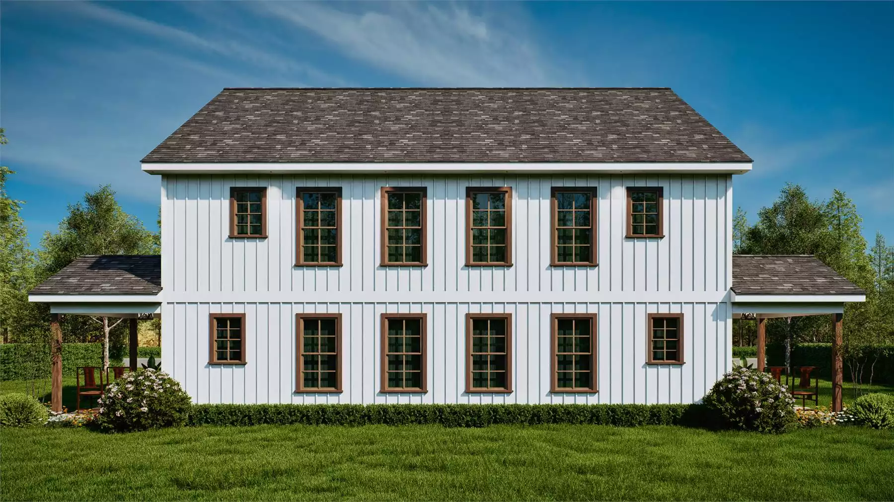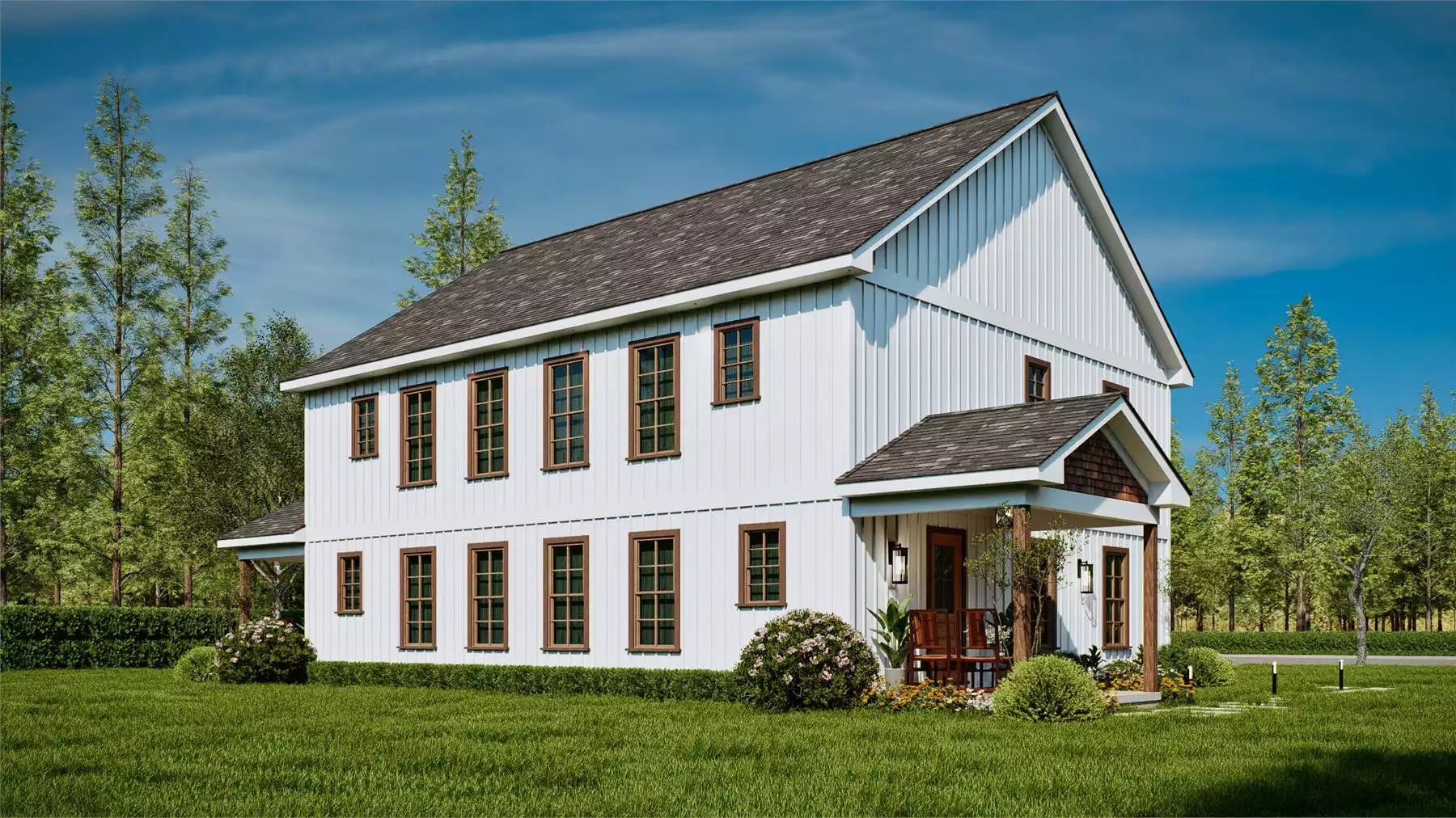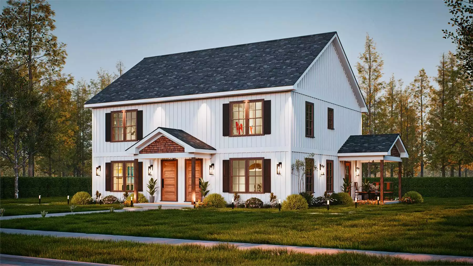 Whitestone is a charming farmhouse-style duplex designed for comfort and functionality. Each unit includes 3 bedrooms, each with its own full bathroom, offering ideal privacy for families or guests. The layout features one bedroom on the main floor and two upstairs, along with a bright, open living area and kitchen complete with an island and bar seating. Covered porches on both the front and side of each unit extend the living space outdoors. Blending simplicity with modern farmhouse style, Whitestone is a perfect fit for multi-family living or rental opportunities.