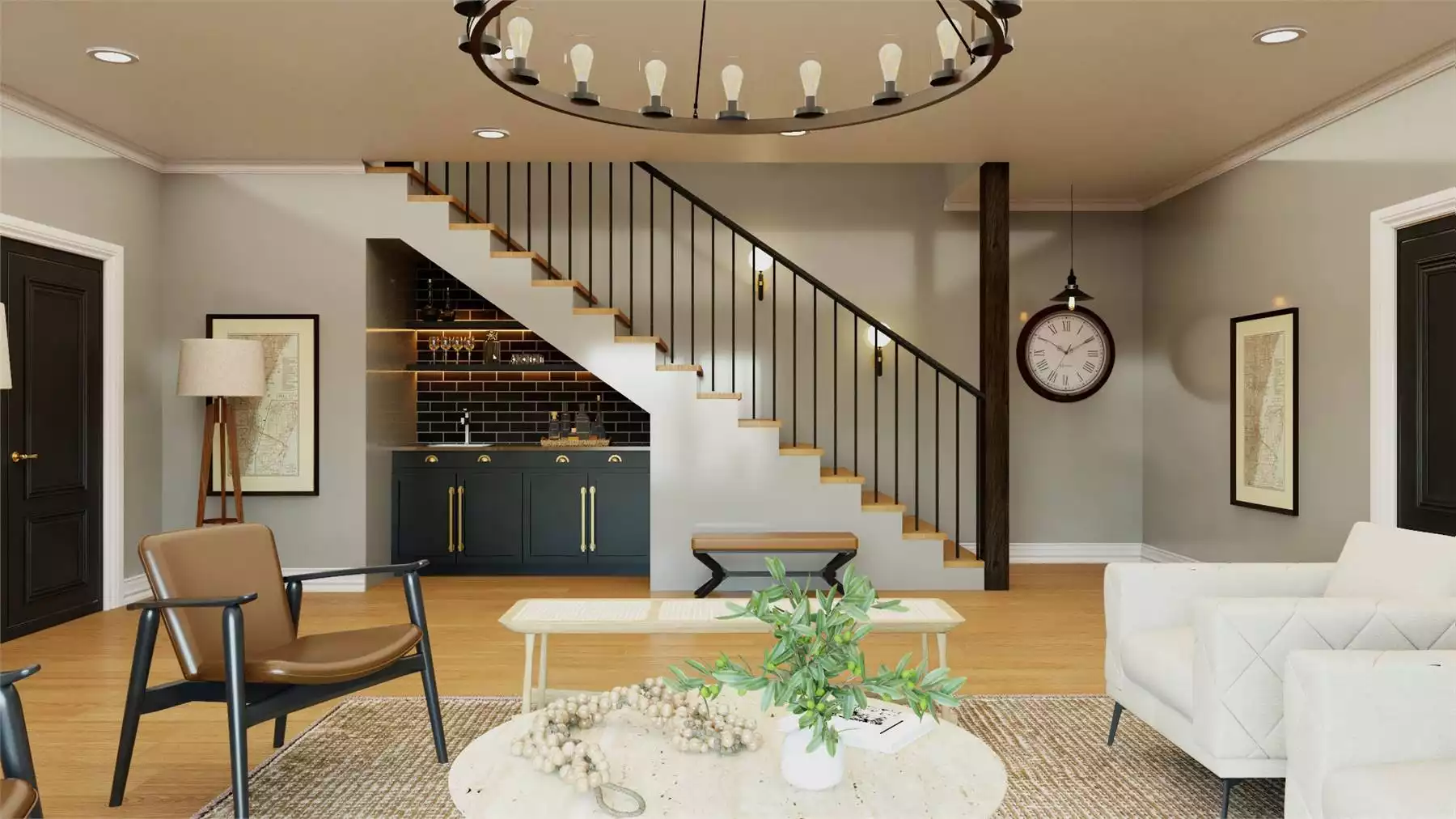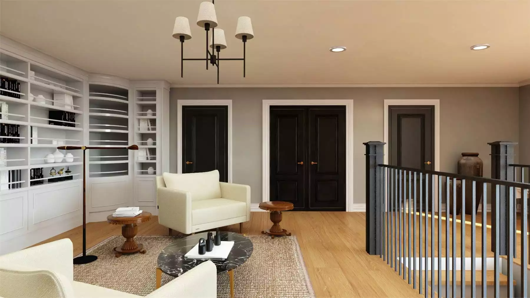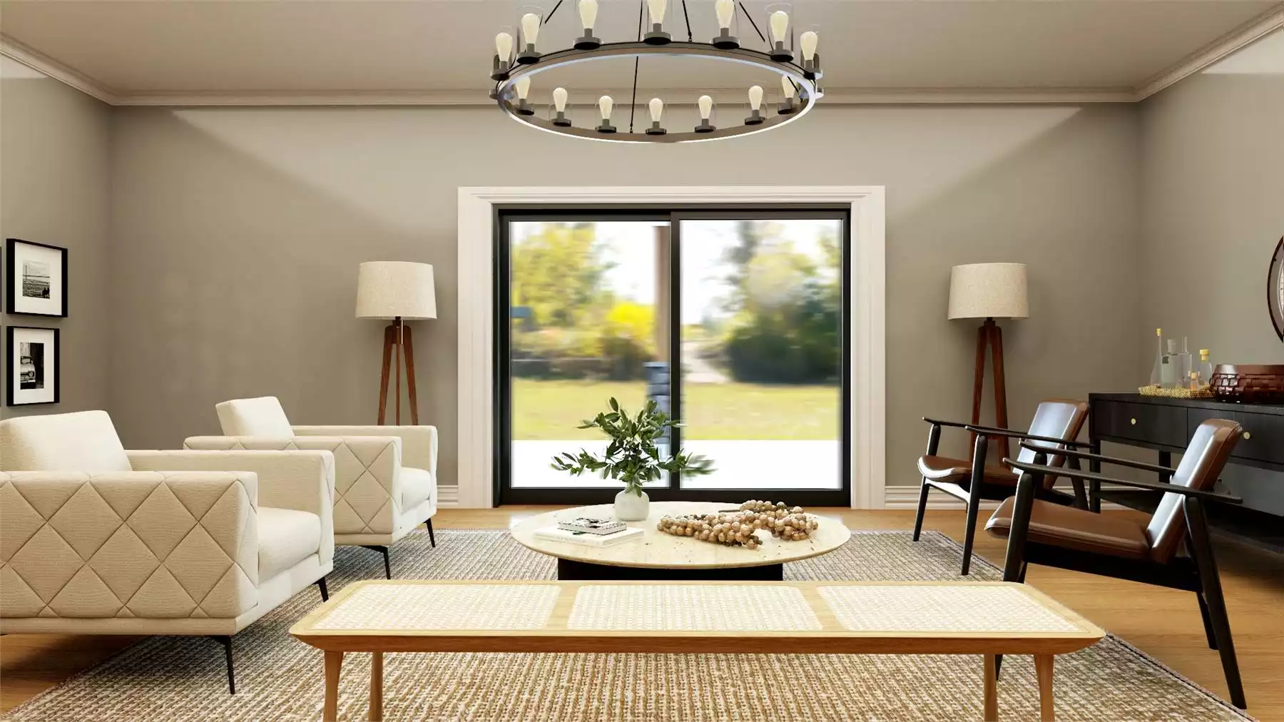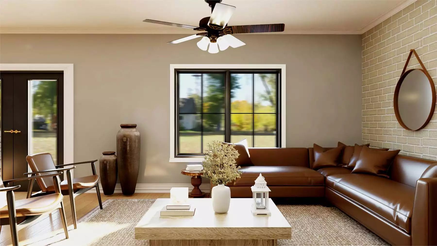 Springfield Ridge is a striking barndominium-style design that blends residential comfort with large-scale entertaining potential. The centerpiece of the plan is a massive event center offering over 5,000 square feet of open space, complete with a stage, multiple covered porches, and excellent flow for gatherings, celebrations, or community events. Adjacent to the event space, a private residential wing includes a comfortable lounge, kitchenette, storage room, and a welcoming lobby area with direct access to outdoor living spaces.