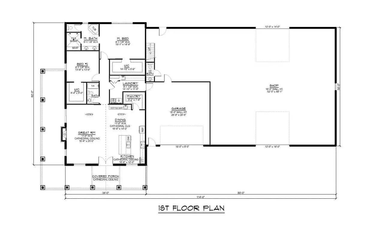 Haliburton | 2 Bedroom Barndominium Style House, Plan 11441