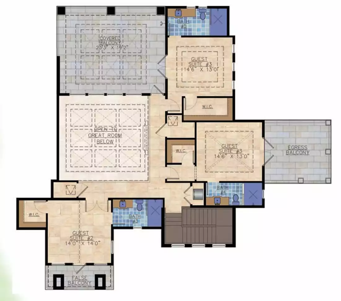 Building somewhere with great weather? Take advantage with House Plan 9433, an amazing beach house with plenty of outdoor space! This 4,335-square-foot design spreads across two levels and has so much to appreciate. The foyer is flanked by the office and dining room, and then you enter into the two-story great room that sits beside a unique double island kitchen. There's also a family room and an absolutely luxurious primary suite. The back porch expands living potential and has an outdoor kitchen, too. Upstairs, you'll find three more bedroom suites, and all of them attach to balconies. Just imagine enjoying the fresh air in style in your daily life!