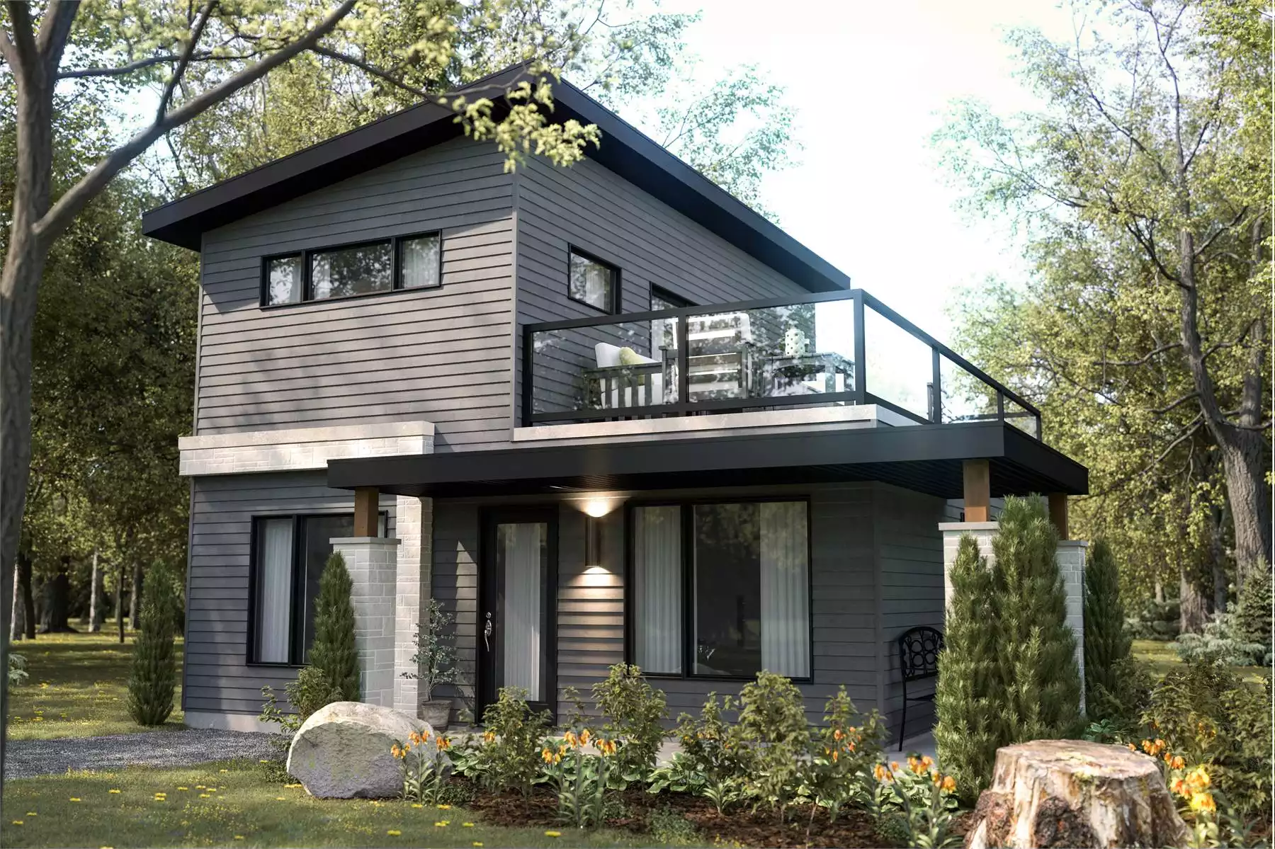 If you're on the hunt for a getaway, House Plan 10079 could be the one! This 1,200-square-foot contemporary home is absolutely perfect for an individual or couple who likes to host, or perhaps a small family. Step inside and you'll find a bedroom and bathroom on one side of the entry while the great room spreads from front to back on the other side, with living space in by the entry and the island kitchen with a walk-in pantry at the far end. There's an office in the other rear corner, but you could make it a bedroom, if you'd prefer. Now, head upstairs to your own personal retreat! The second level is entirely comprised of the primary suite, with a large bedroom, a four-piece bath, a walk-in closet with stacked laundry, and an amazing deck poised to take in views from three sides. What an amazing arrangement for your dream location!