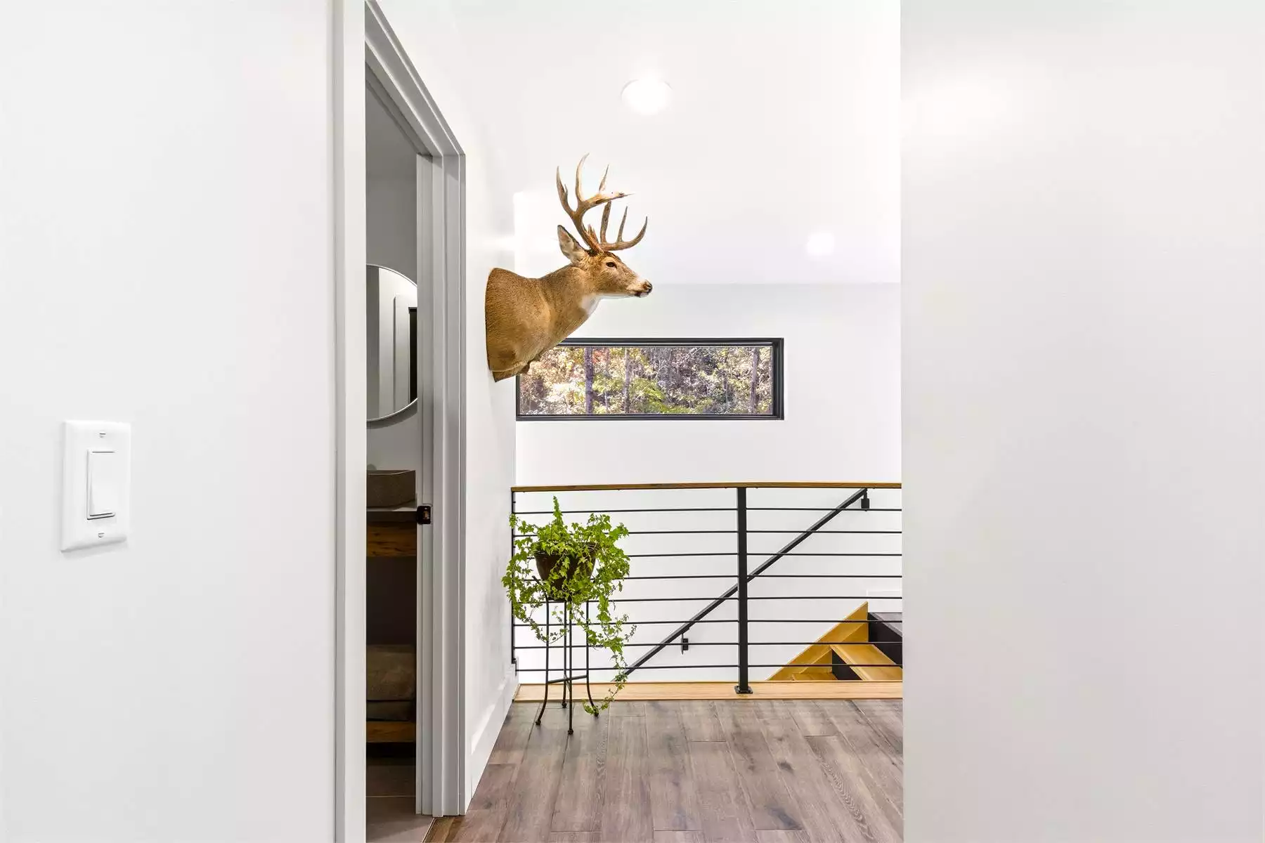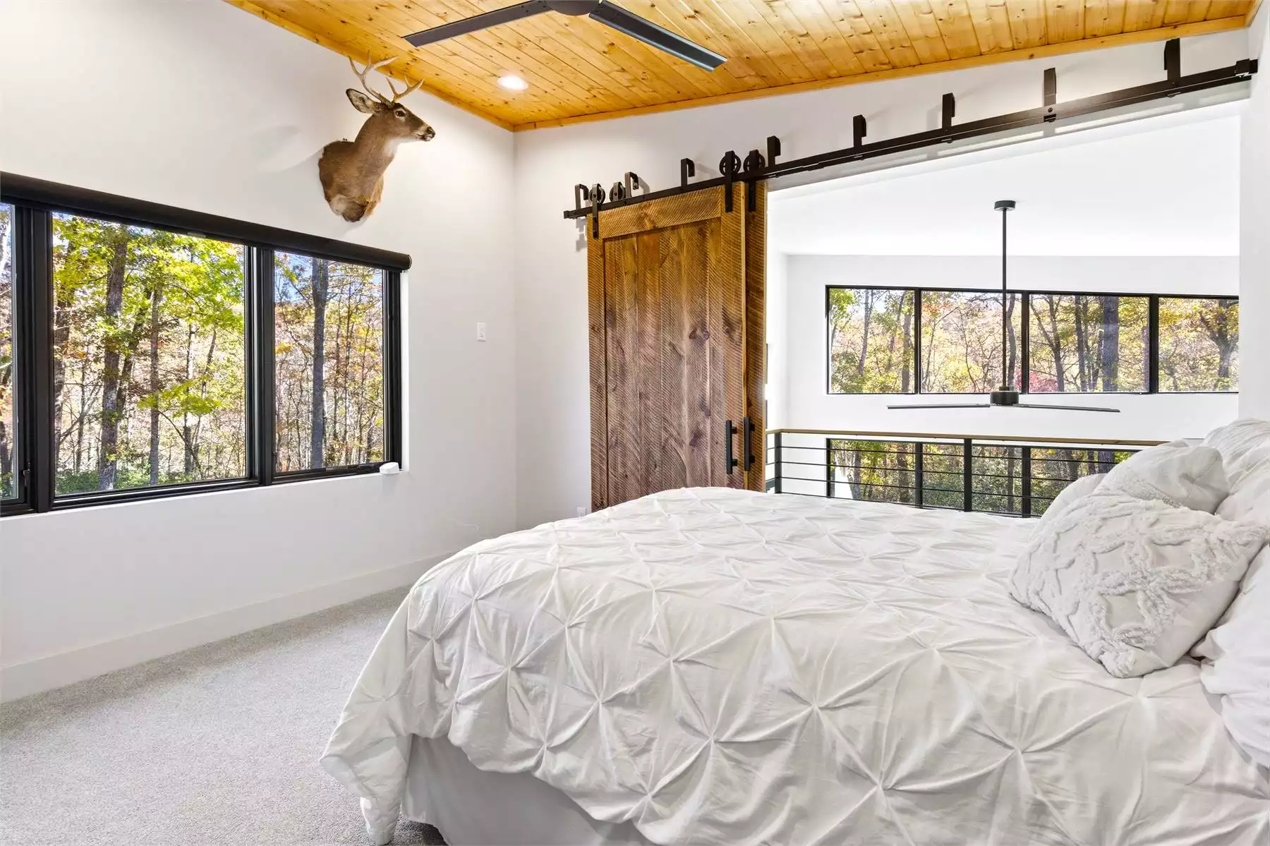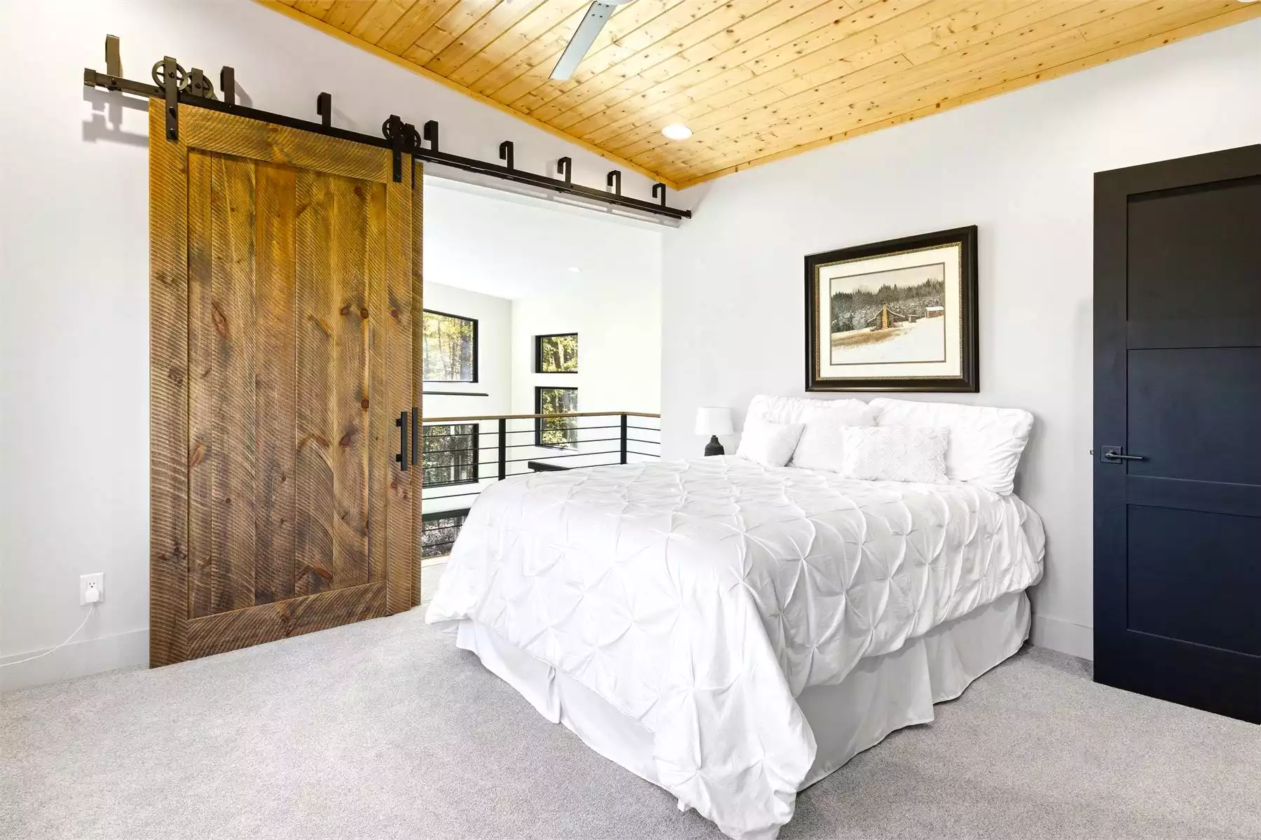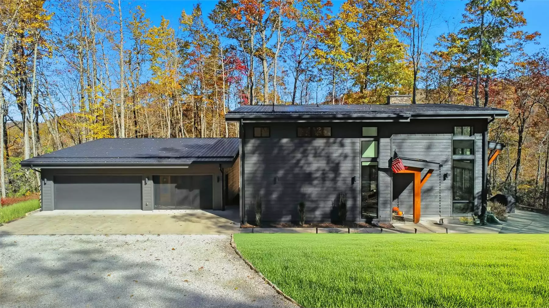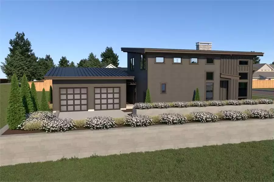 House Plan 11879 is a unique contemporary home perfectly suited for year-round or vacation living with its view-capturing design. It offers 2,102 square feet with three bedrooms and two-and-a-half baths split on two levels, so it also checks the boxes for most families. Step inside and the great room is front and center with a two-story vaulted living space with floor-to-ceiling windows. The island kitchen and dining area overlook the living area to share in the views, too! The primary suite is placed on one side and boasts indoor/outdoor connection with patio doors and transom windows in the front bedroom as well as large windows in the rear five-piece bath. The powder room and laundry/mudroom that connects to the side-entry rear garage round out this level. Head up the stairs by the front entry and you'll come to a landing hallway with a bathroom and the final two bedrooms. The rear-facing bedroom looks out over the garage while the front bedroom has side windows and opens up to look over the great room when you slide the barn door away!